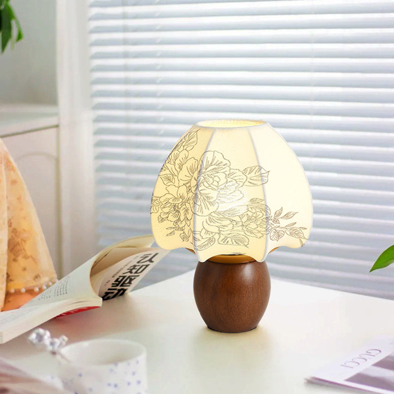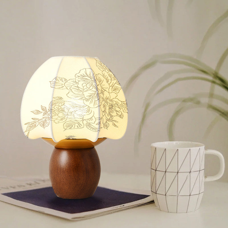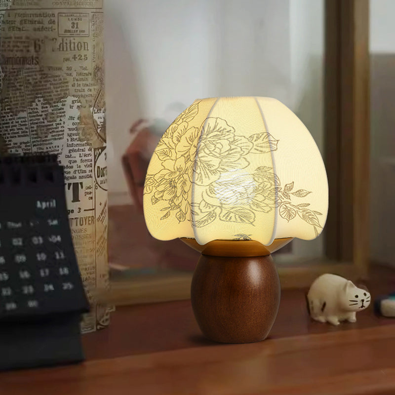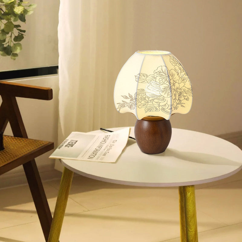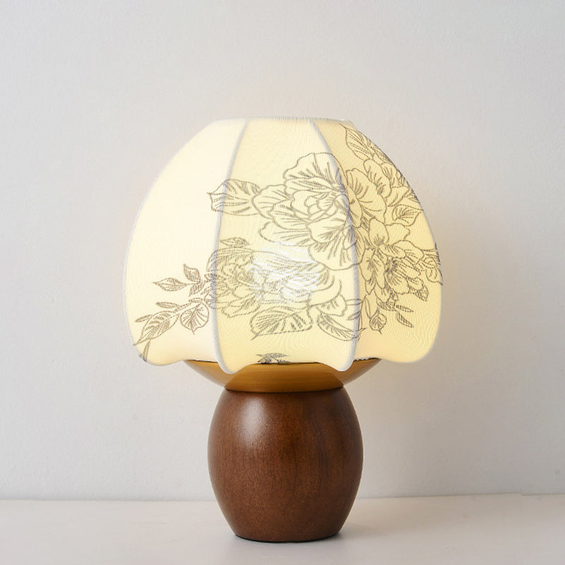Traditional French Round Wood Alloy Fabric 1-Light Table Lamp For Bedroom