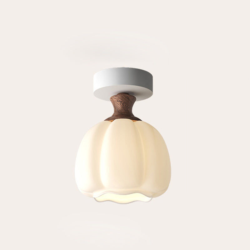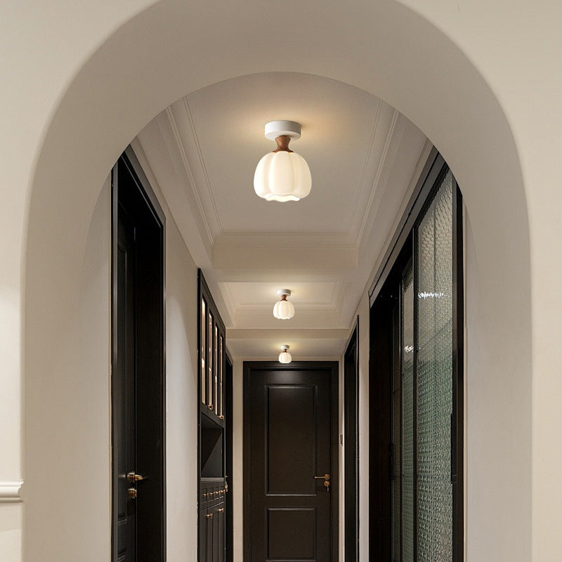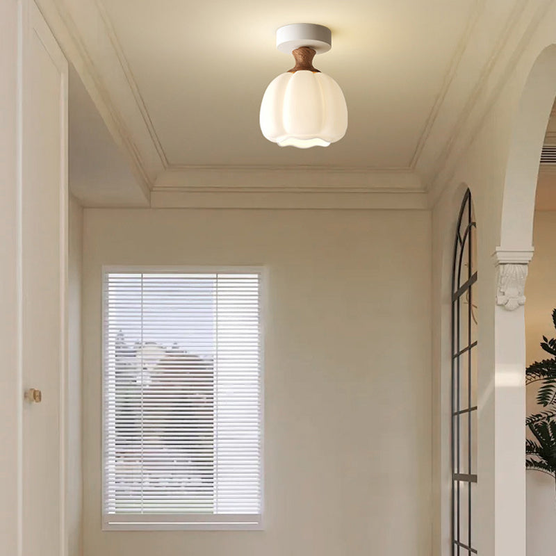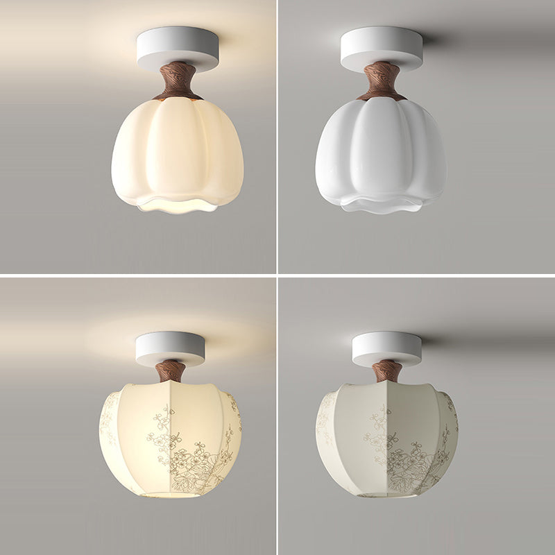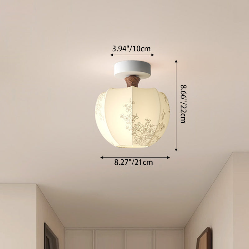 Traditional French Semicircle Pumpkin Glass Fabric Iron 1 - Light Semi-Flush Mount Ceiling Light For Hallways