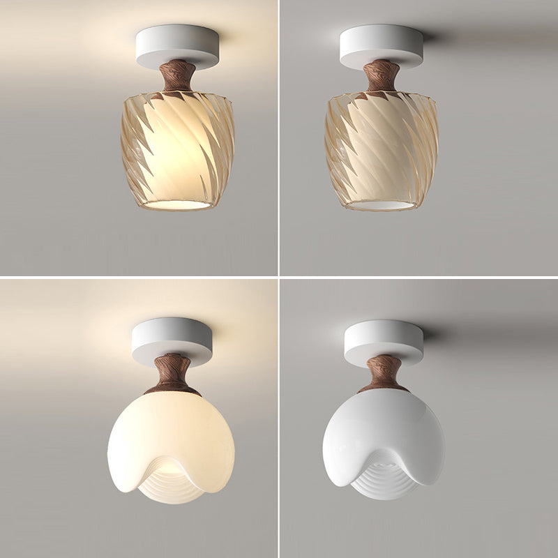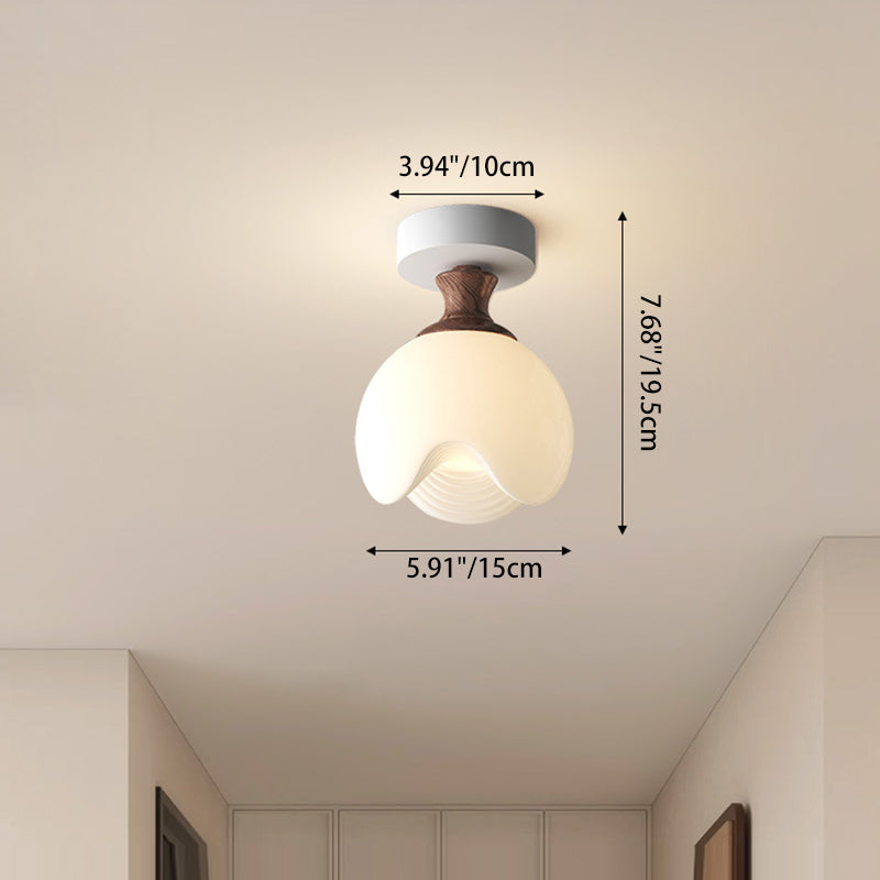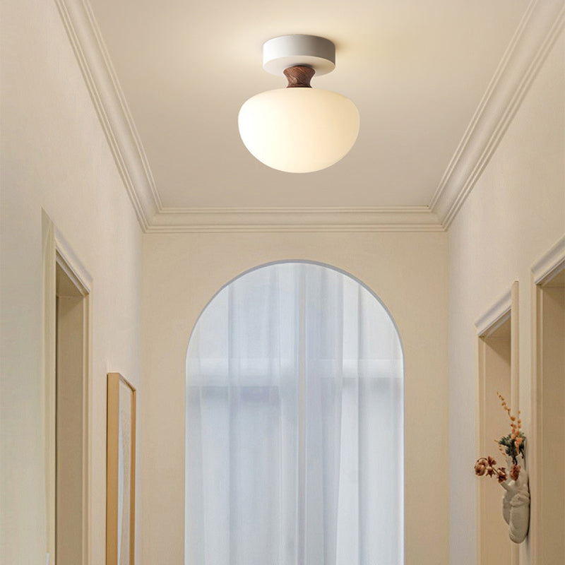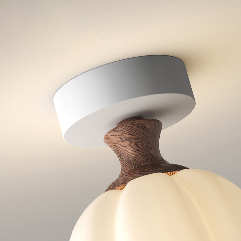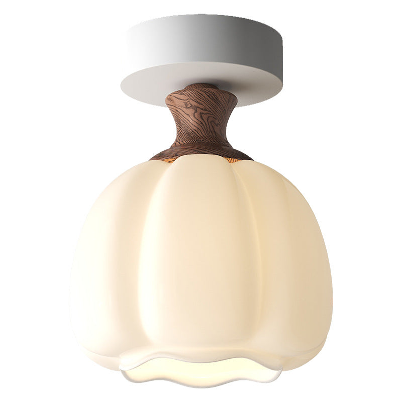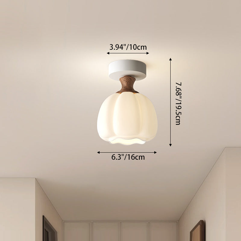 Traditional French Semicircle Pumpkin Glass Fabric Iron 1 - Light Semi-Flush Mount Ceiling Light For Hallways