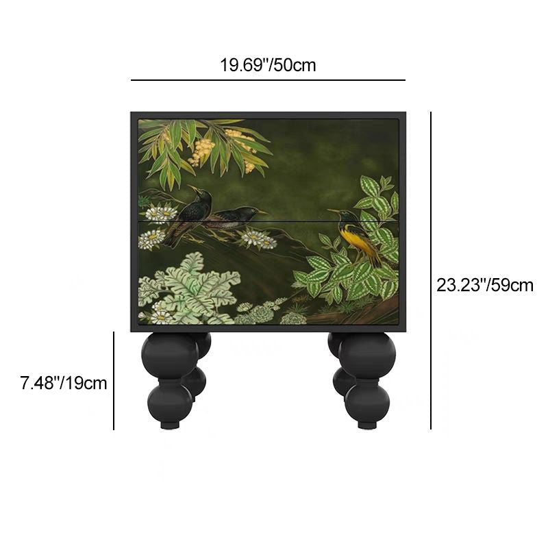 This French-inspired solid wood nightstand features a rounded square silhouette with distinctive ball-shaped feet, offering a refined vintage touch. Designed with two spacious drawers and crafted with formaldehyde-free materials, it comes in black, brown, or white—perfect for elegant and functional bedroom storage.