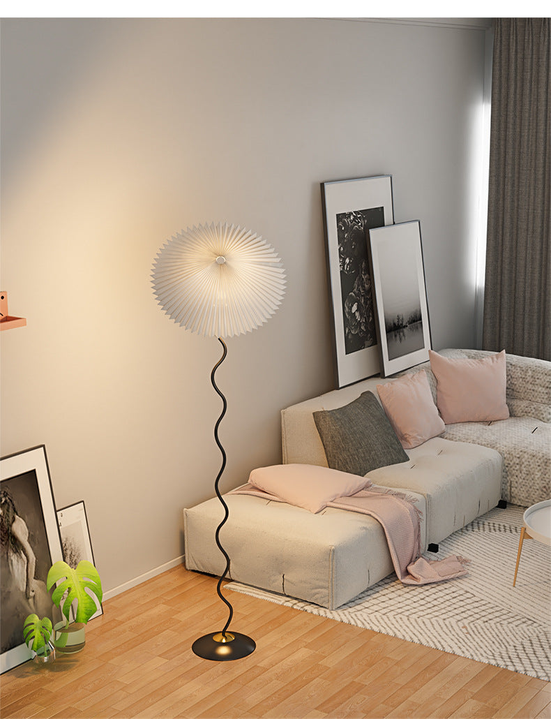 Traditional Japanese Fabric Iron Umbrella 1-Light Standing Floor Lamp For Living Room