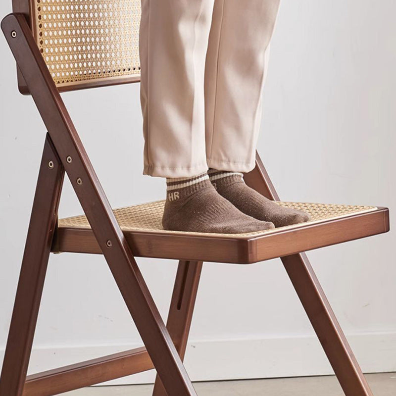 This foldable dining chair blends traditional Japanese style with modern convenience, featuring a hexagonal woven rattan seat and backrest, sturdy double-sided support, and a warm bamboo or walnut finish. Ideal for compact dining spaces, it's both stylish and easy to store.