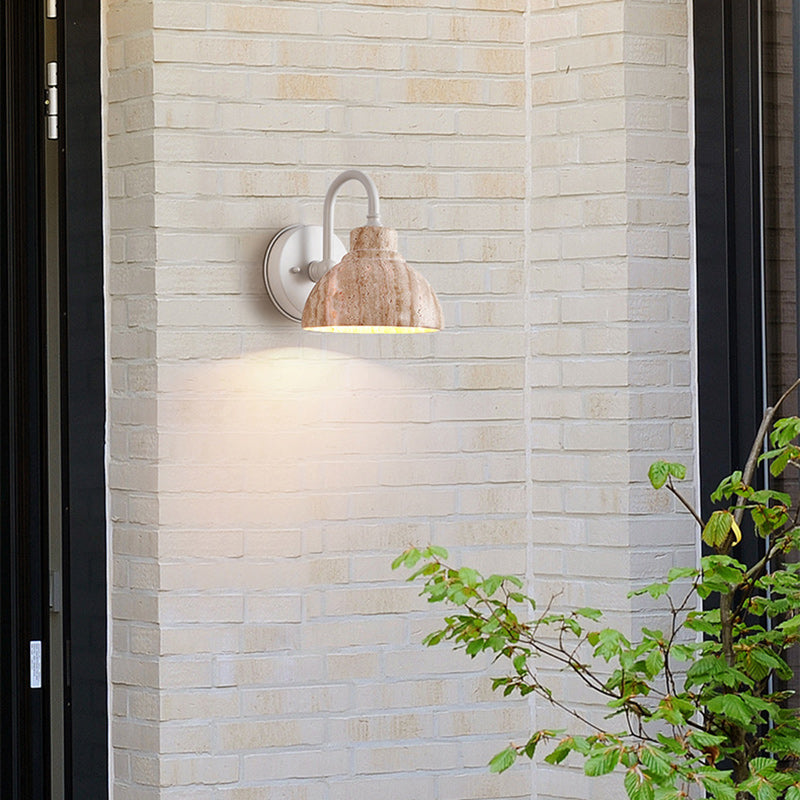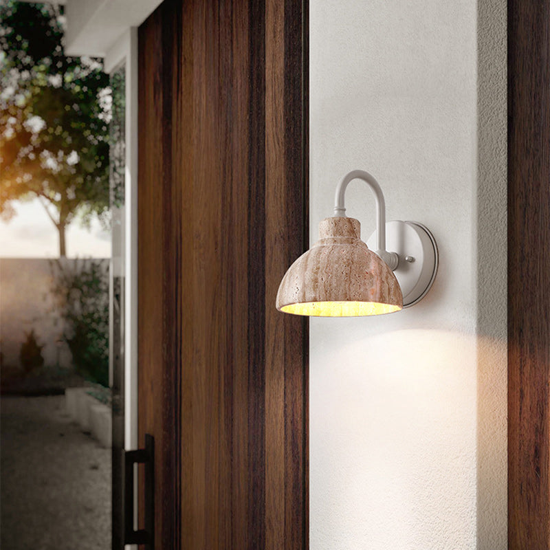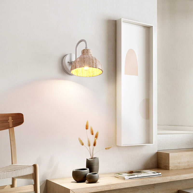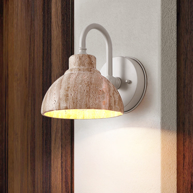 Traditional Japanese Beige Travertine Semicircle Shade Hardware 1-Light Wall Sconce Lamp For Living Room