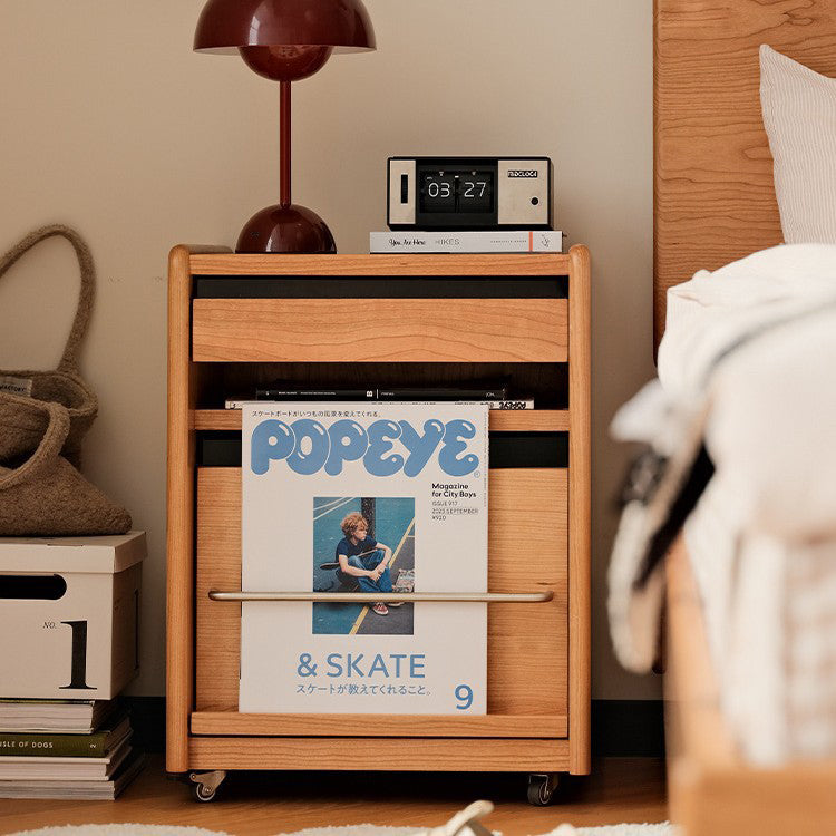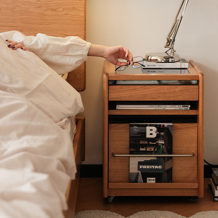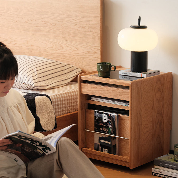 Crafted from rich cherry wood and durable stainless steel, this traditional Japanese nightstand features a sleek rectangular form with 3 functional tiers, smooth-rolling universal wheels, and a thoughtfully designed storage slot. Its compact, movable structure makes it ideal for minimalist or small bedroom spaces.