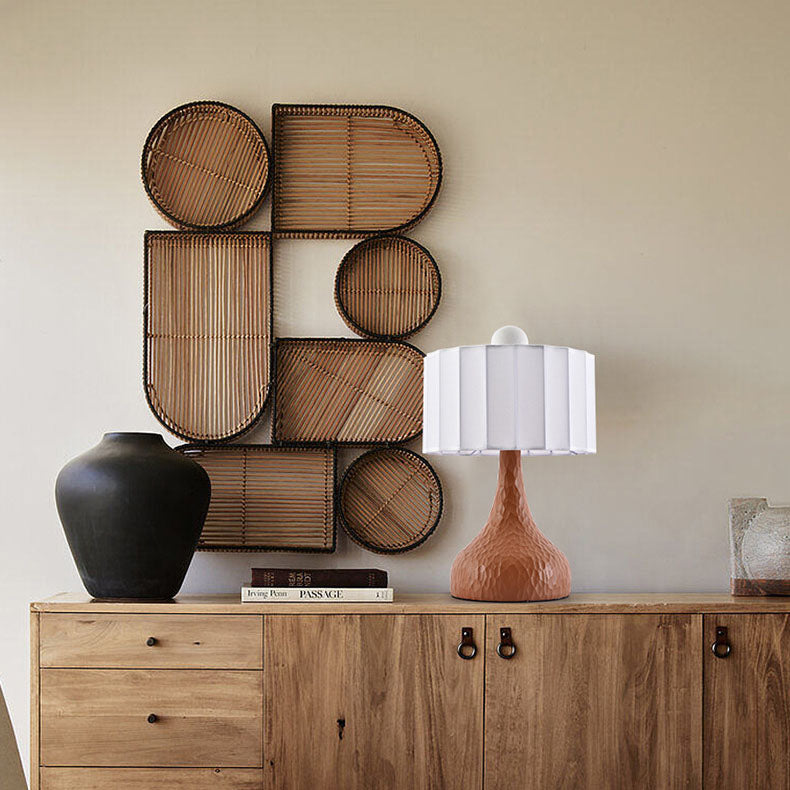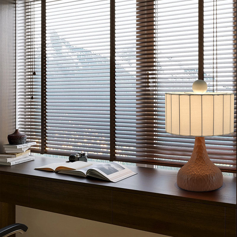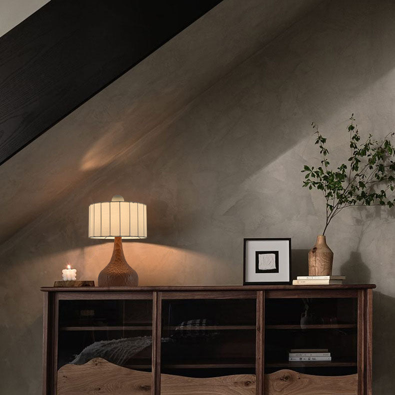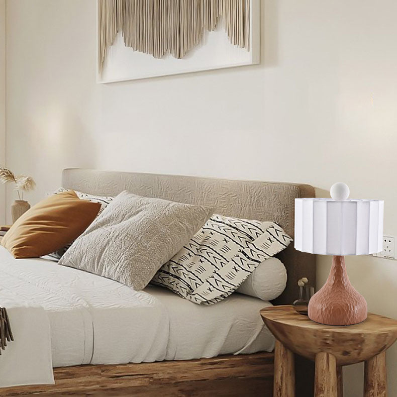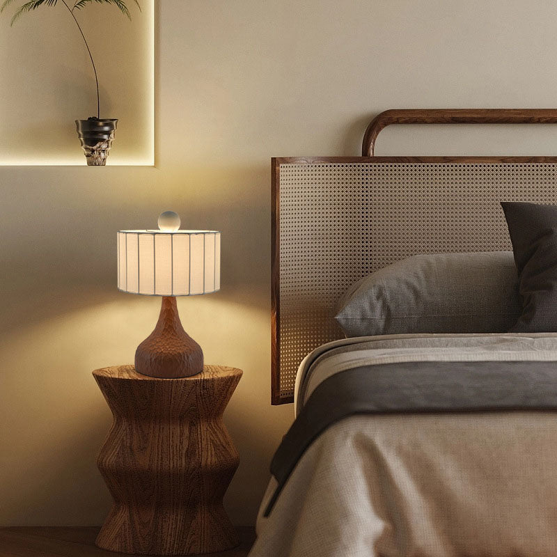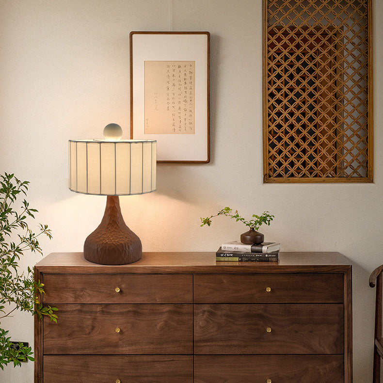 Traditional Japanese Column Fabric Resin 1-Light Table Lamp For Living Room