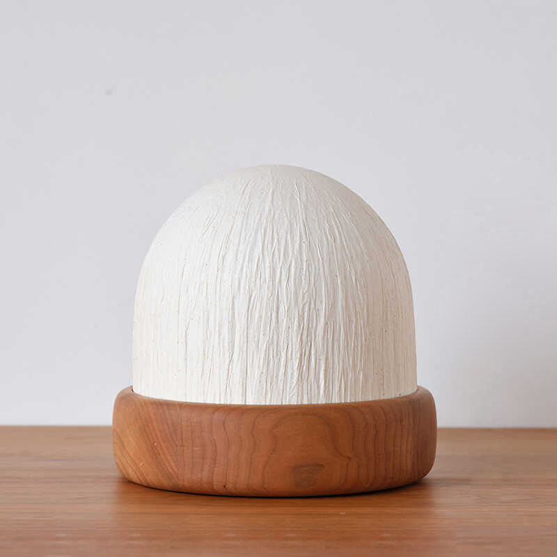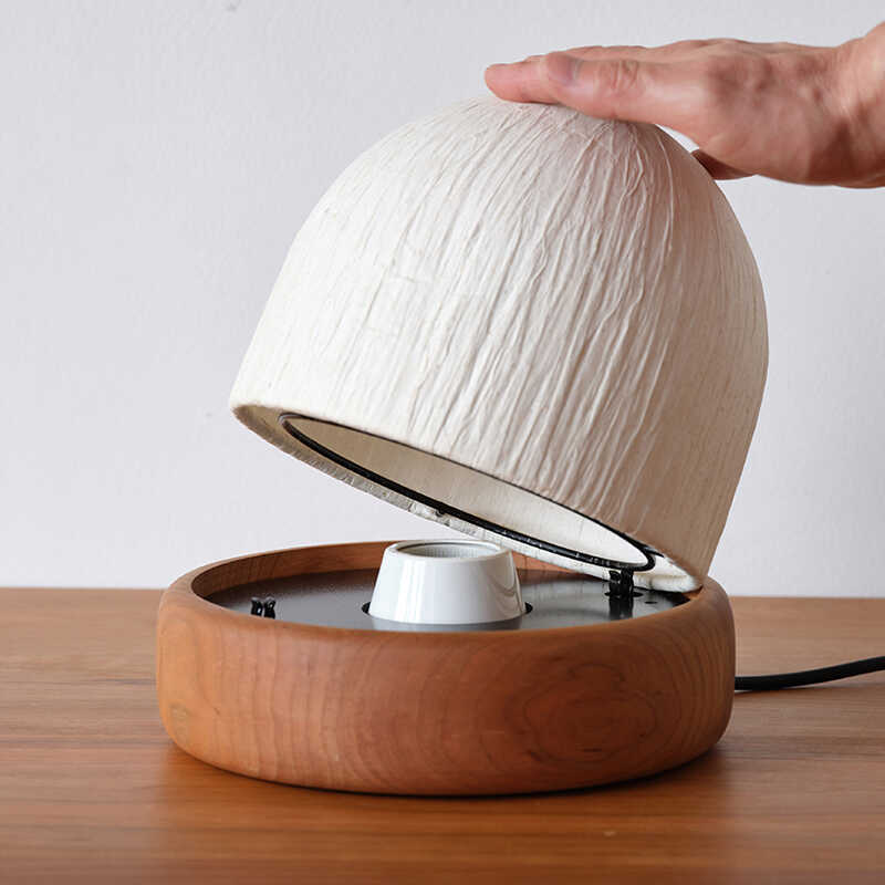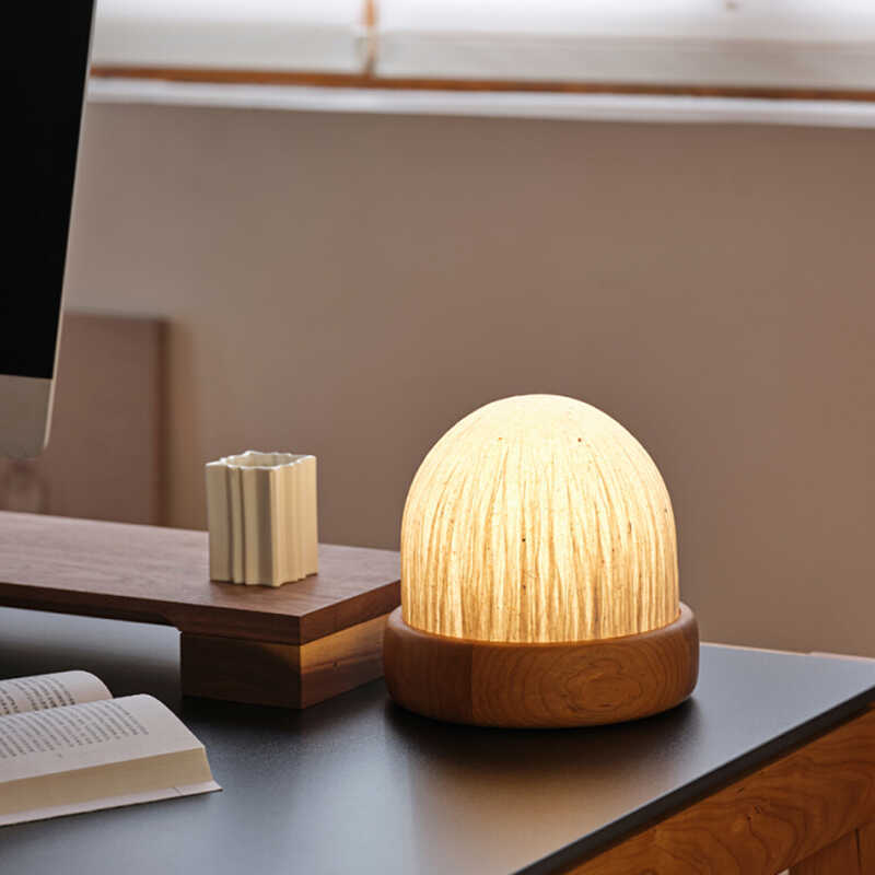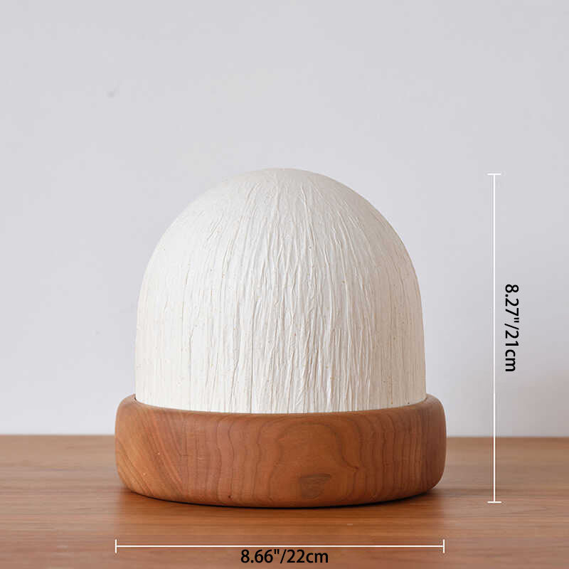 Traditional Japanese Dome Black Walnut Wood Fabric LED Table Lamp For Bedroom
