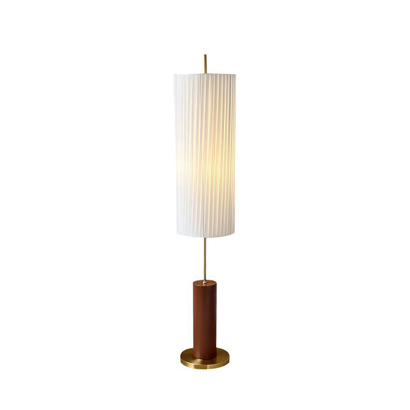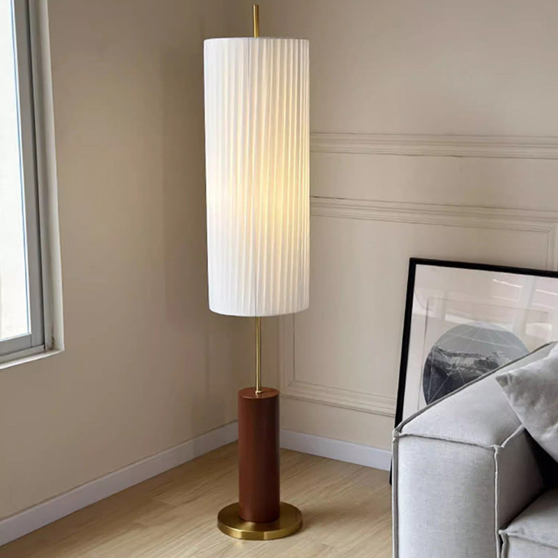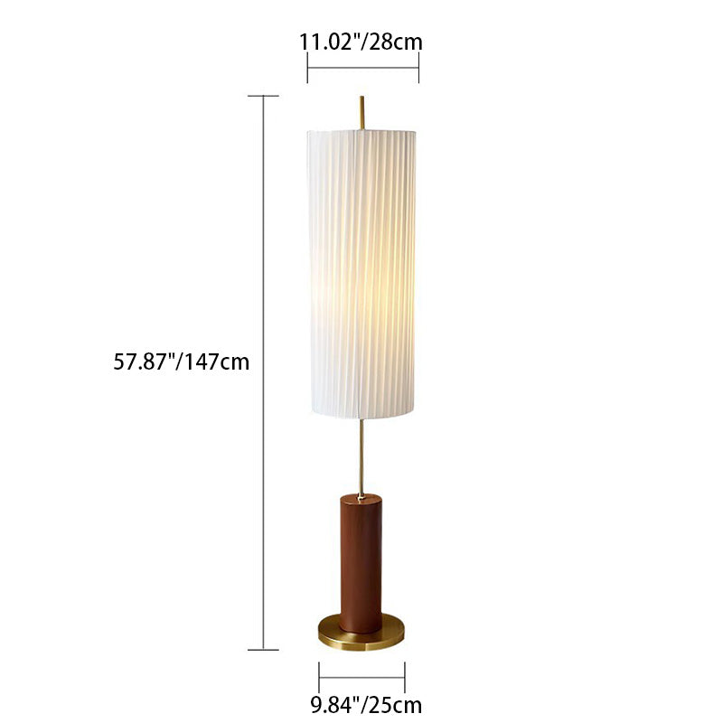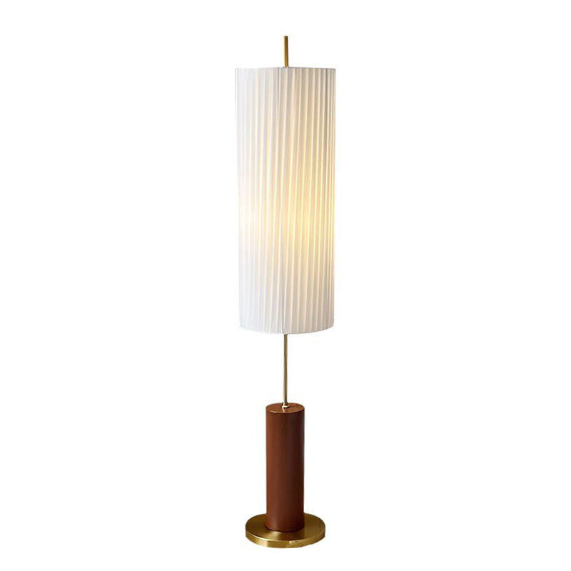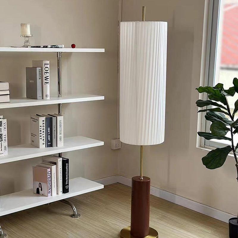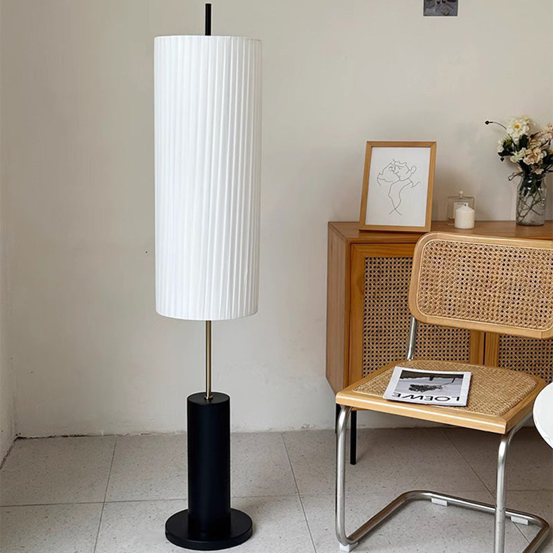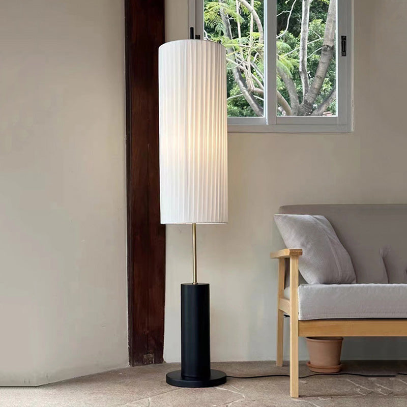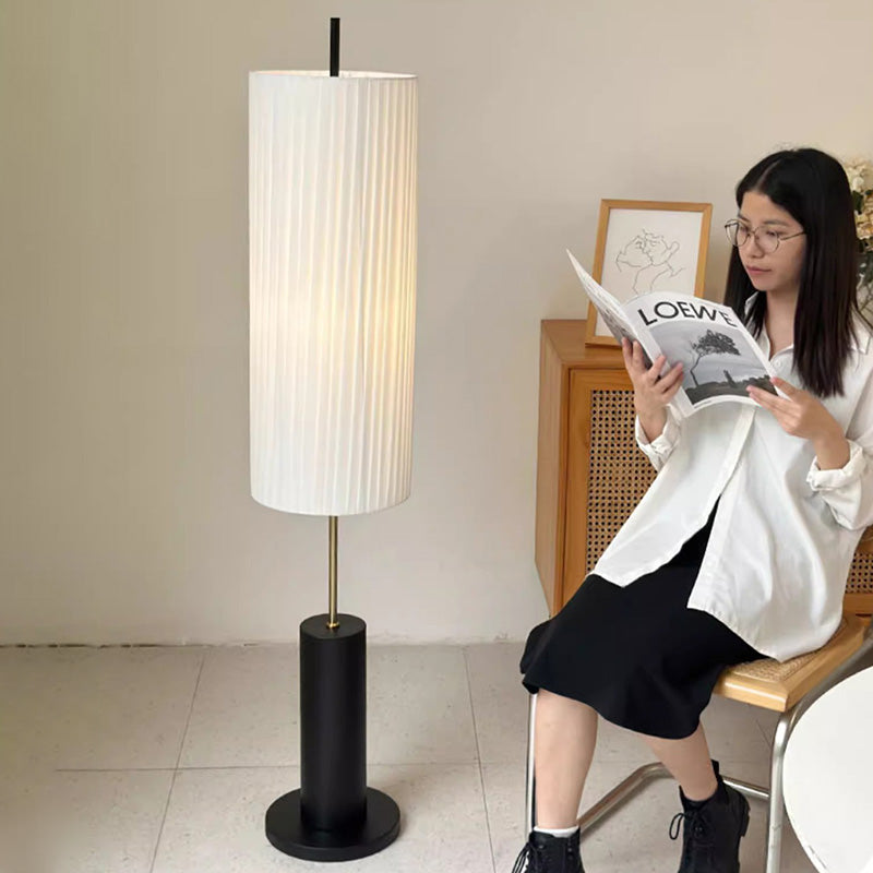 Traditional Japanese Iron Fabric Cylinder Pleated 1-Light Standing Floor Lamp For Living Room