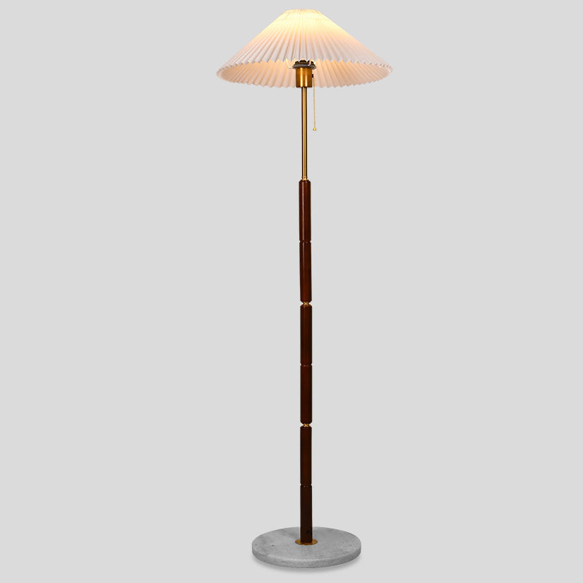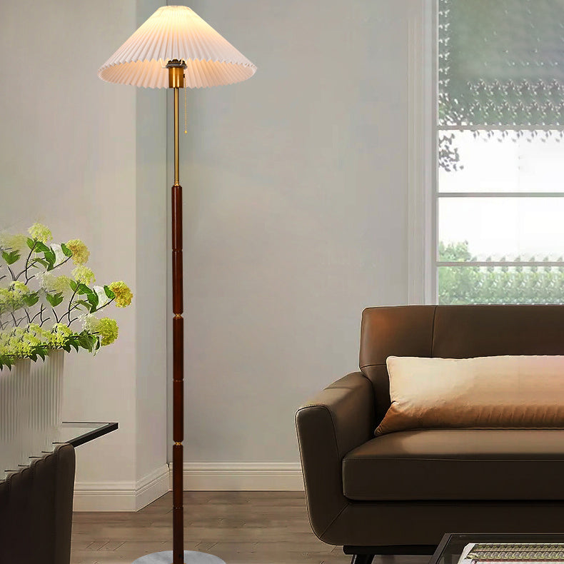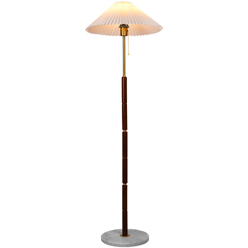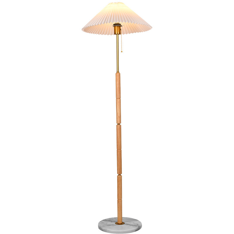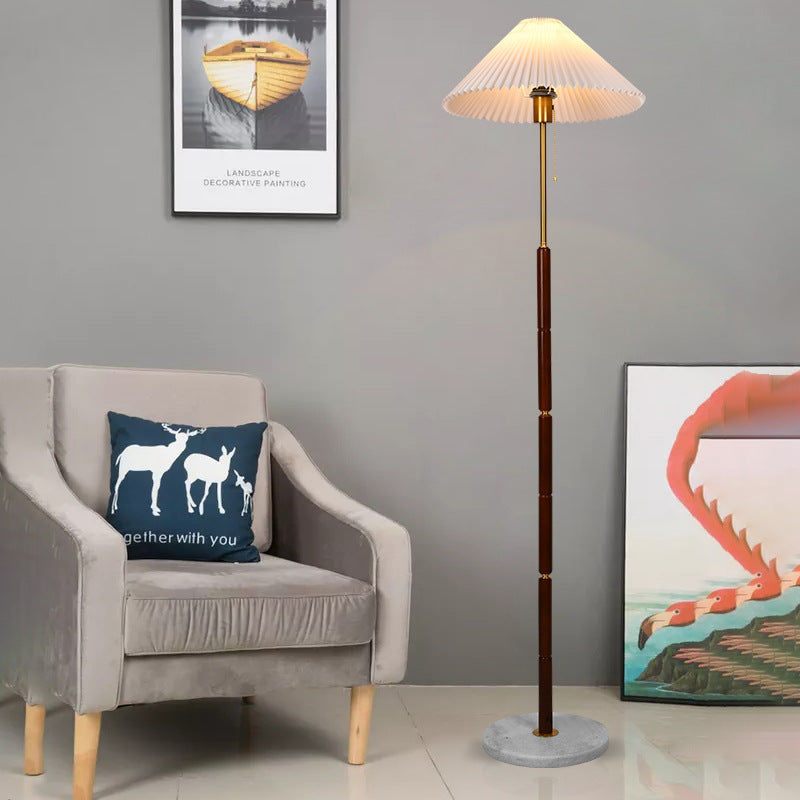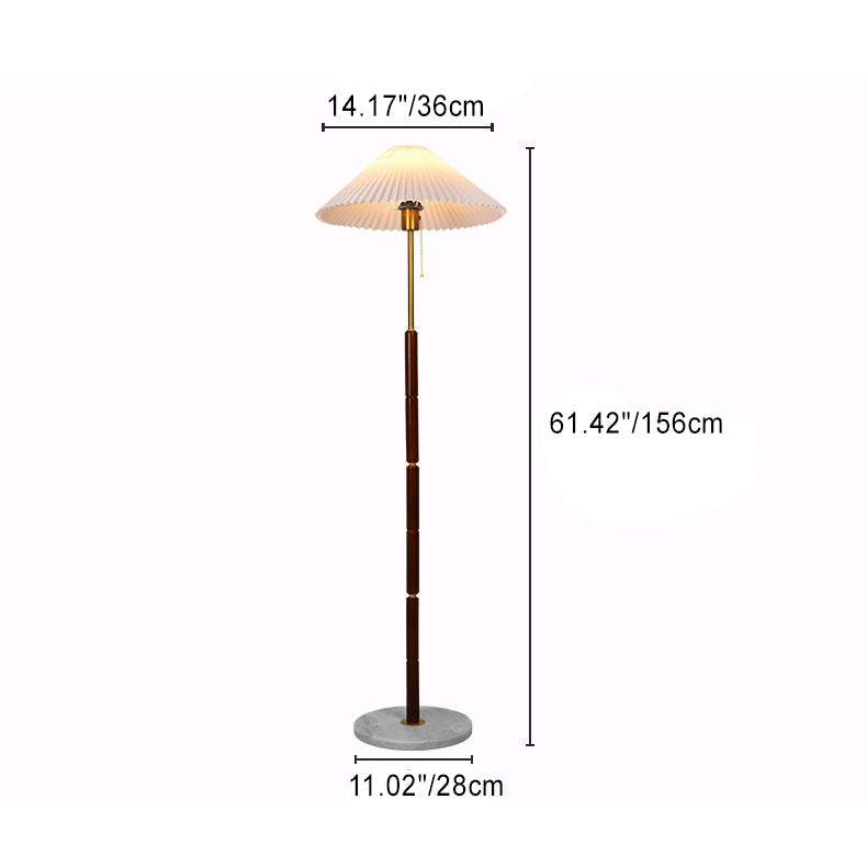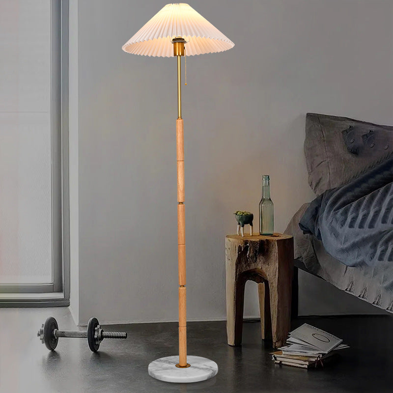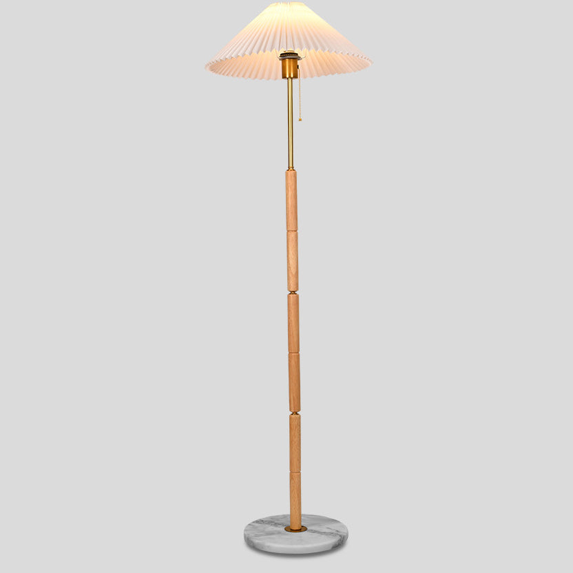 Traditional Japanese Plastic Pleated Conical Shade Marble Base 1-Light Standing Floor Lamp For Home Office