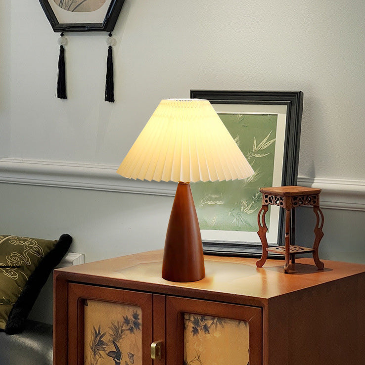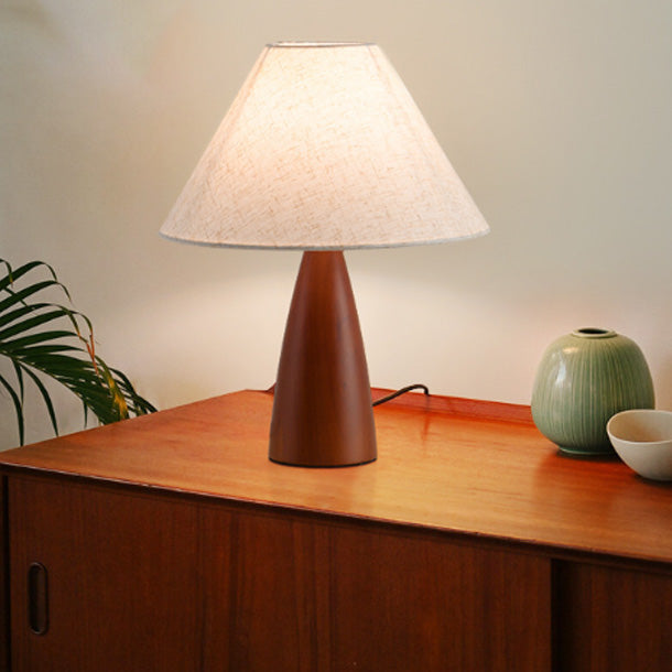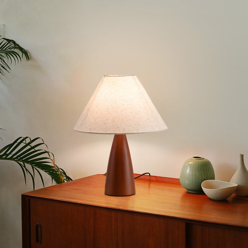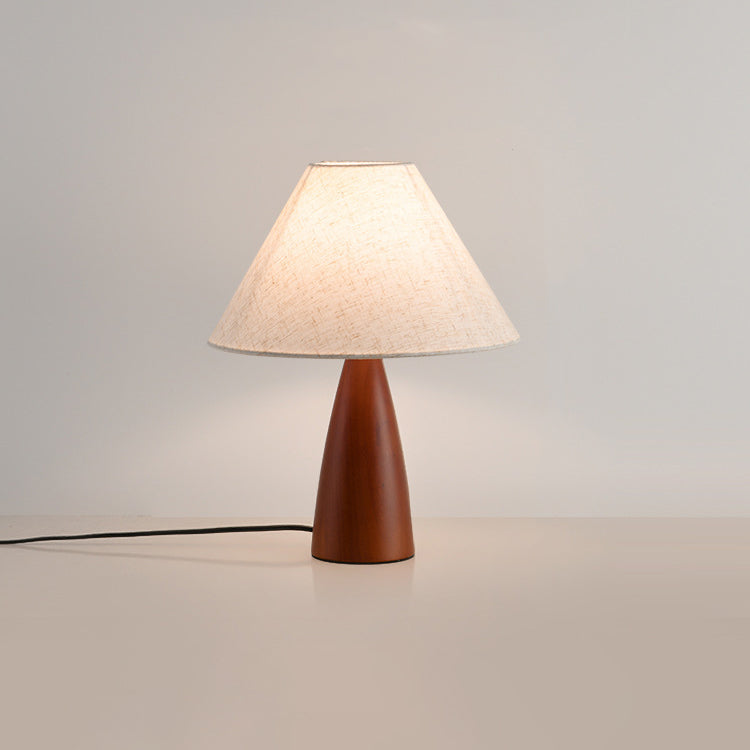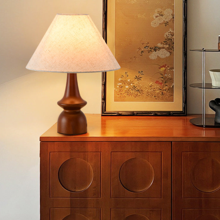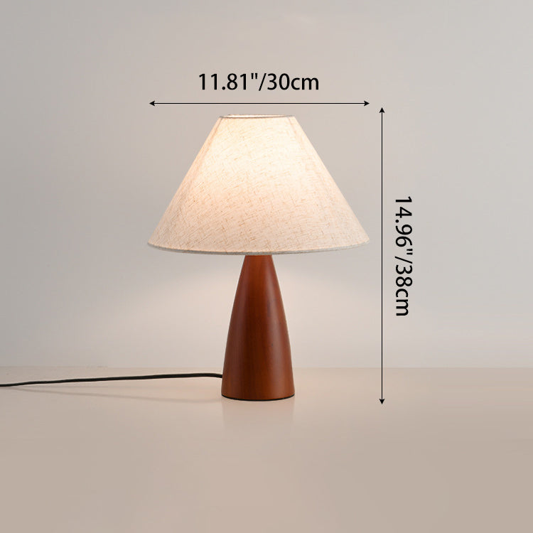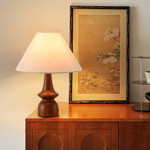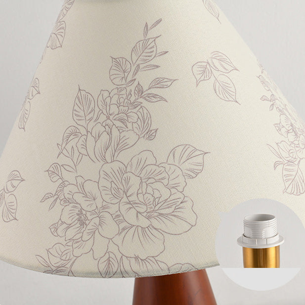 Traditional Japanese Printed Fabric Conical Shade Solid Wood 1-Light Table Lamp For Bedroom