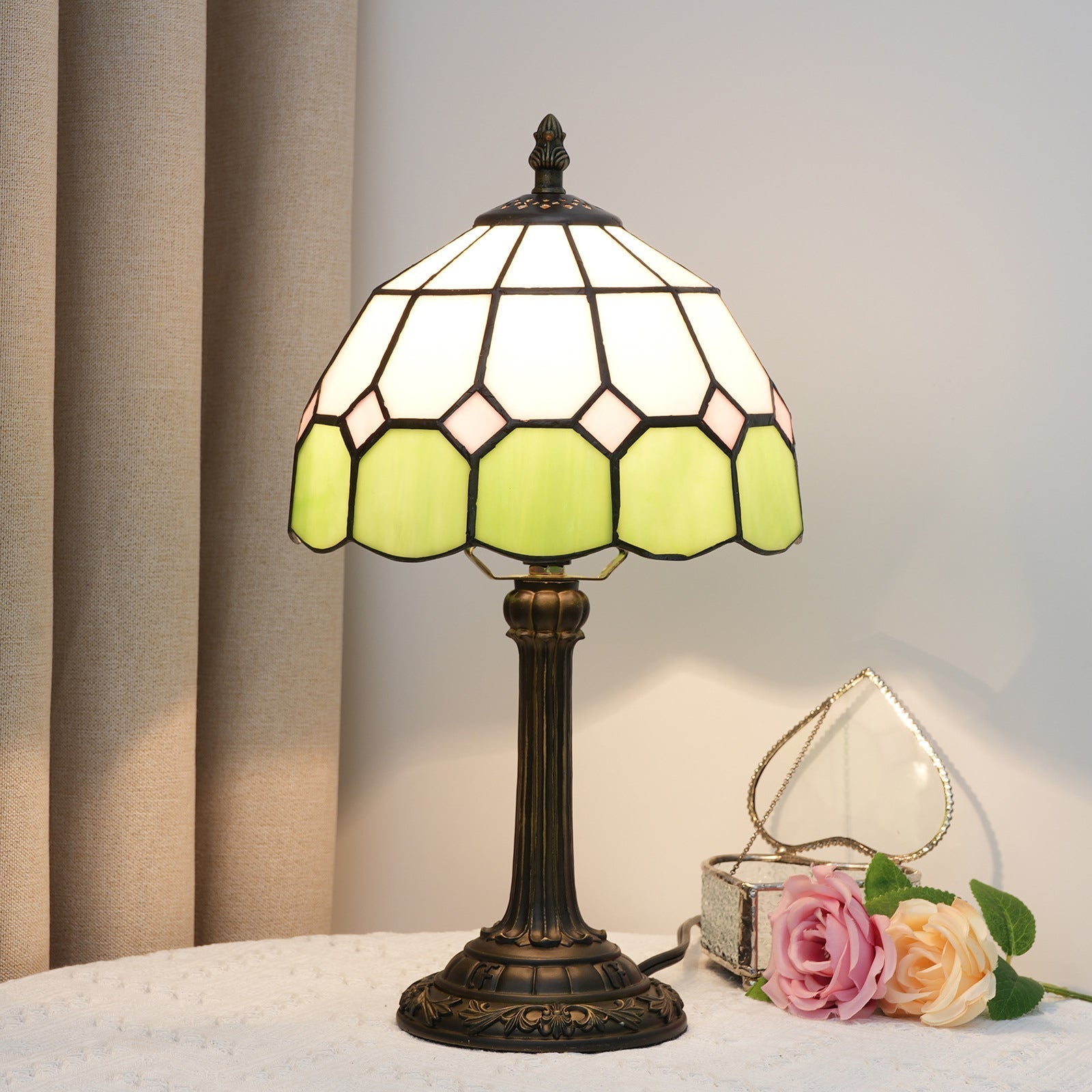 Traditional Tiffany Dome Resin Glass 1-Light Table Lamp For Living Room
