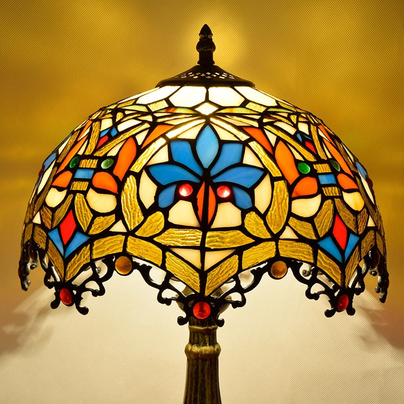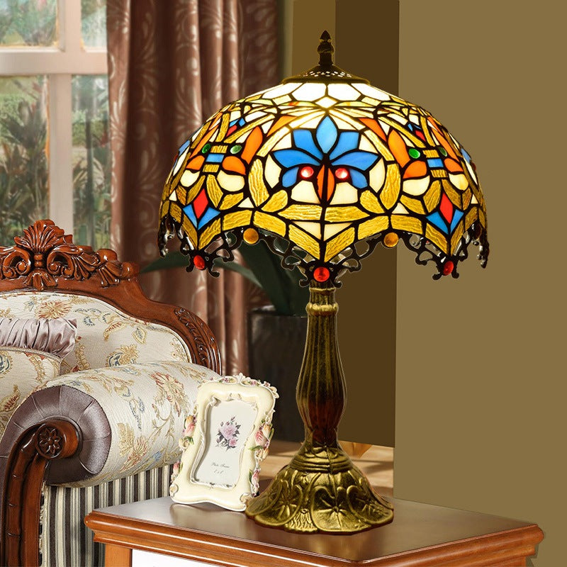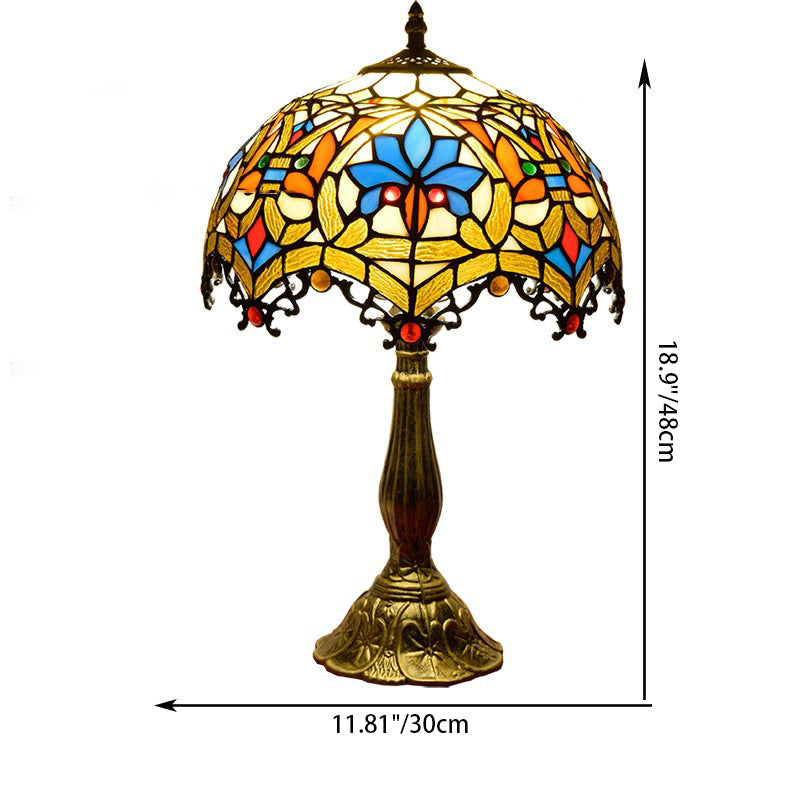 Traditional Tiffany Flower Gemstone Stained Glass 1-Light Table Lamp For Living Room