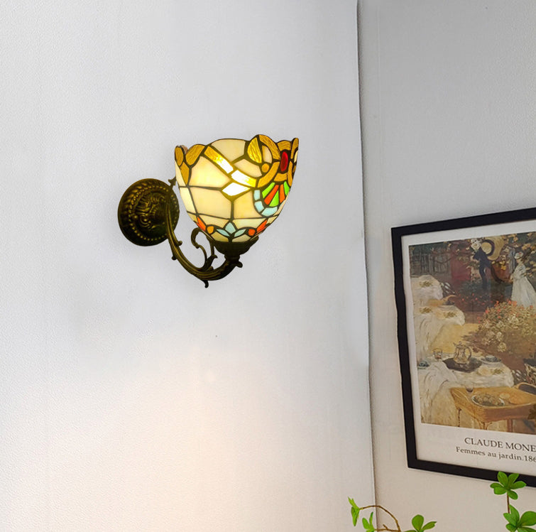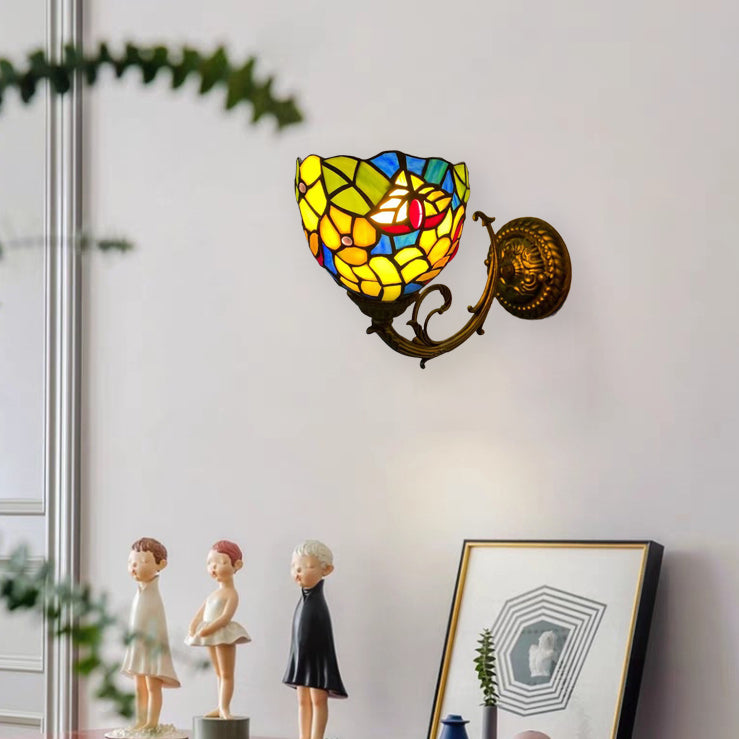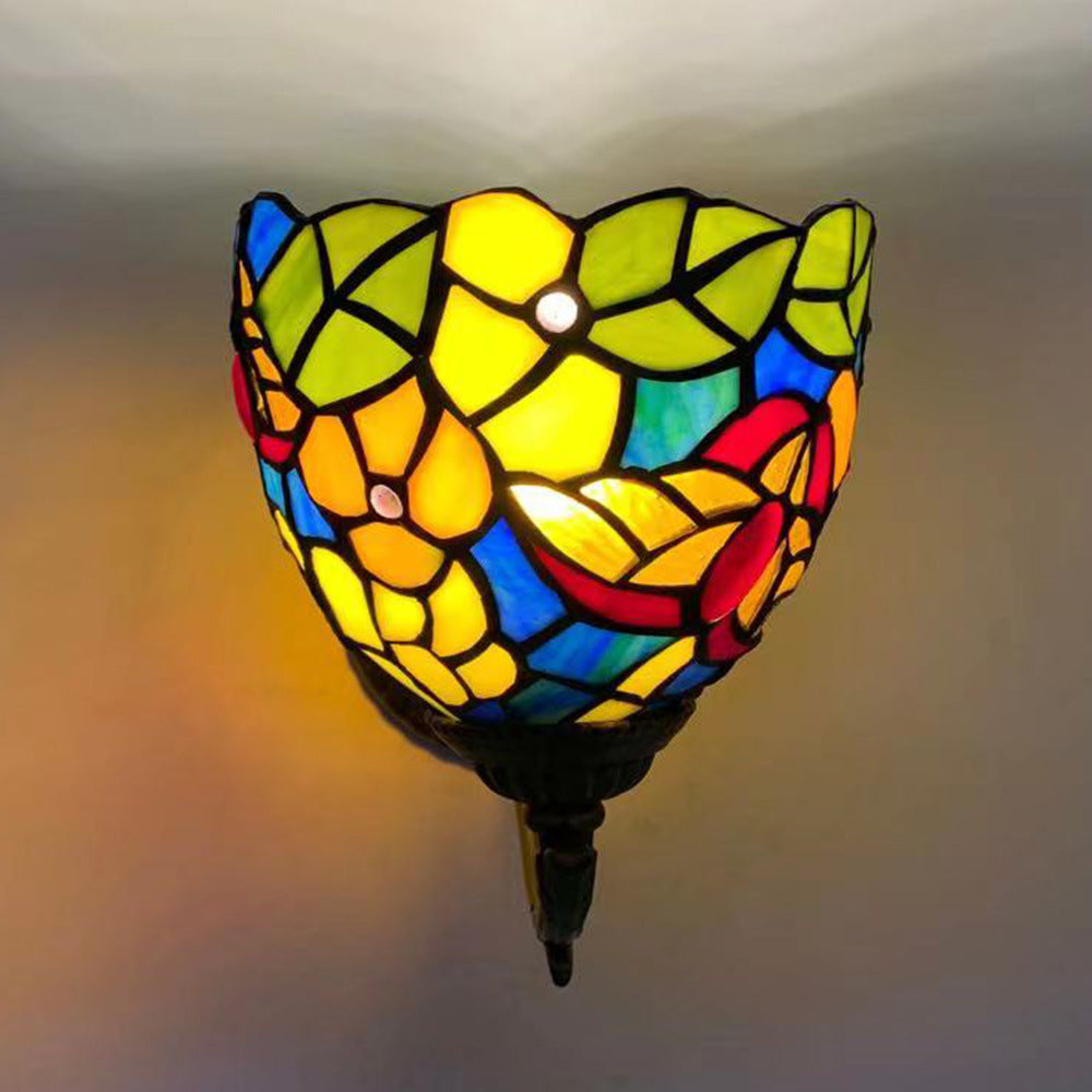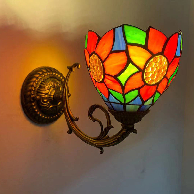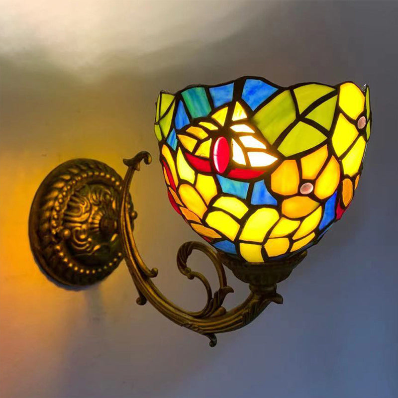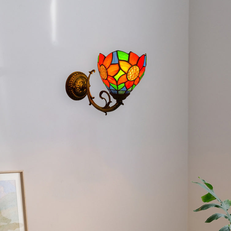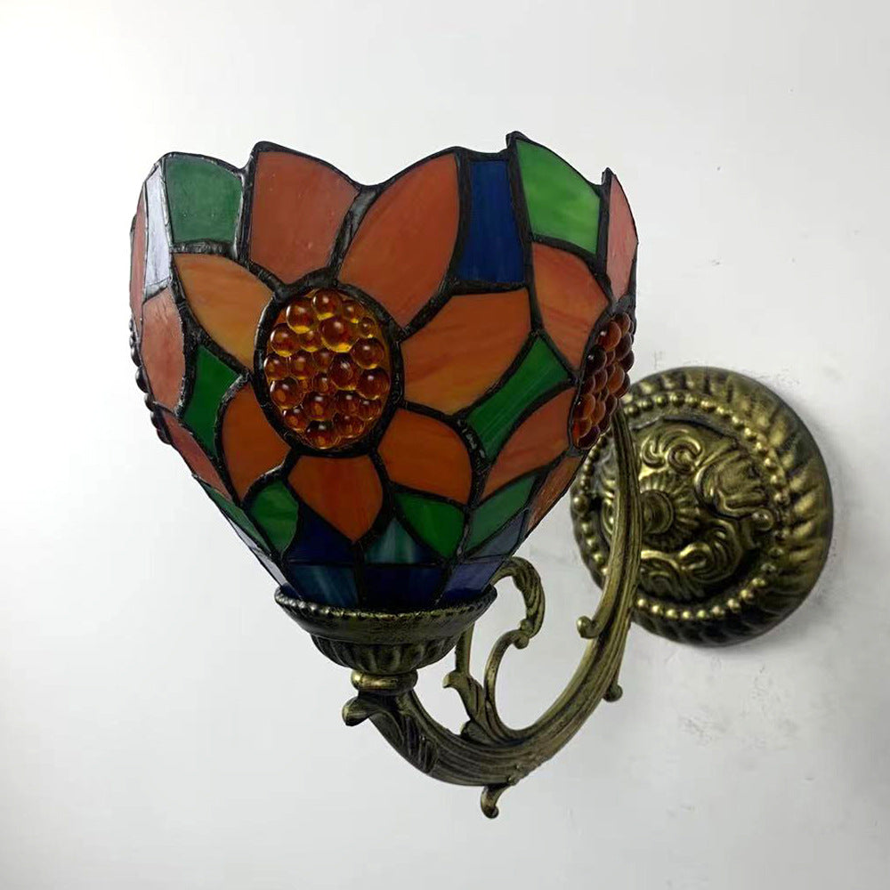 Traditional Tiffany Flower Iron Stained Glass 1-Light Wall Sconce Lamp For Living Room