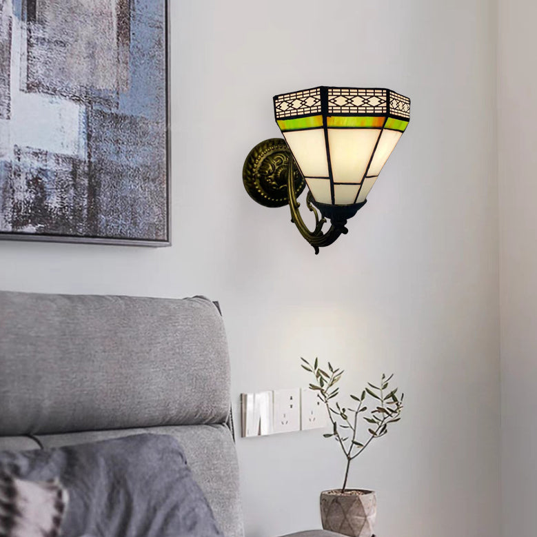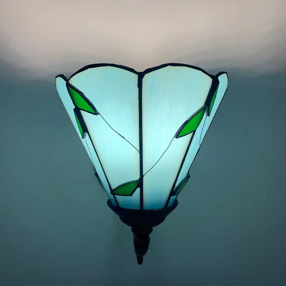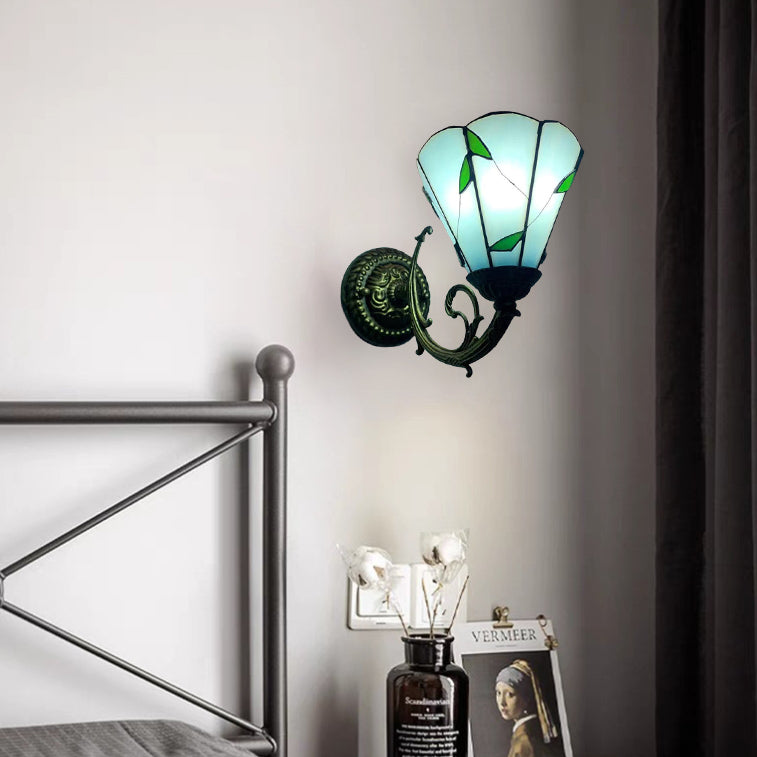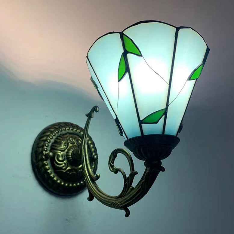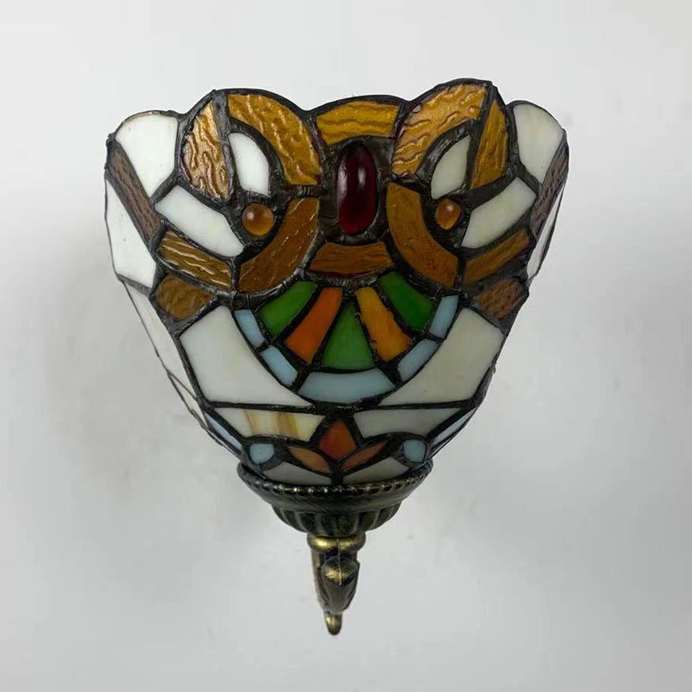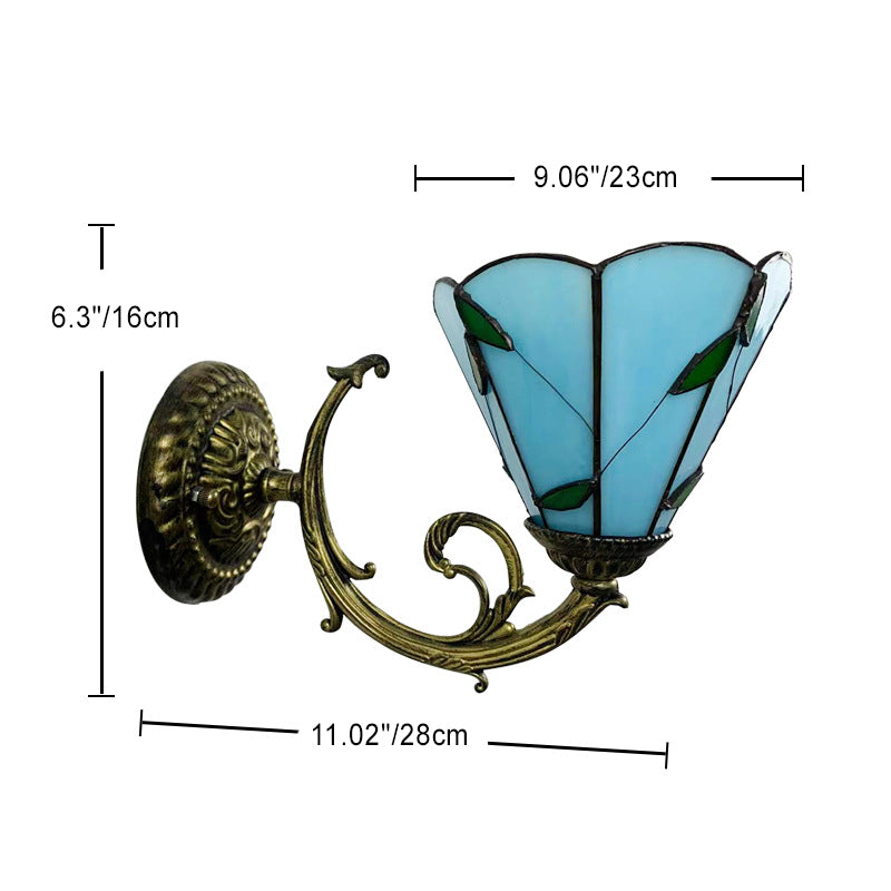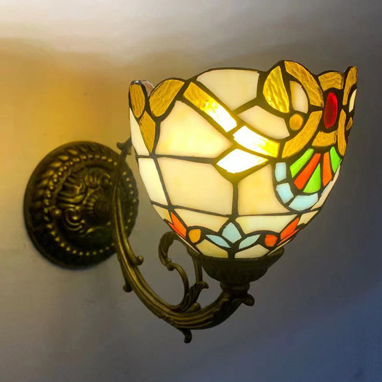 Traditional Tiffany Flower Iron Stained Glass 1-Light Wall Sconce Lamp For Living Room