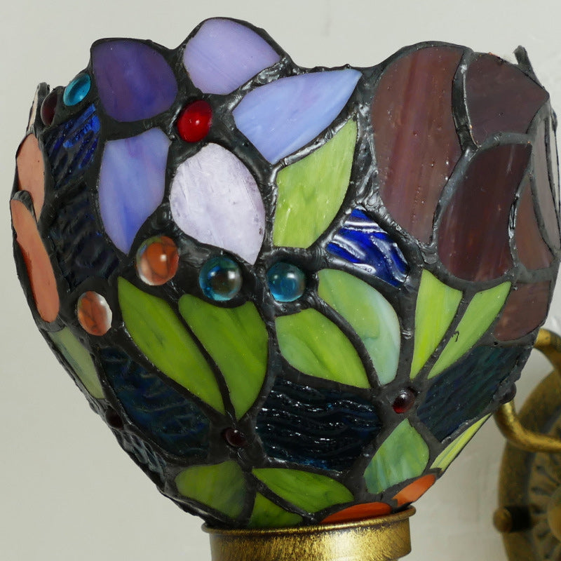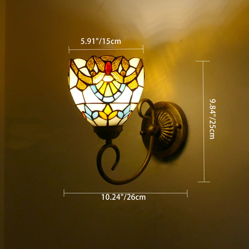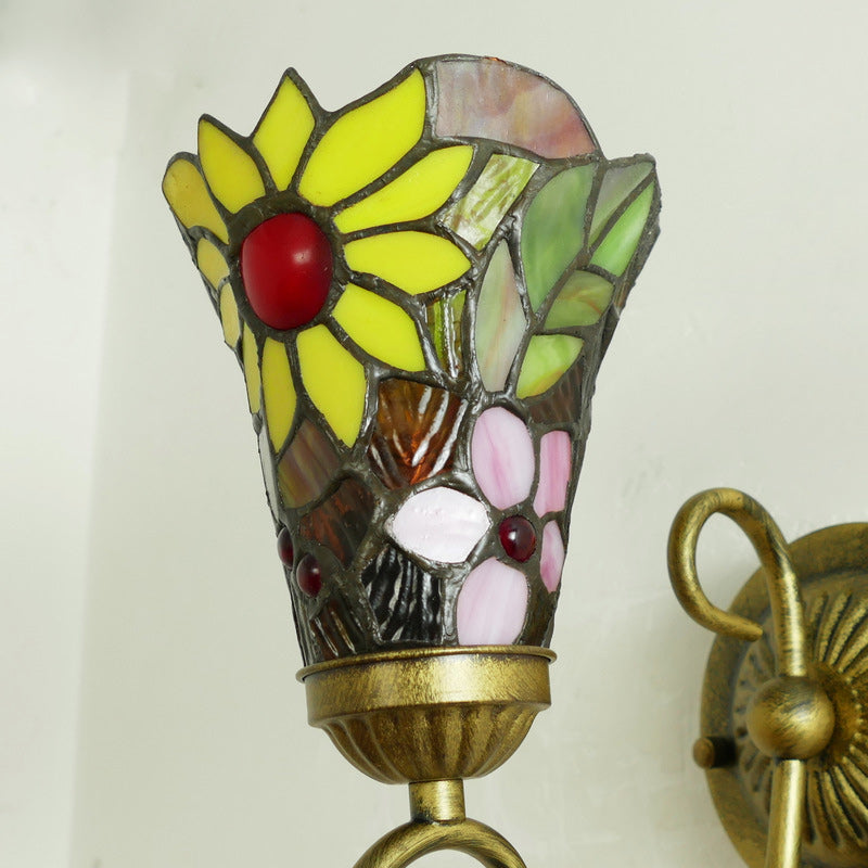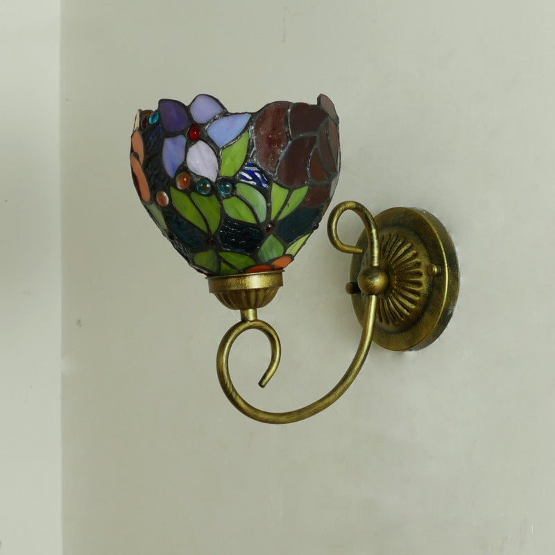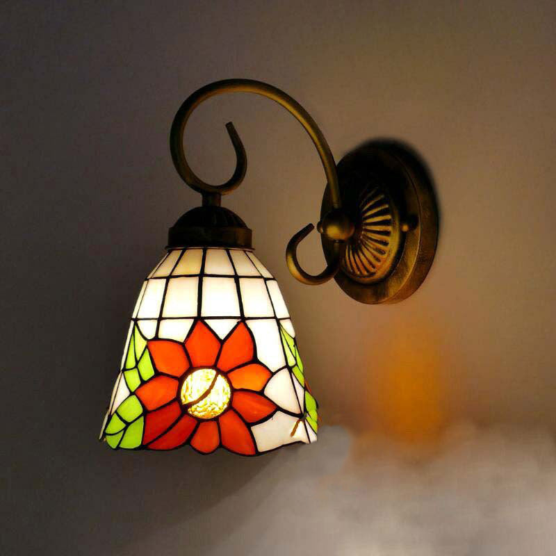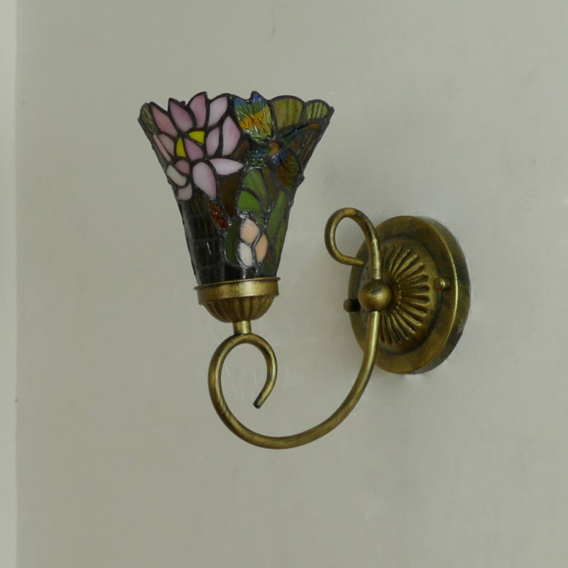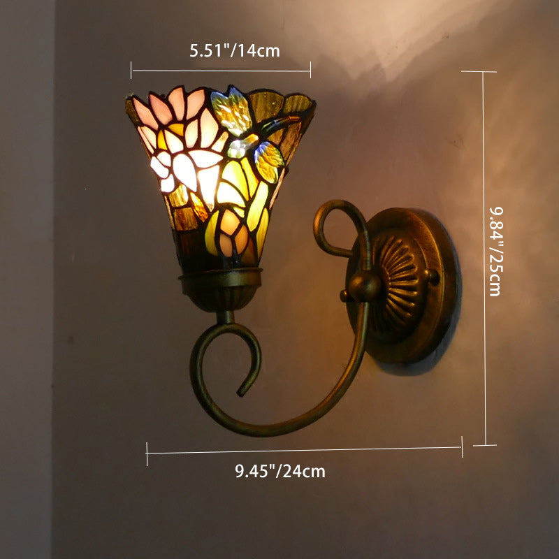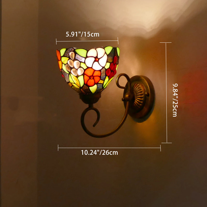 Traditional Tiffany Flower Pod Round Glass Iron 1-Light Wall Sconce Lamp For Living Room