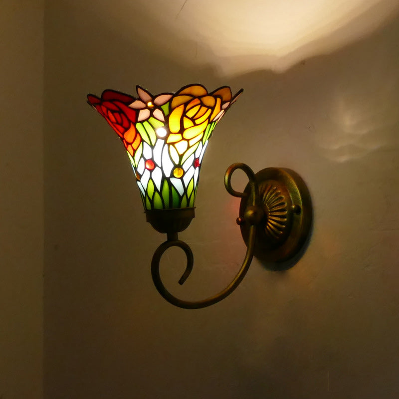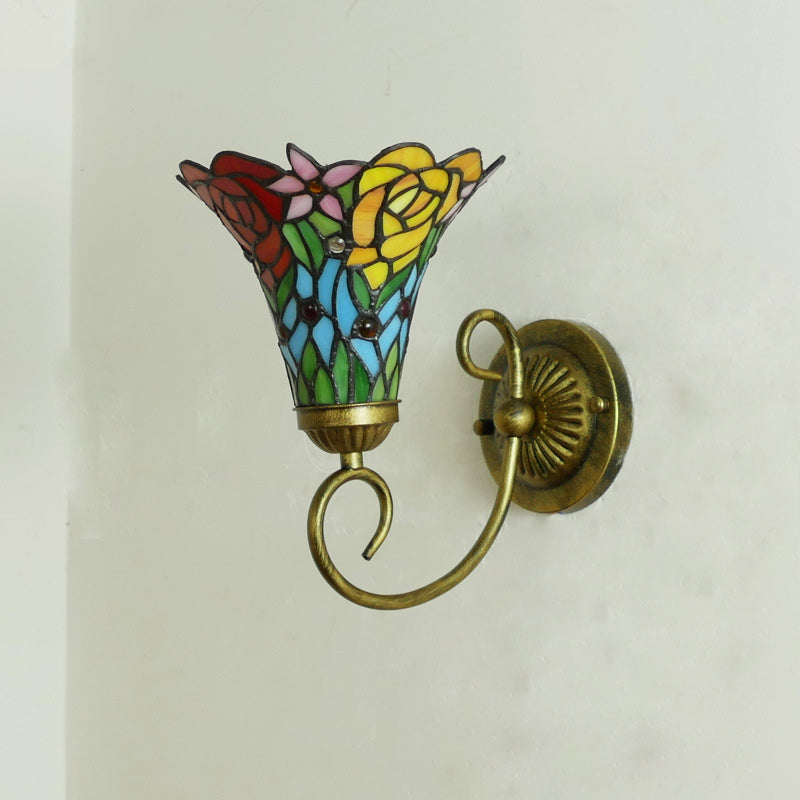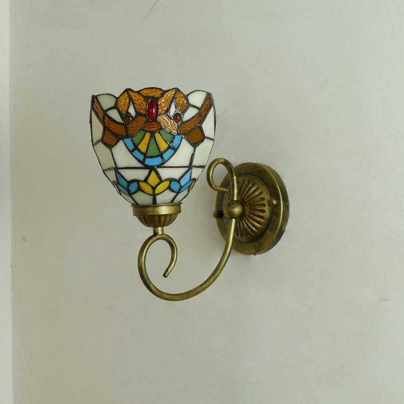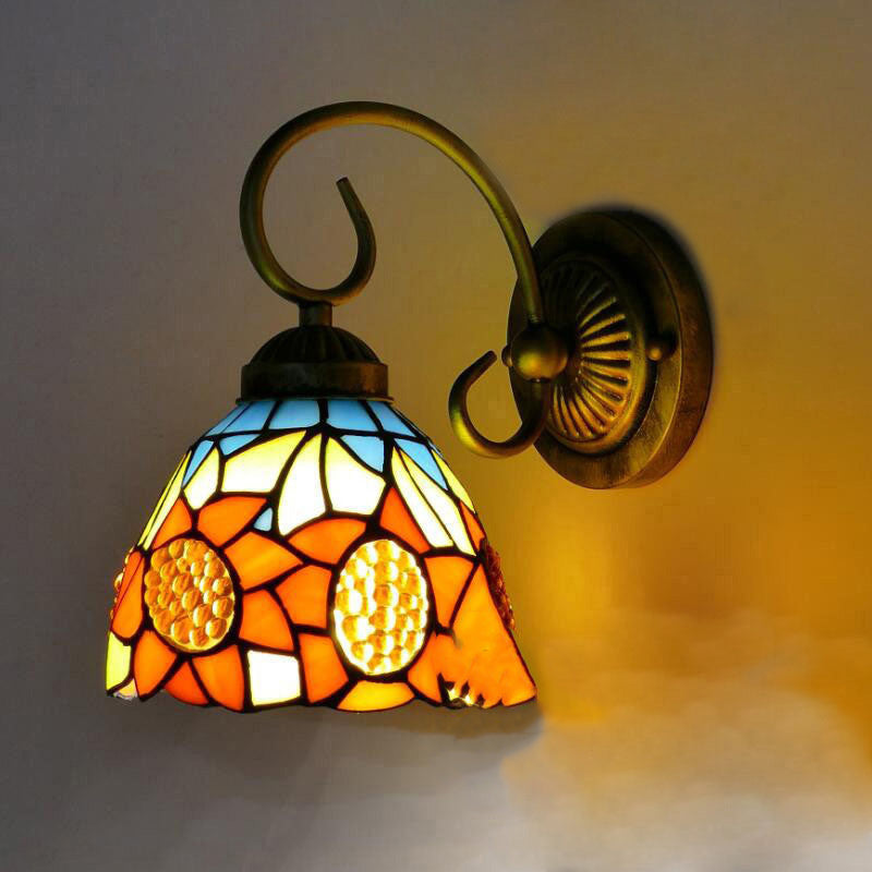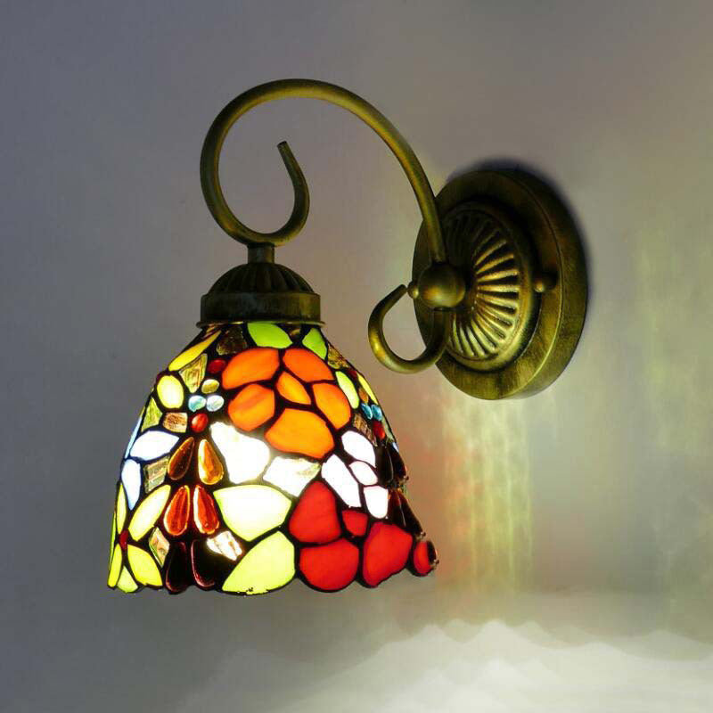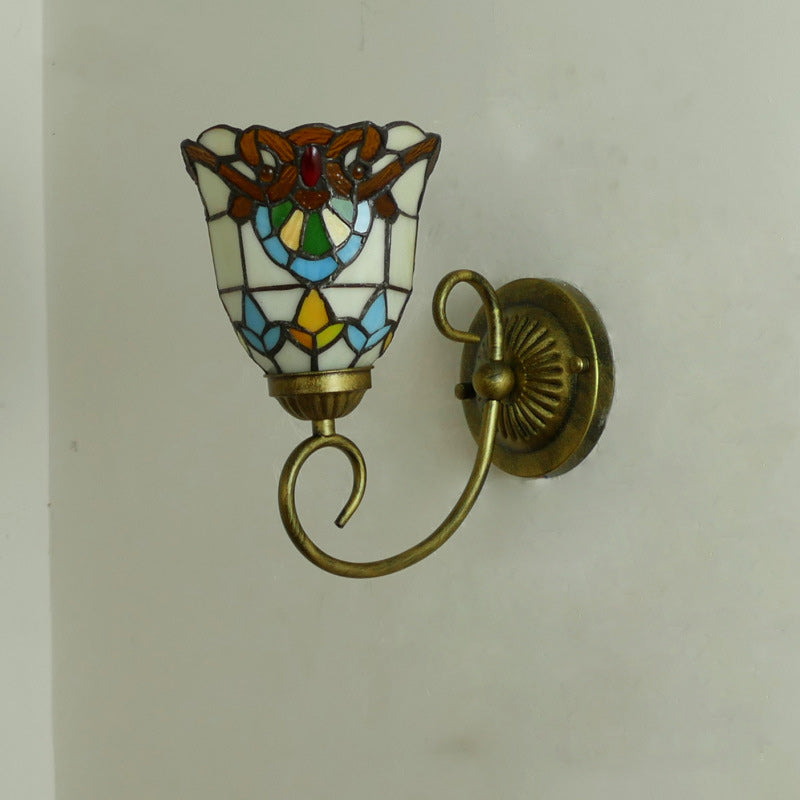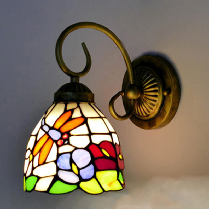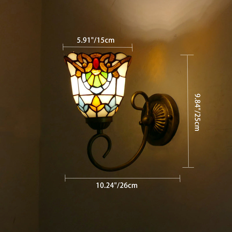 Traditional Tiffany Flower Pod Round Glass Iron 1-Light Wall Sconce Lamp For Living Room