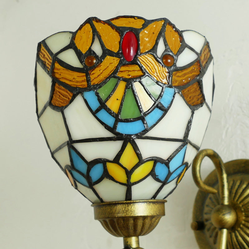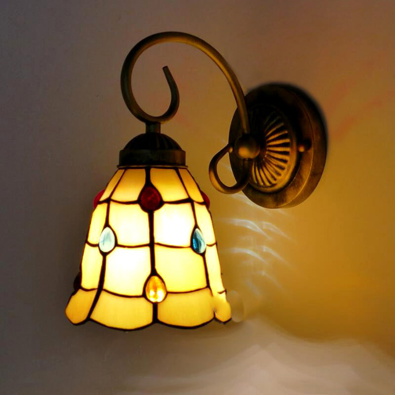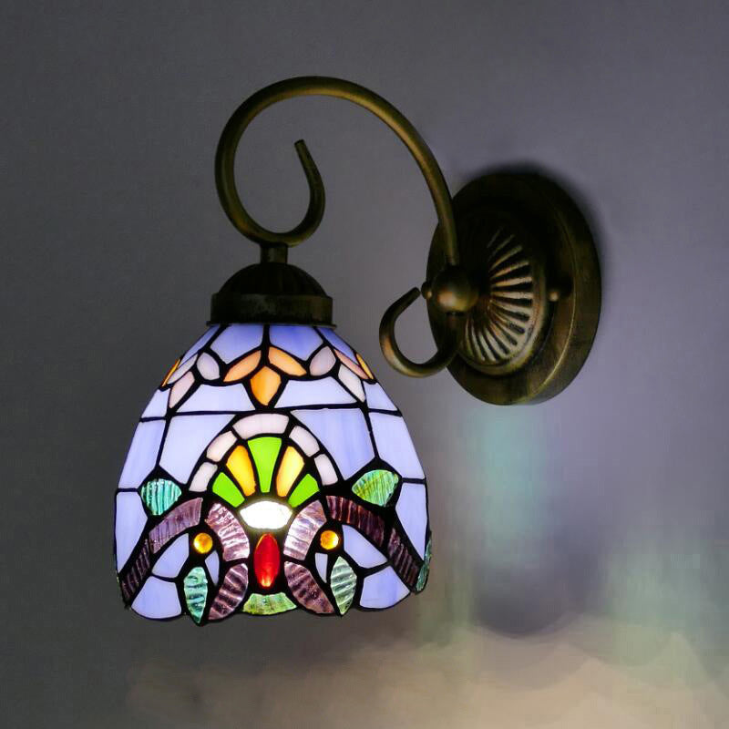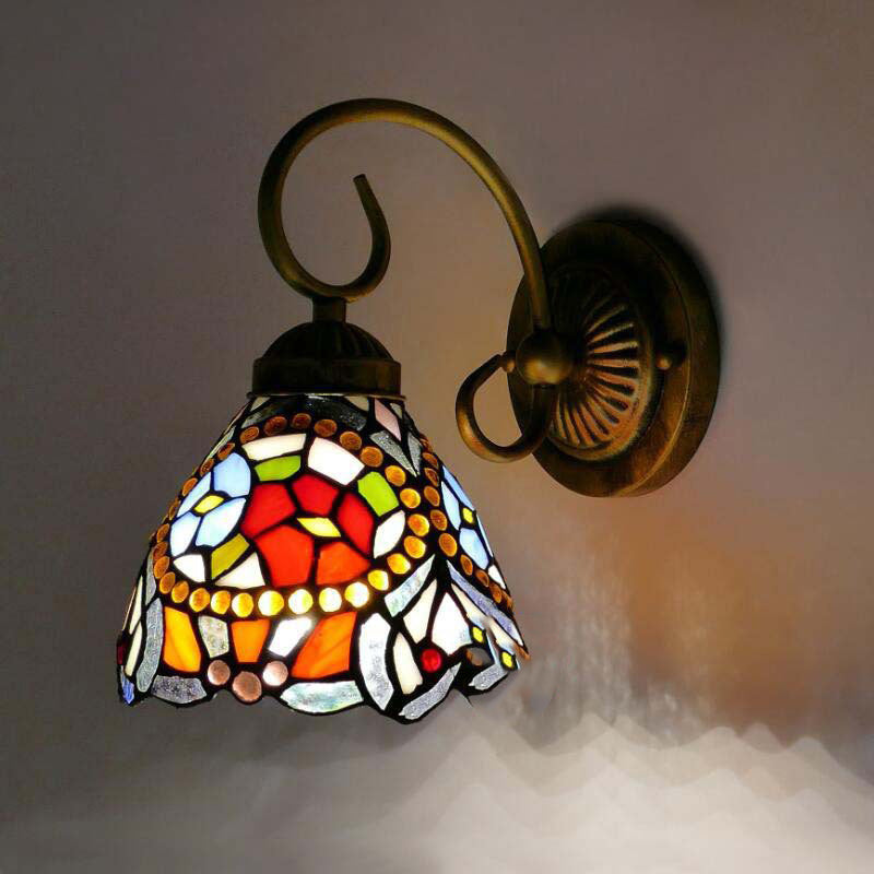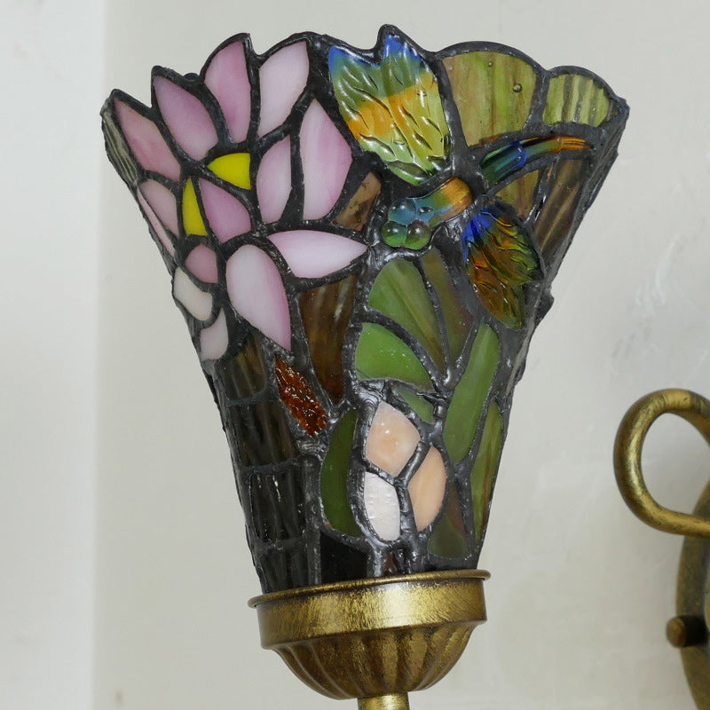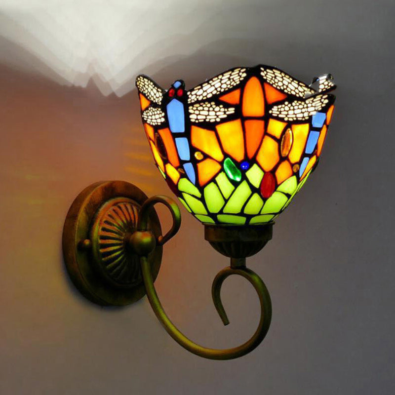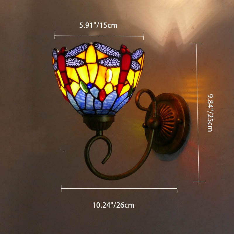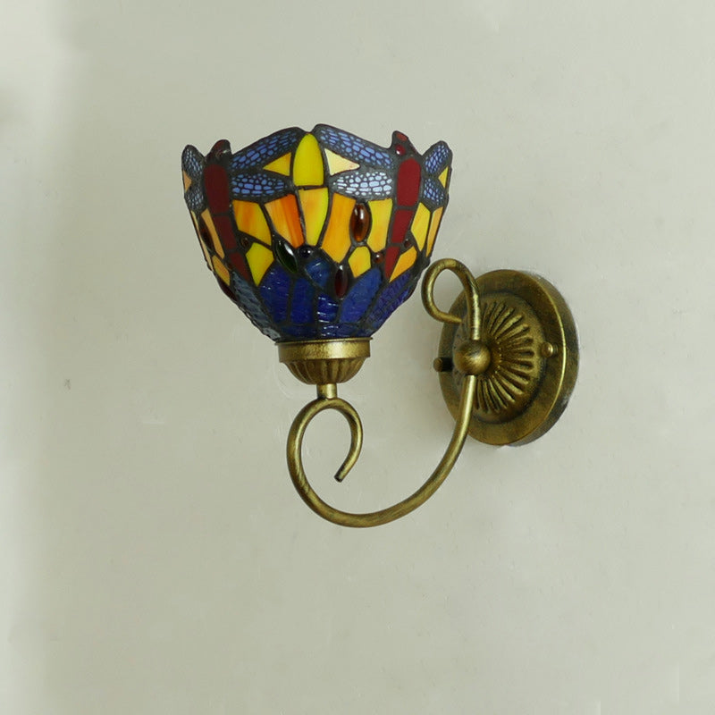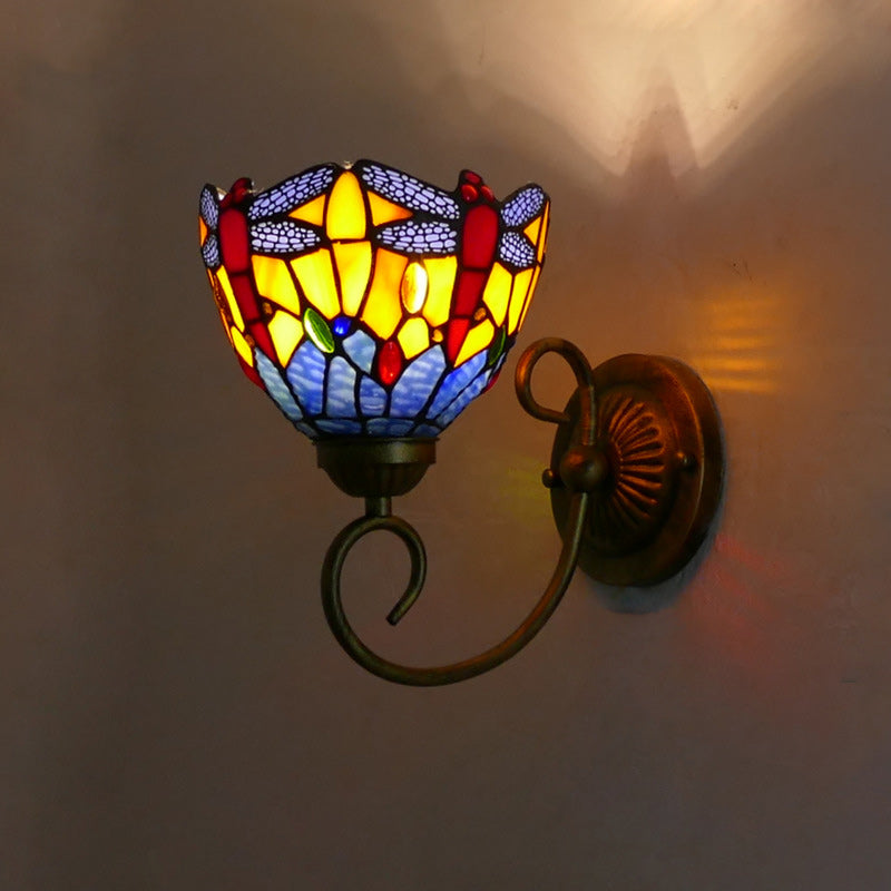 Traditional Tiffany Flower Pod Round Glass Iron 1-Light Wall Sconce Lamp For Living Room