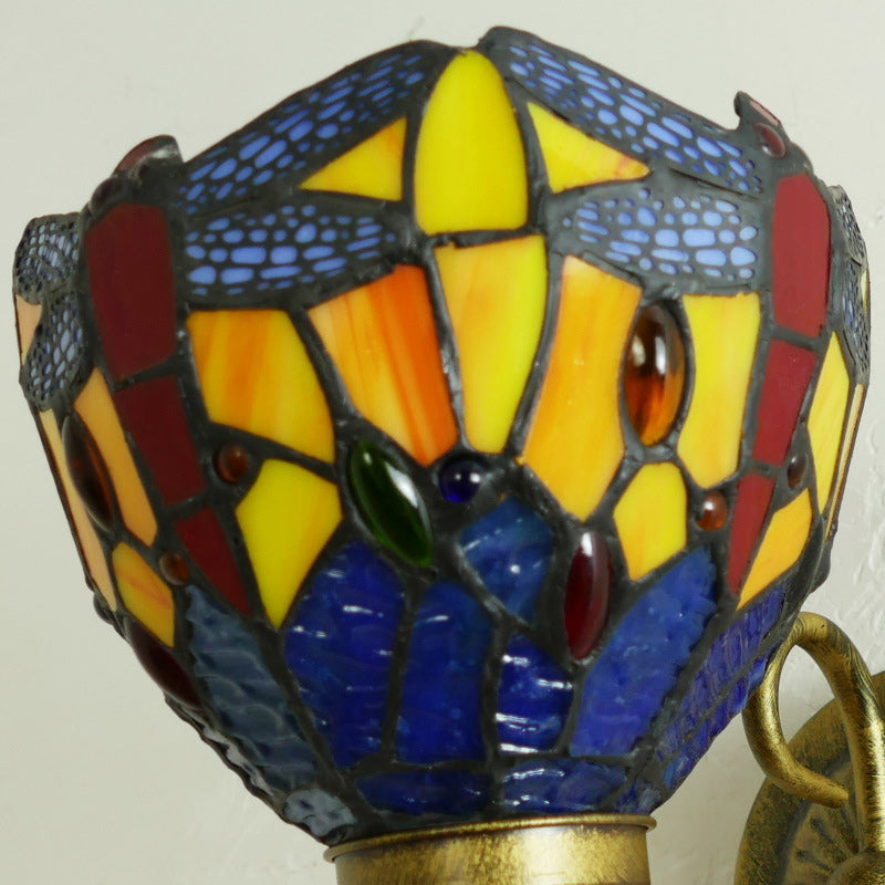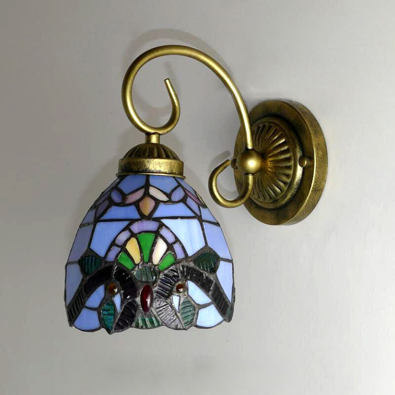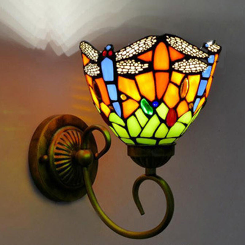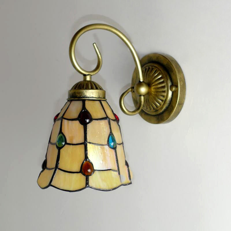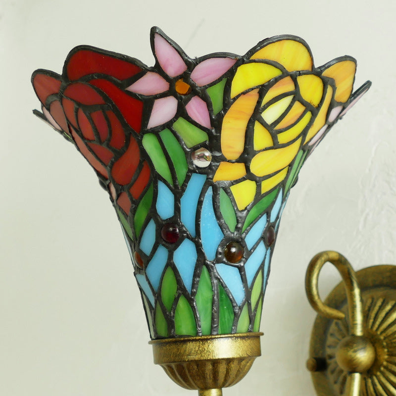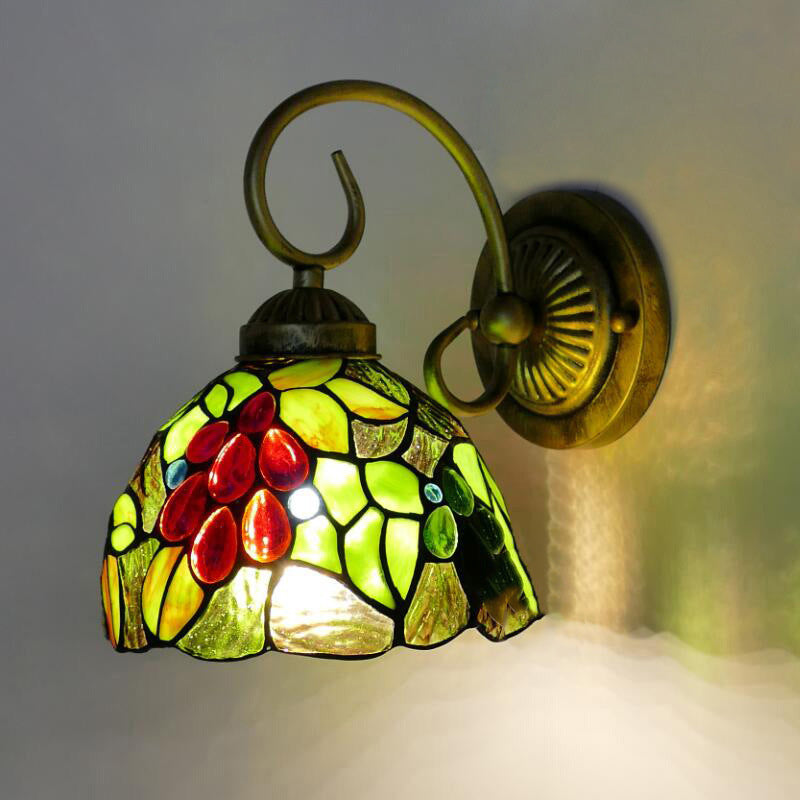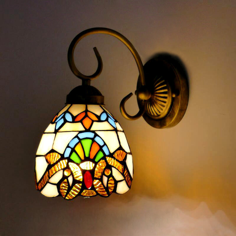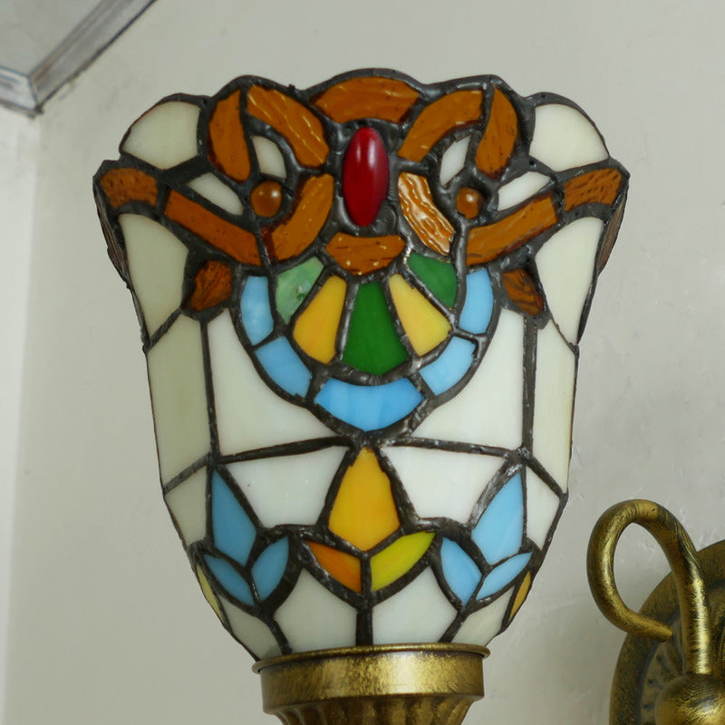 Traditional Tiffany Flower Pod Round Glass Iron 1-Light Wall Sconce Lamp For Living Room