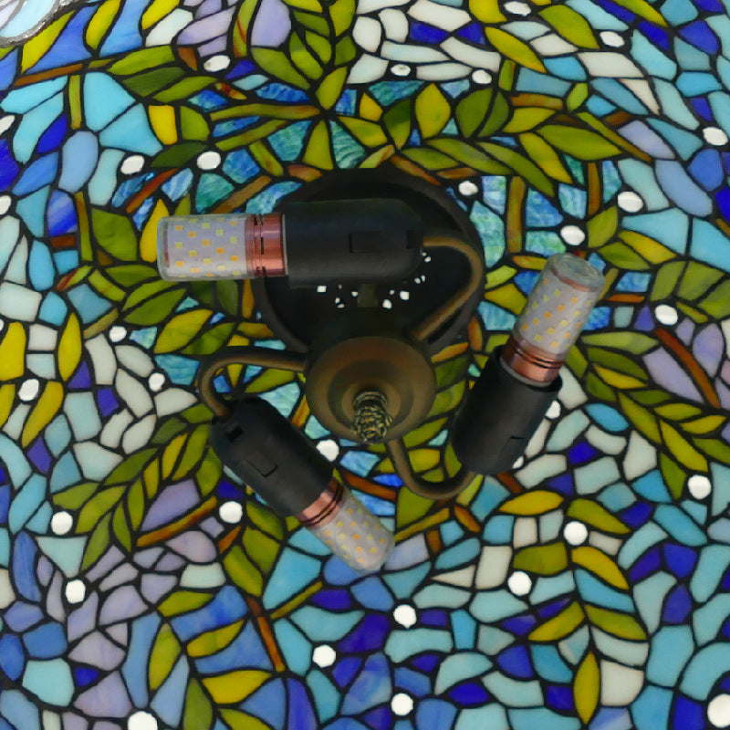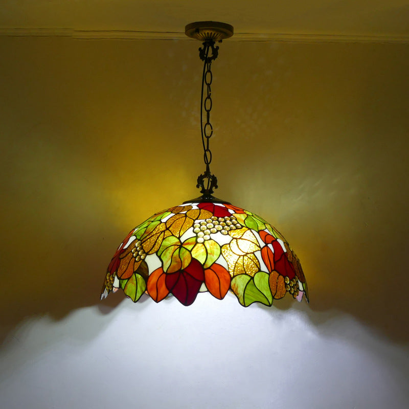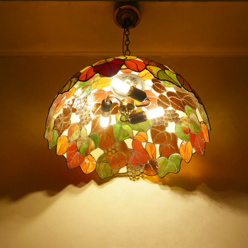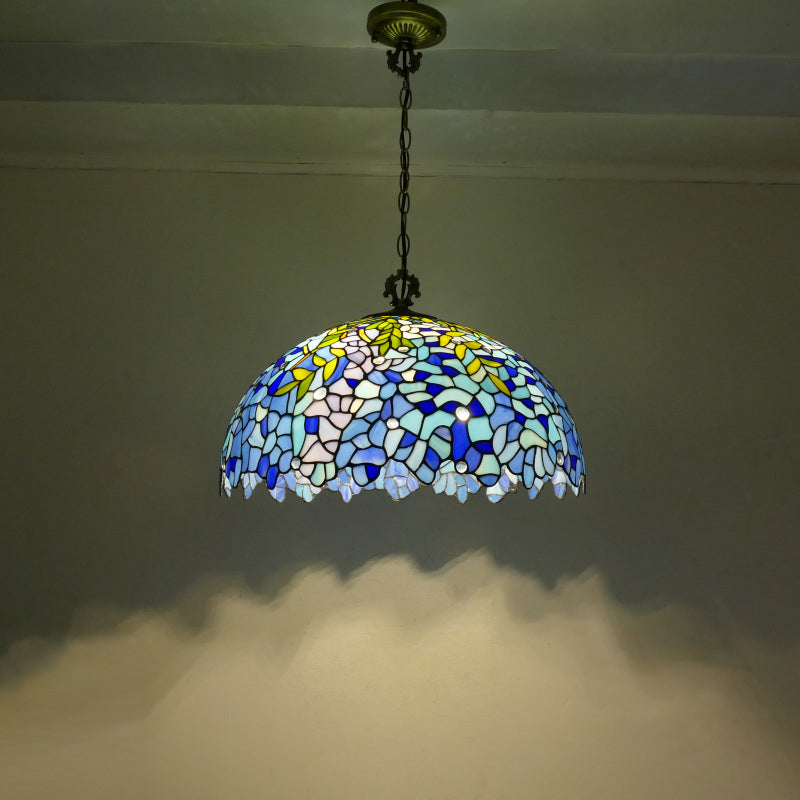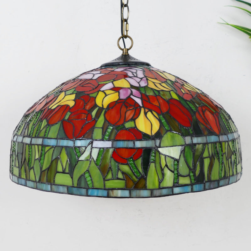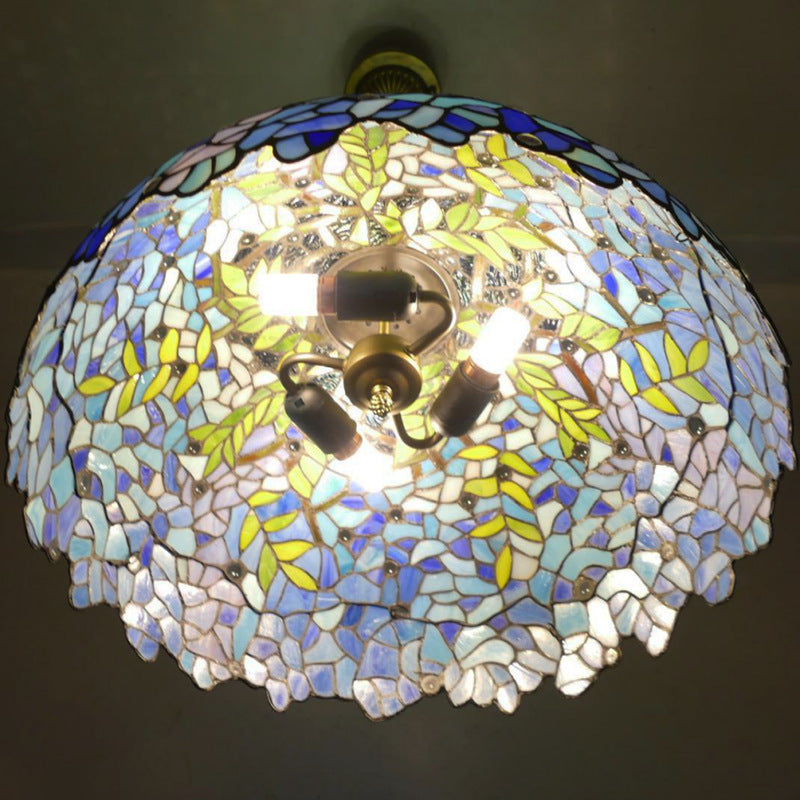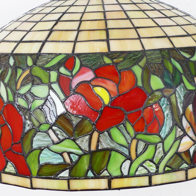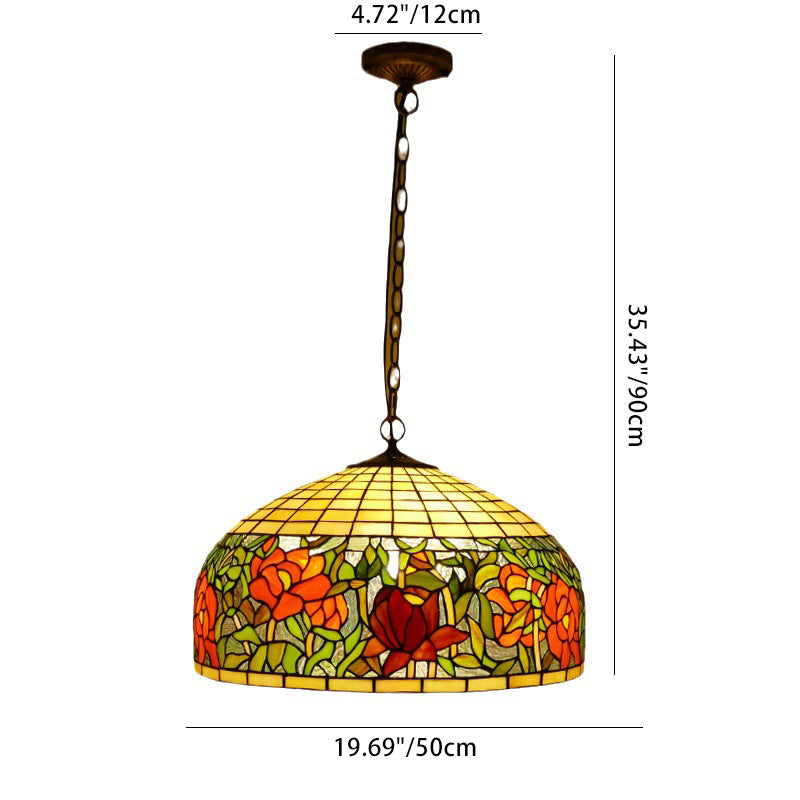 Traditional Tiffany Flower Round Cone Metal Stained Glass 3-Light Pendant Light For Bedroom