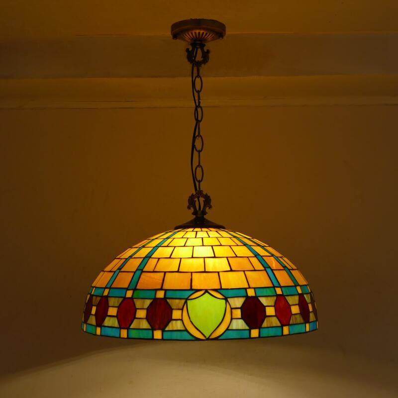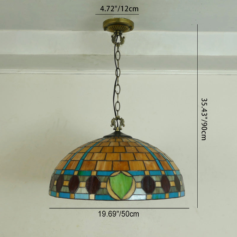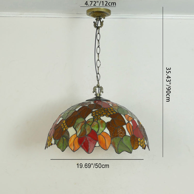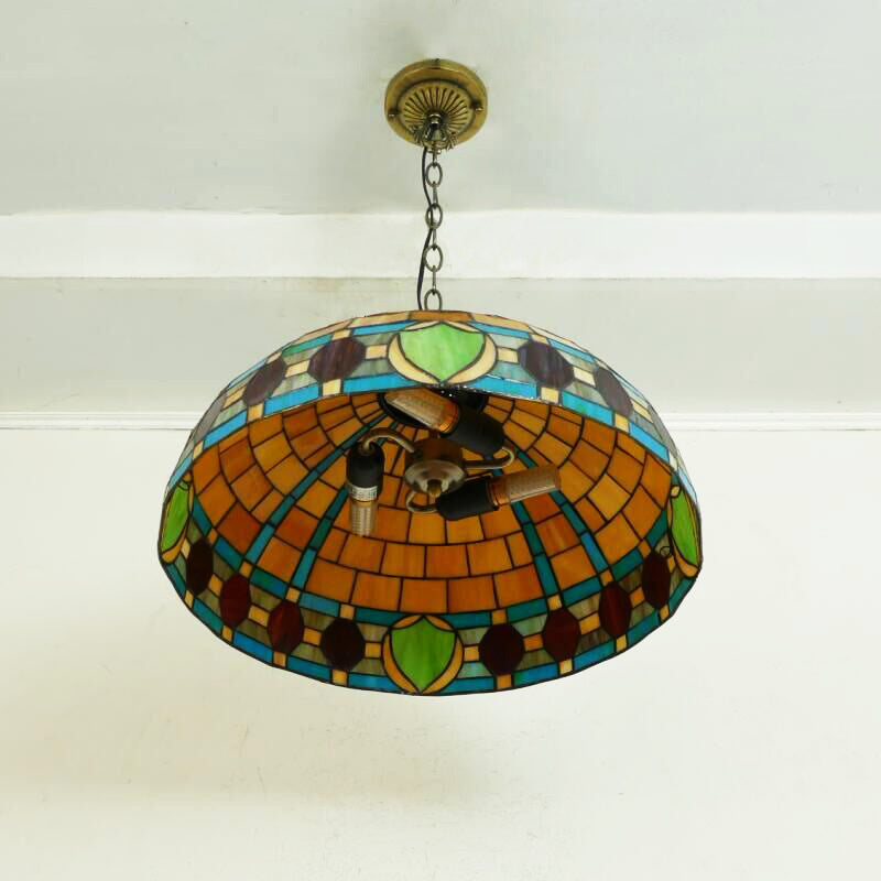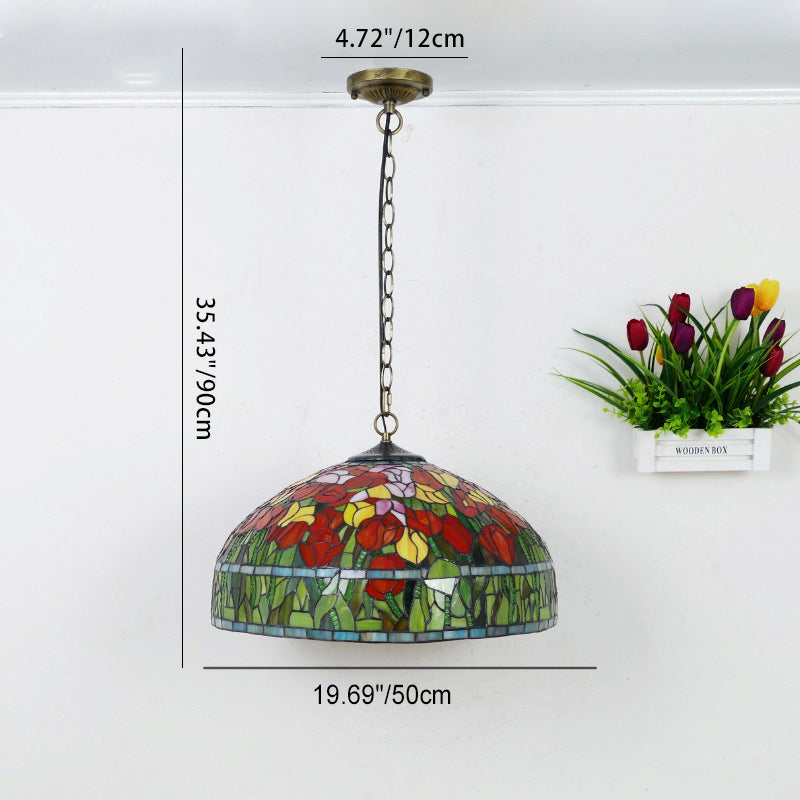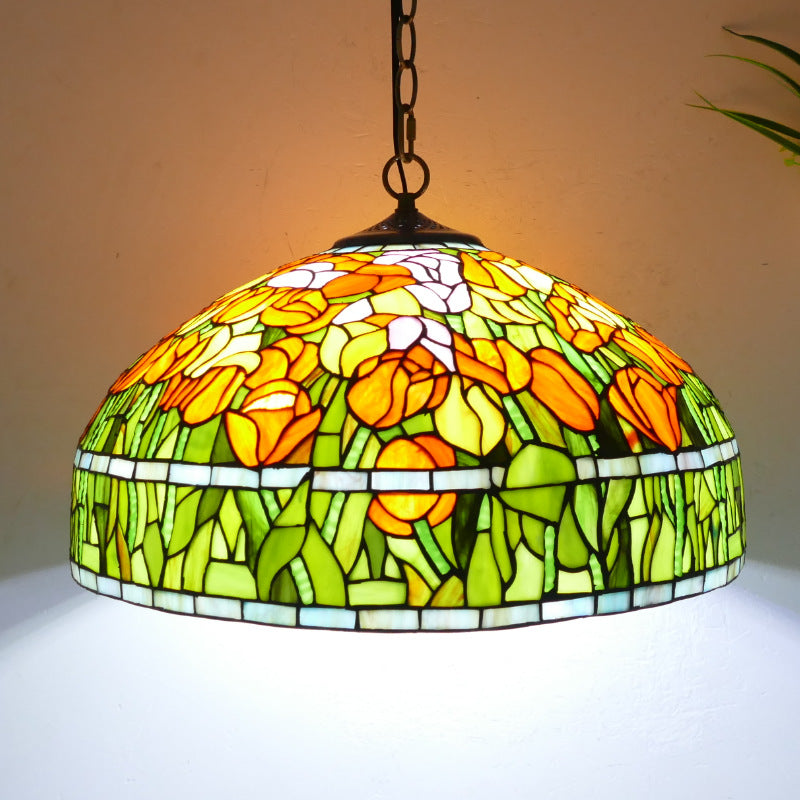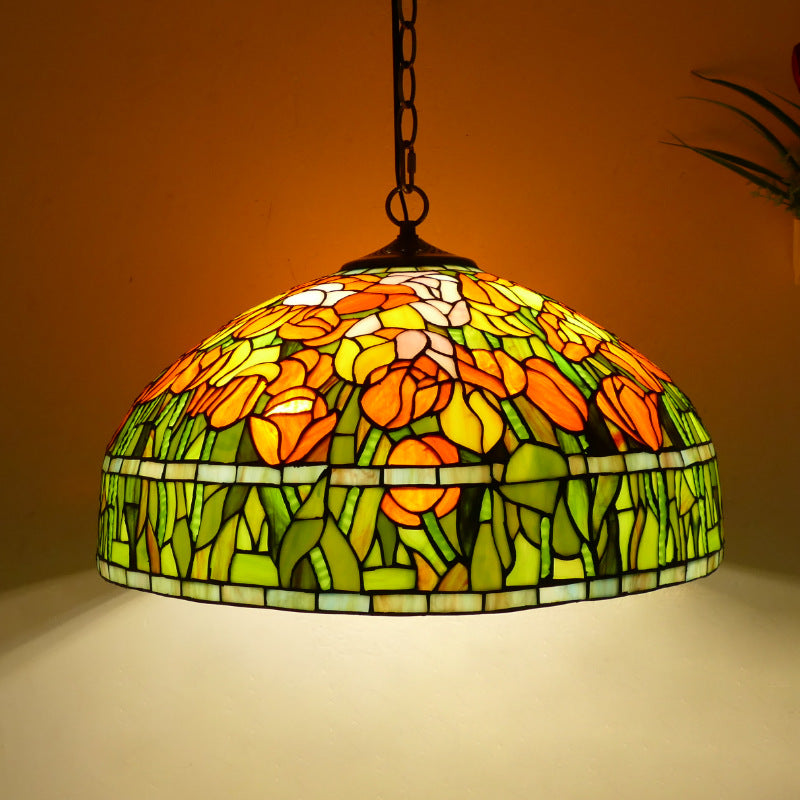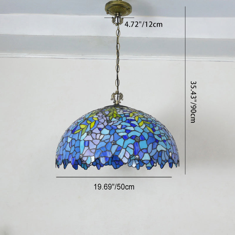Traditional Tiffany Flower Round Cone Metal Stained Glass 3-Light Pendant Light For Bedroom