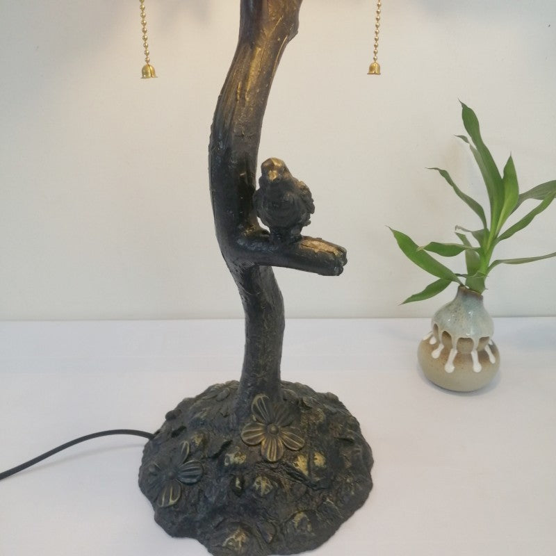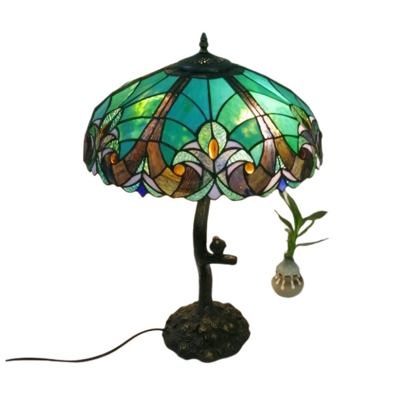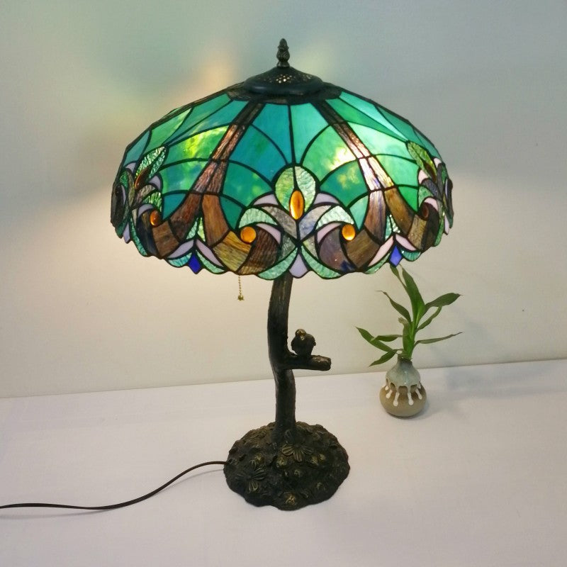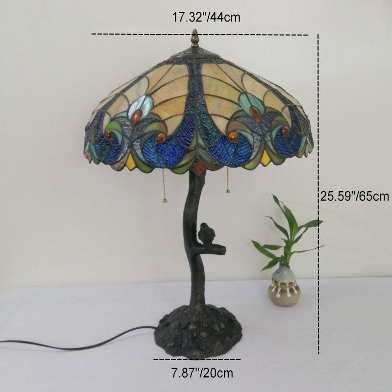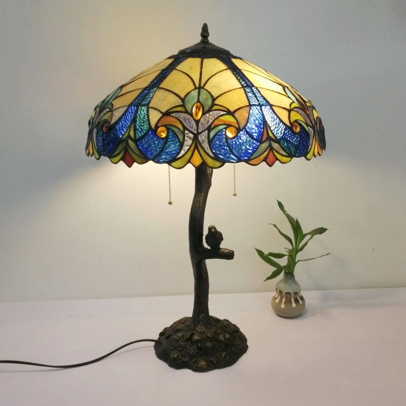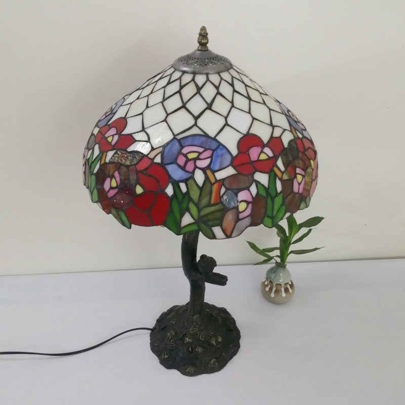 Traditional Tiffany Flower Stained Glass Resin Base 2-Light Table Lamp For Living Room