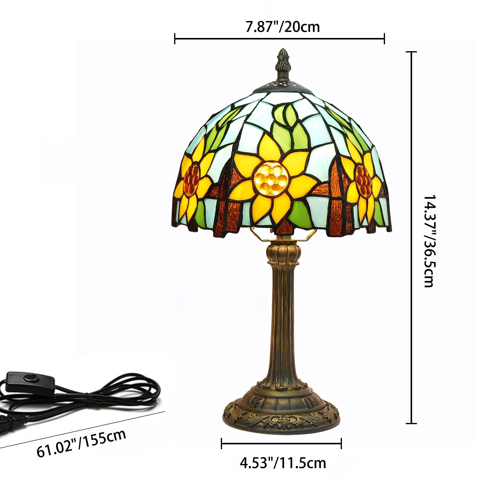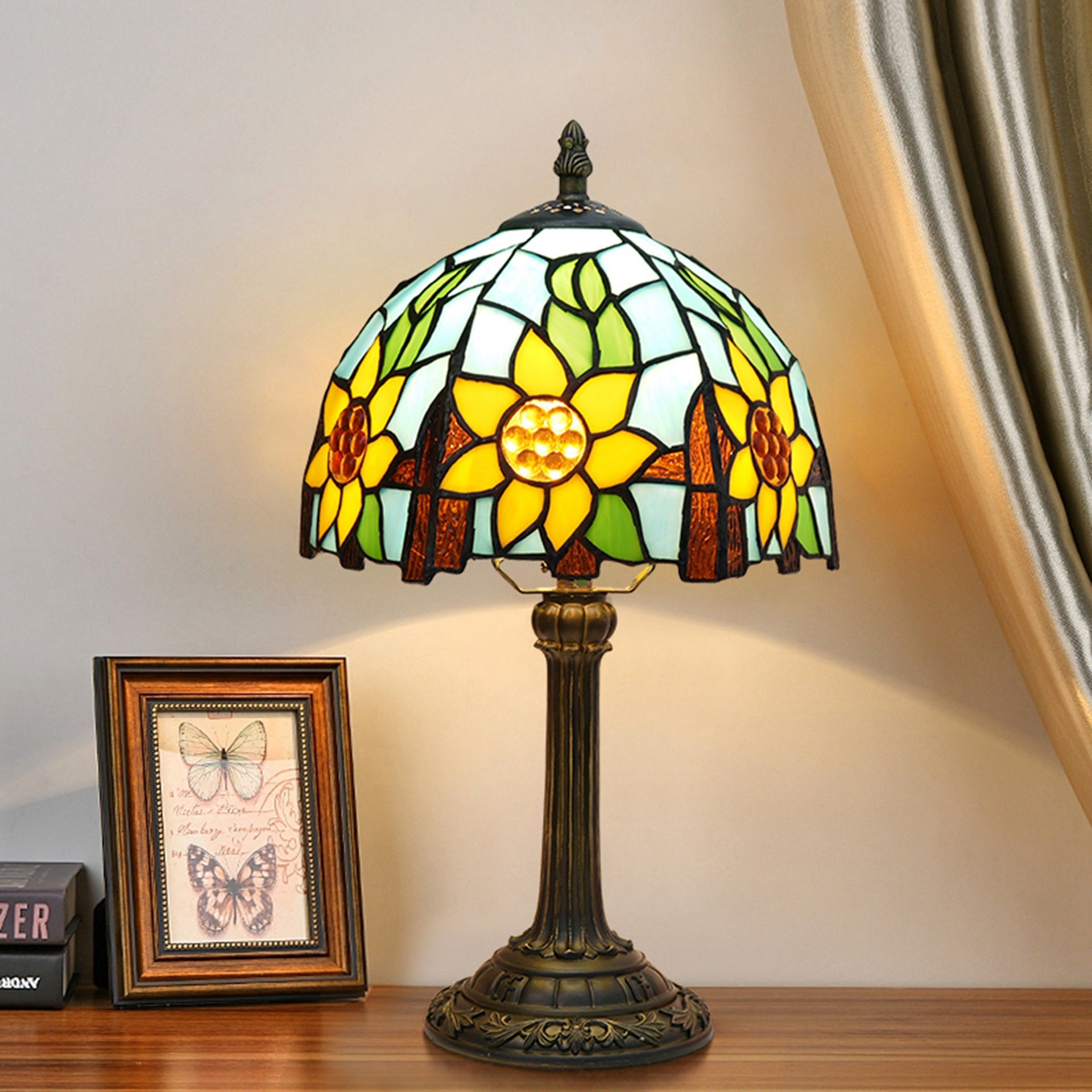 Traditional Tiffany Resin Glass Dome Sunflower 1-Light Table Lamp For Bedside