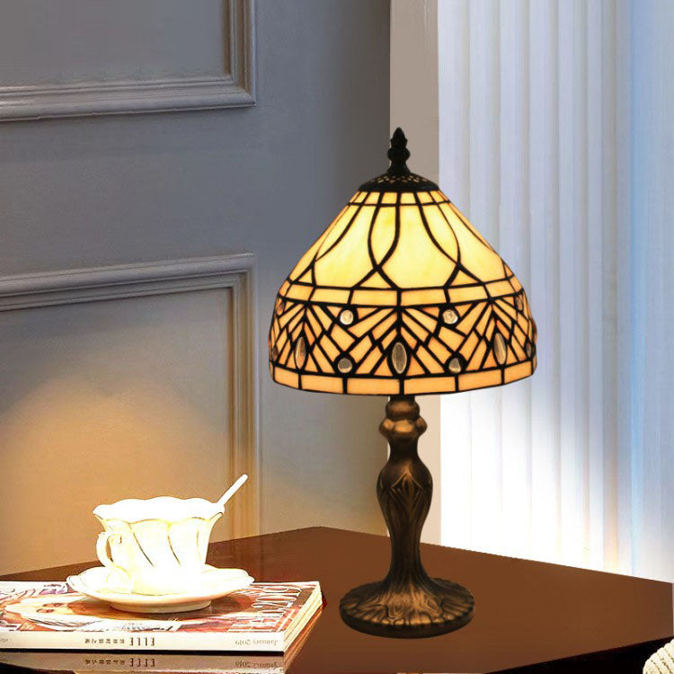 Traditional Tiffany Resin Glass Umbrella Shape 1-Light Table Lamp For Bedroom