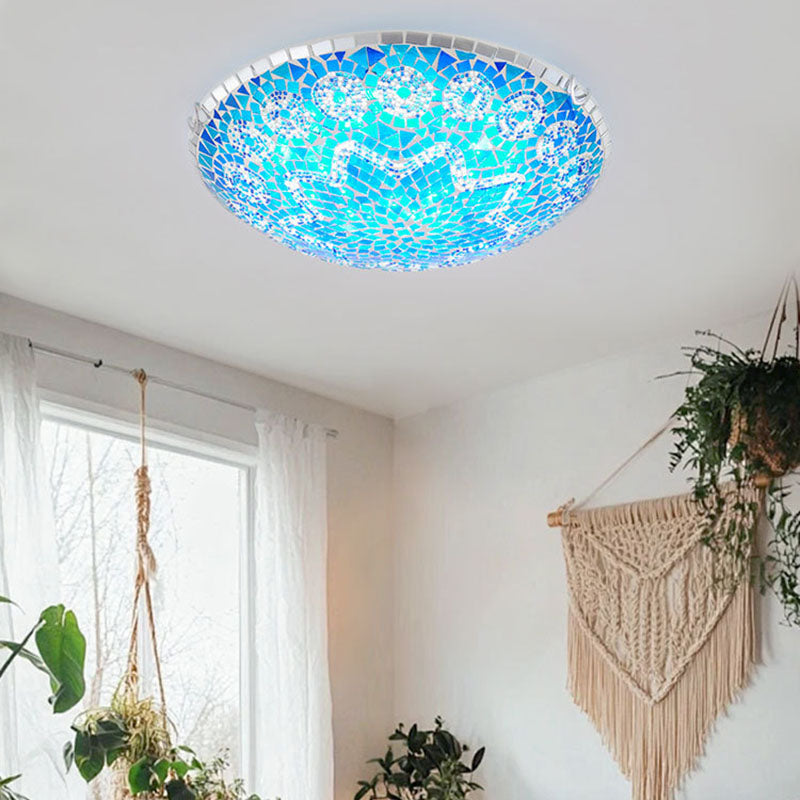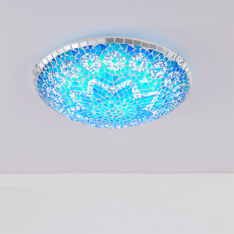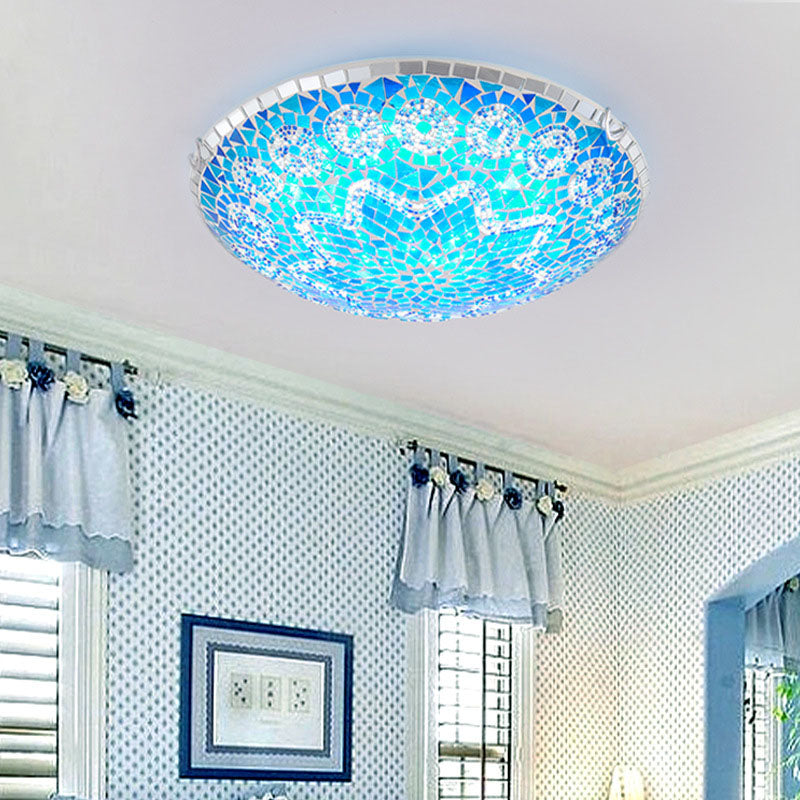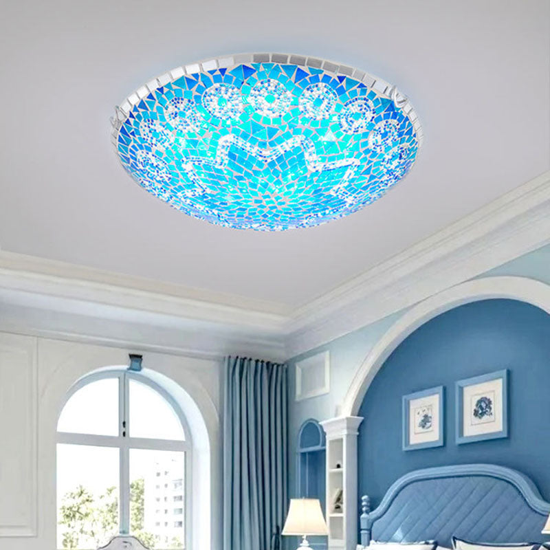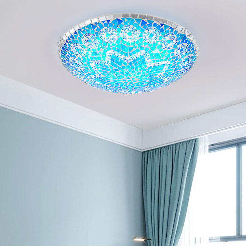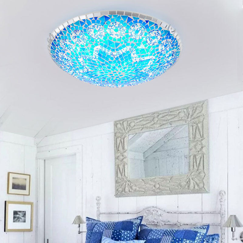 Traditional Tiffany Round Arched Hardware Glass 2/3/4-Light Flush Mount Ceiling Light For Bedroom