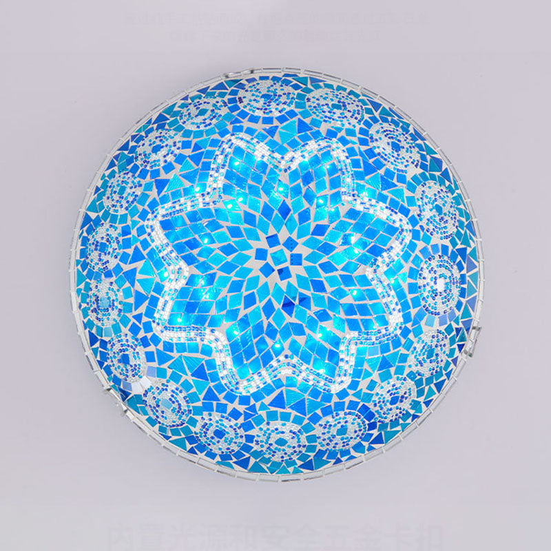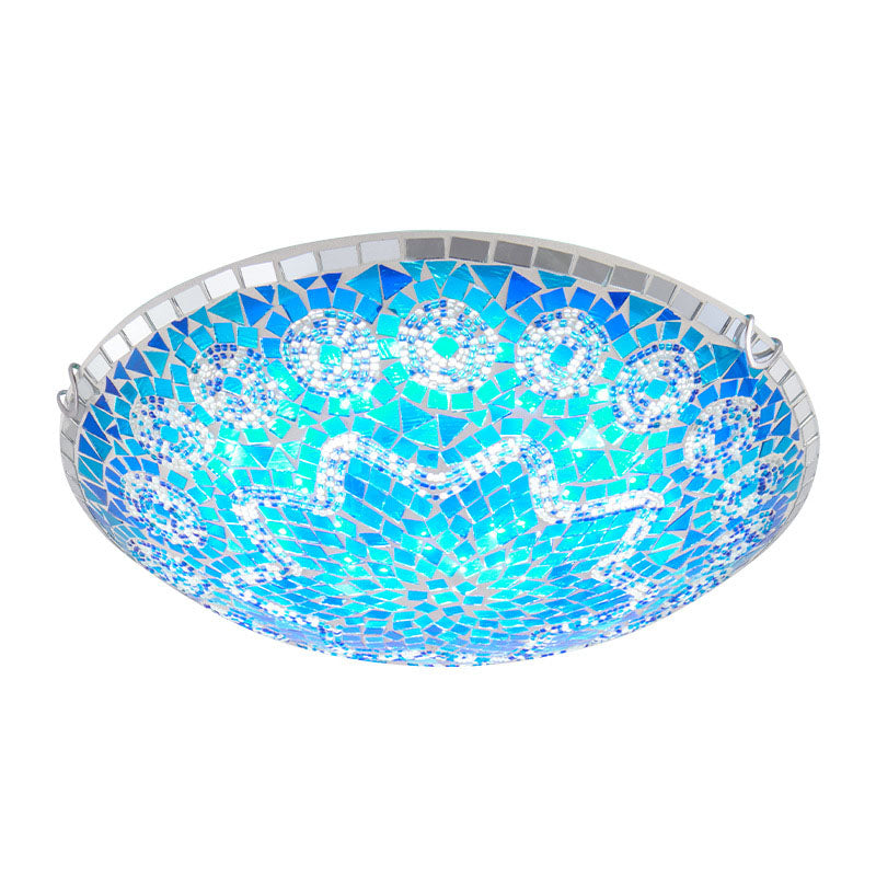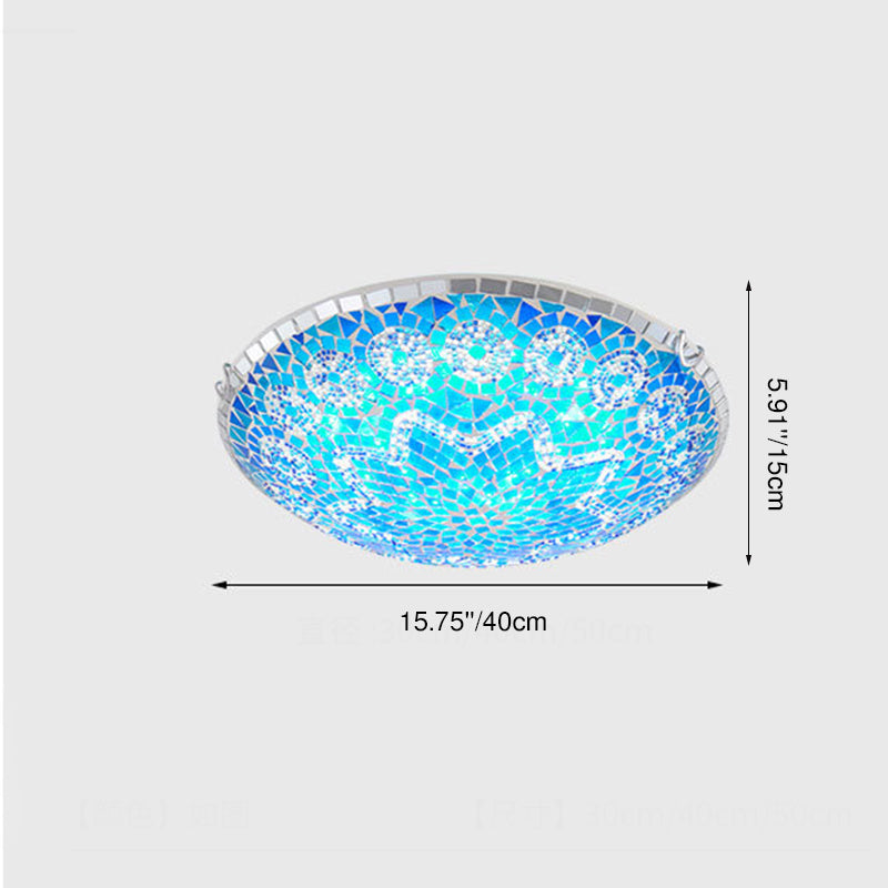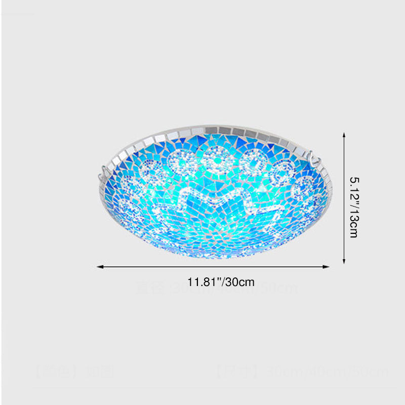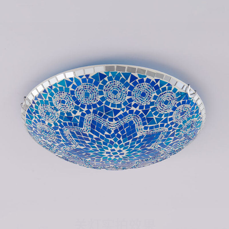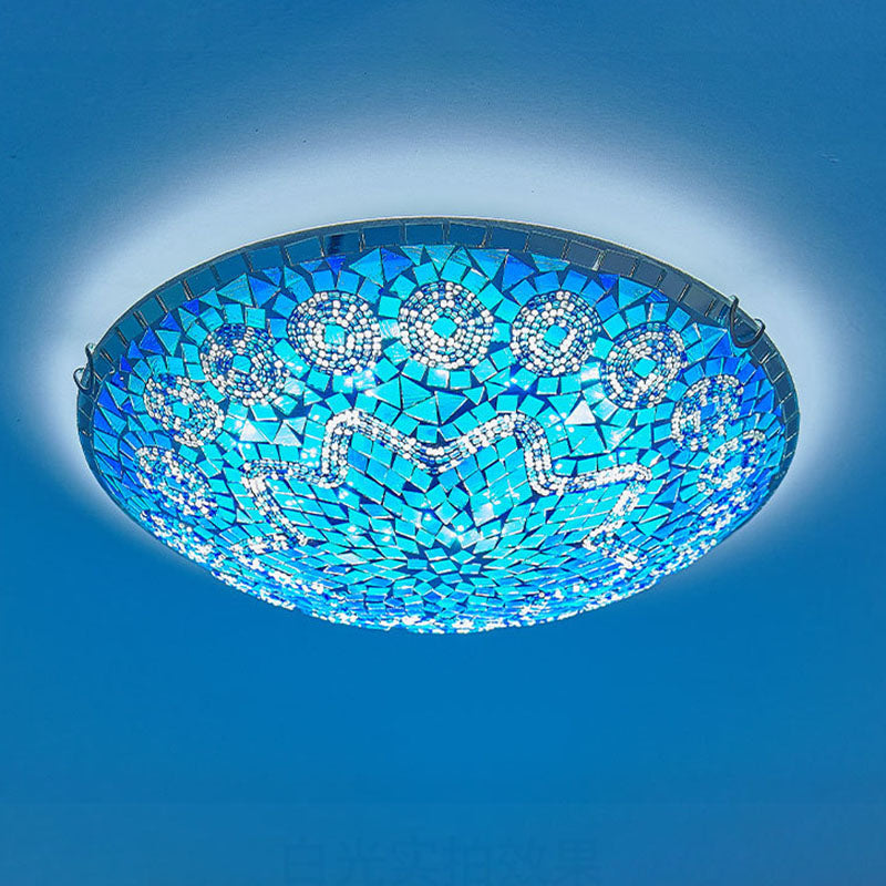 Traditional Tiffany Round Arched Hardware Glass 2/3/4-Light Flush Mount Ceiling Light For Bedroom