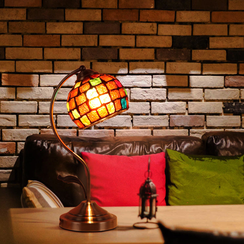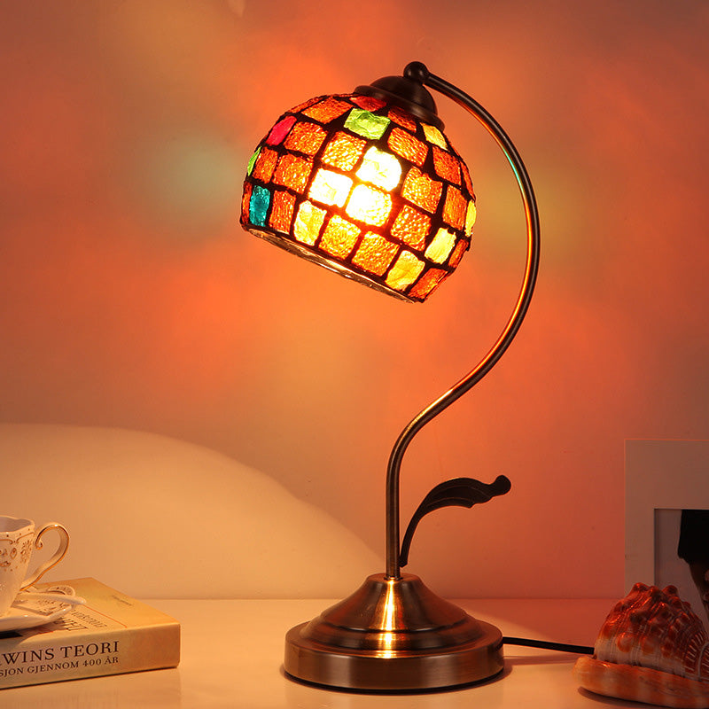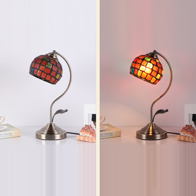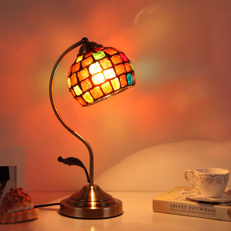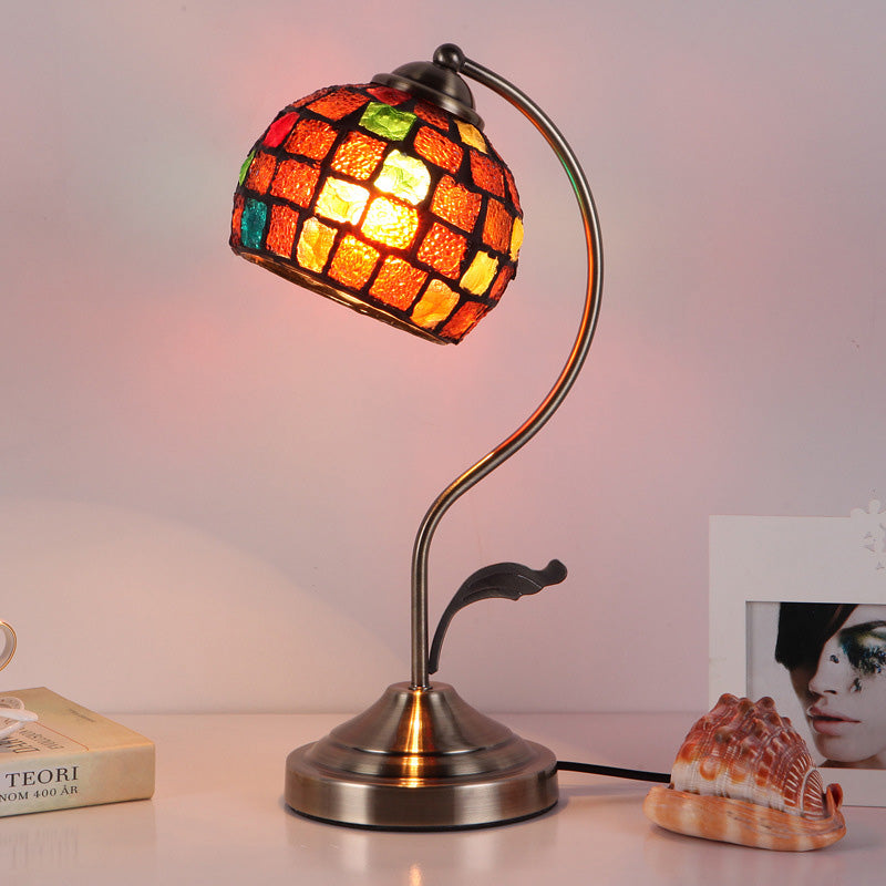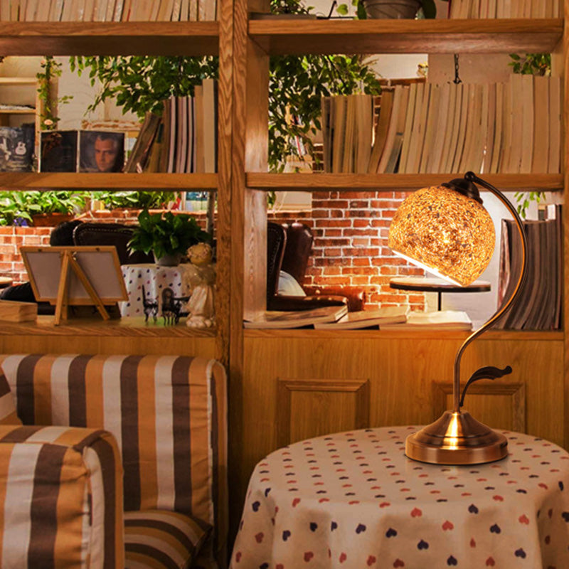 Traditional Tiffany Round Spherical Glass Hardware 1-Light Table Lamp For Living Room