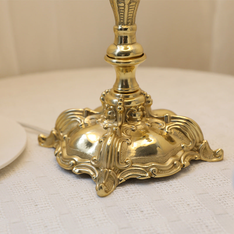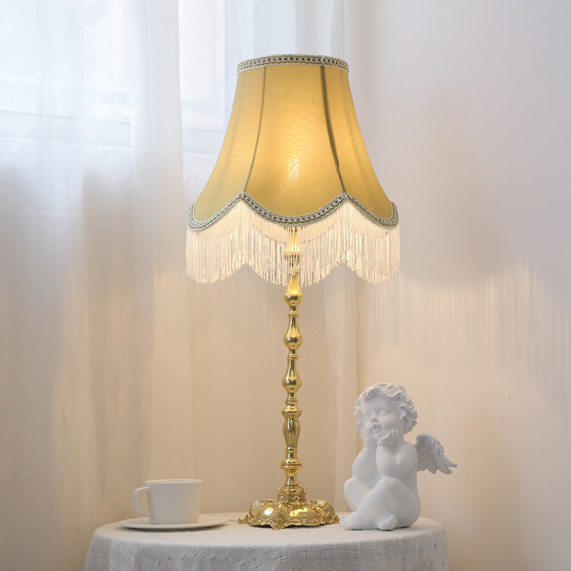 Traditional Vintage Copper Fabric Cylinder Fringed Trapezoid 1-Light Table Lamp For Bedroom