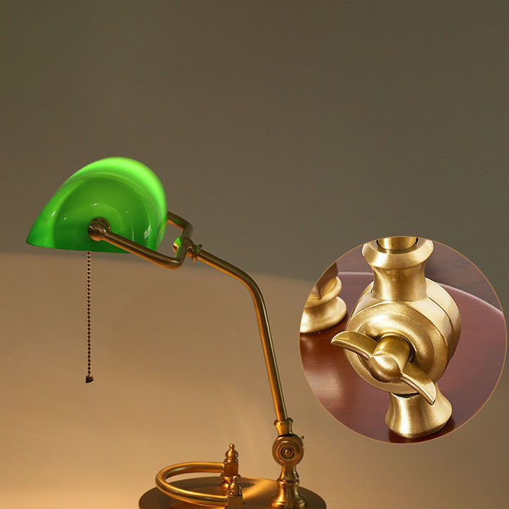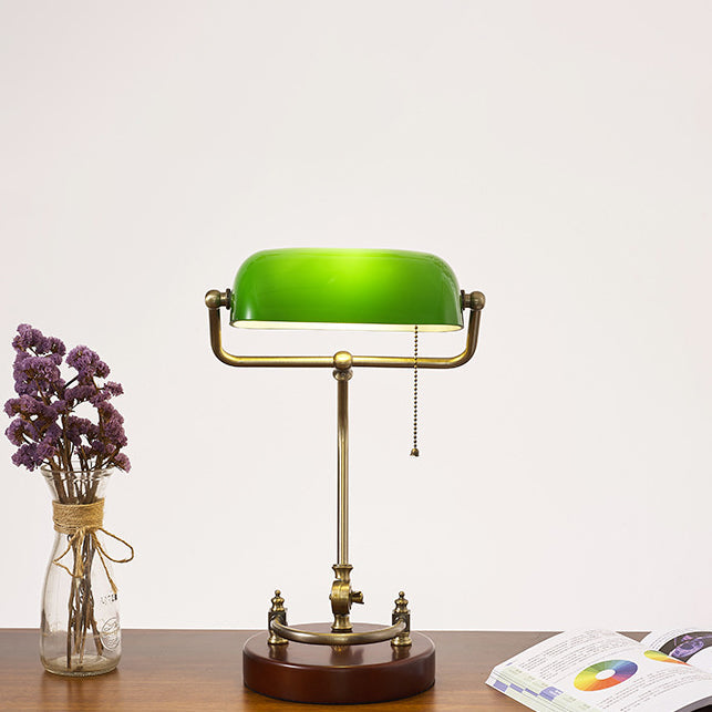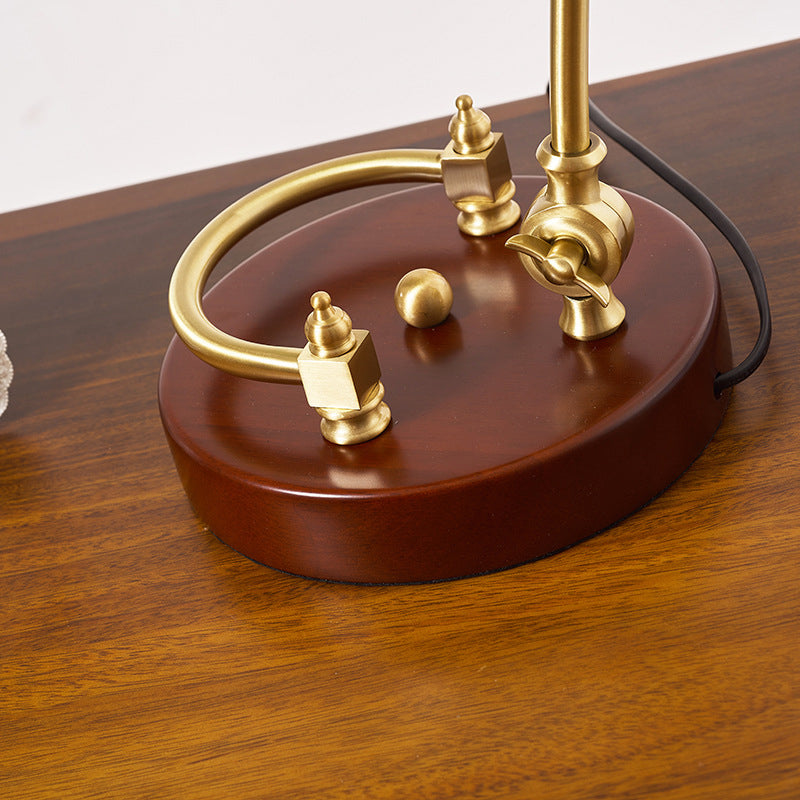 Traditional Vintage Curved Glass Solid Wood Base 1-Light Table Lamp For Study
