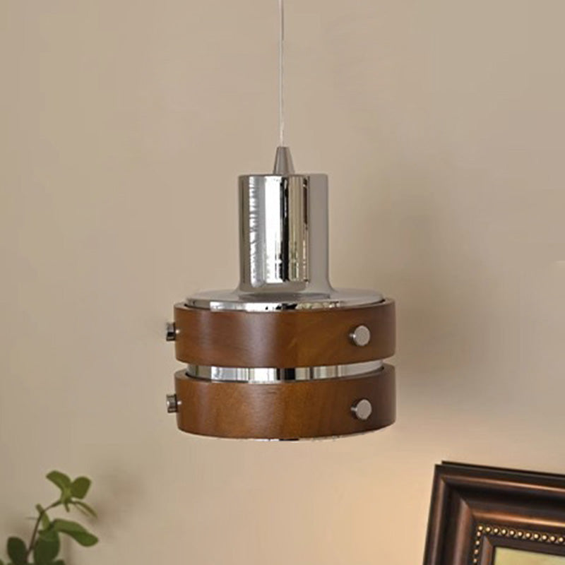 Traditional Vintage Cylinder Iron Wooden 1-Light Pendant Light For Bedroom