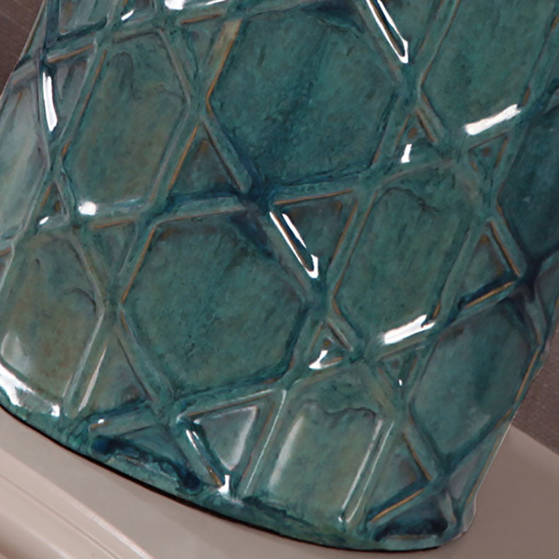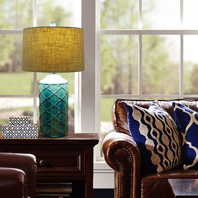 Traditional Vintage Cylinder Stripe Base Ceramic Fabric 1-Light Table Lamp For Bedroom