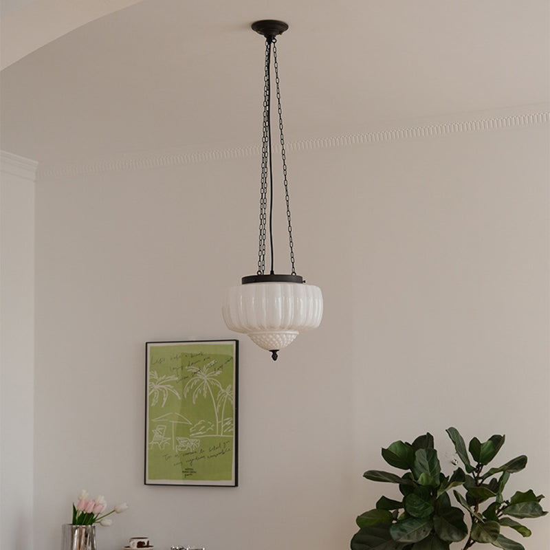 Traditional Vintage Diamond Pumpkin Striped Disc Base Iron Glass 4-Light Pendant Light For Living Room
