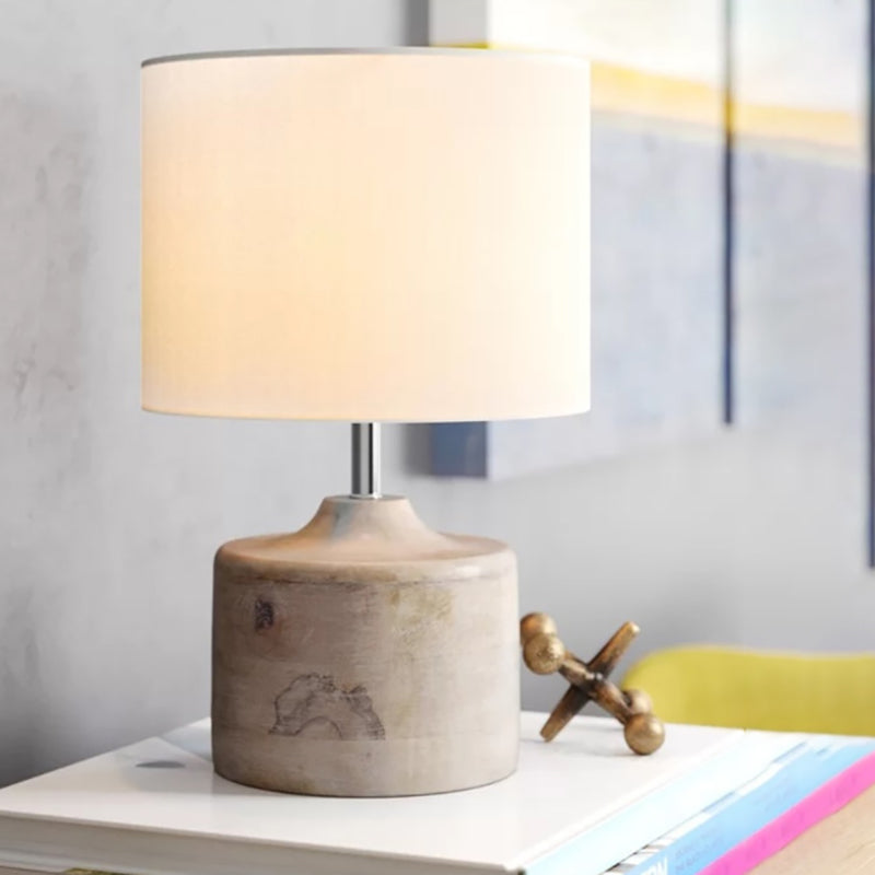 Traditional Vintage Fabric Cylinder Shade Solid Wood Base 1-Light Table Lamp For Bedroom