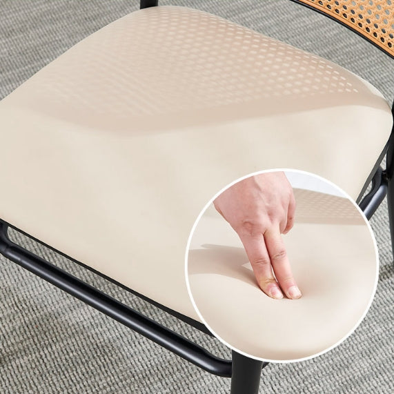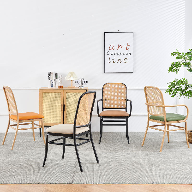 Traditional Vintage PE Imitation Rattan Nappa Leather Upholstered Dining Chair Backrest Armrest For Dining Room