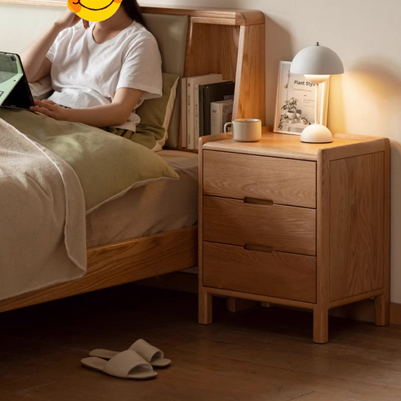 Traditional Vintage Rectangular Solid Wood Nightstand 3-Drawer For Bedroom