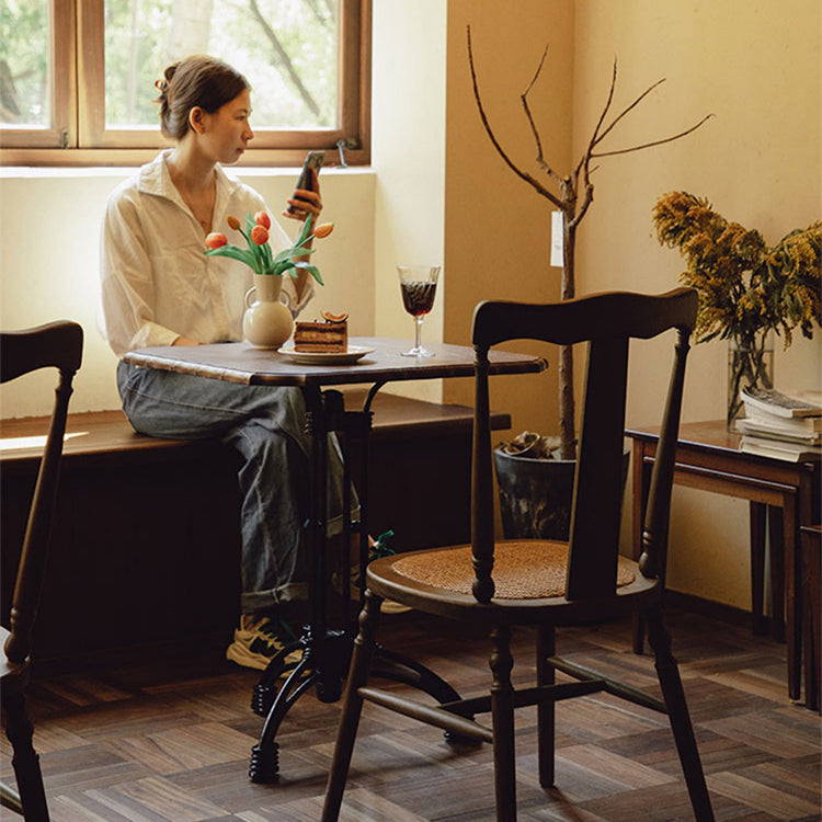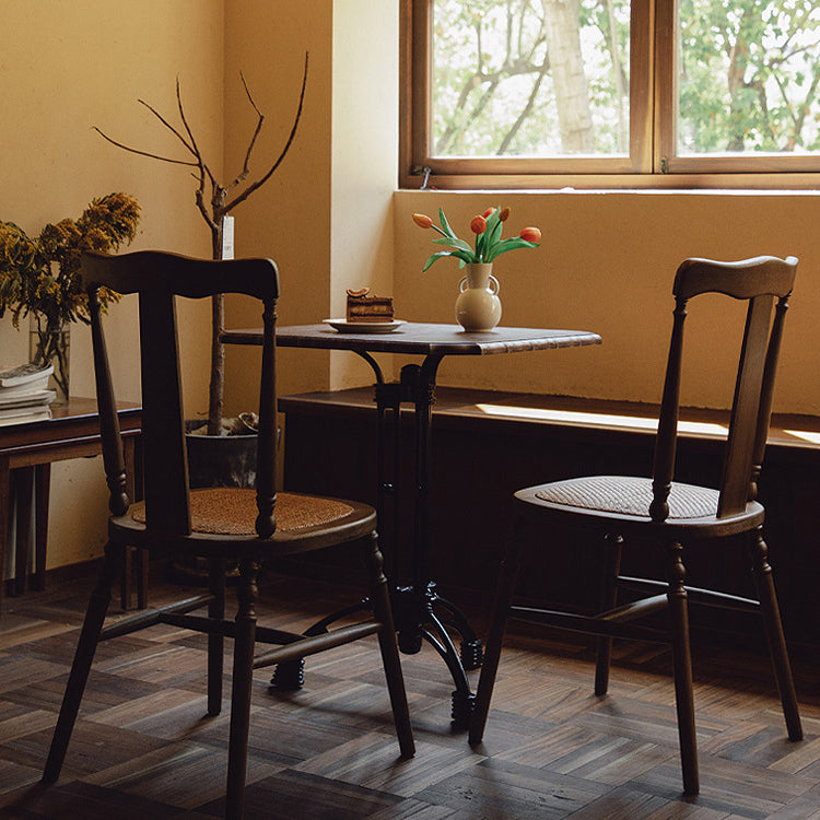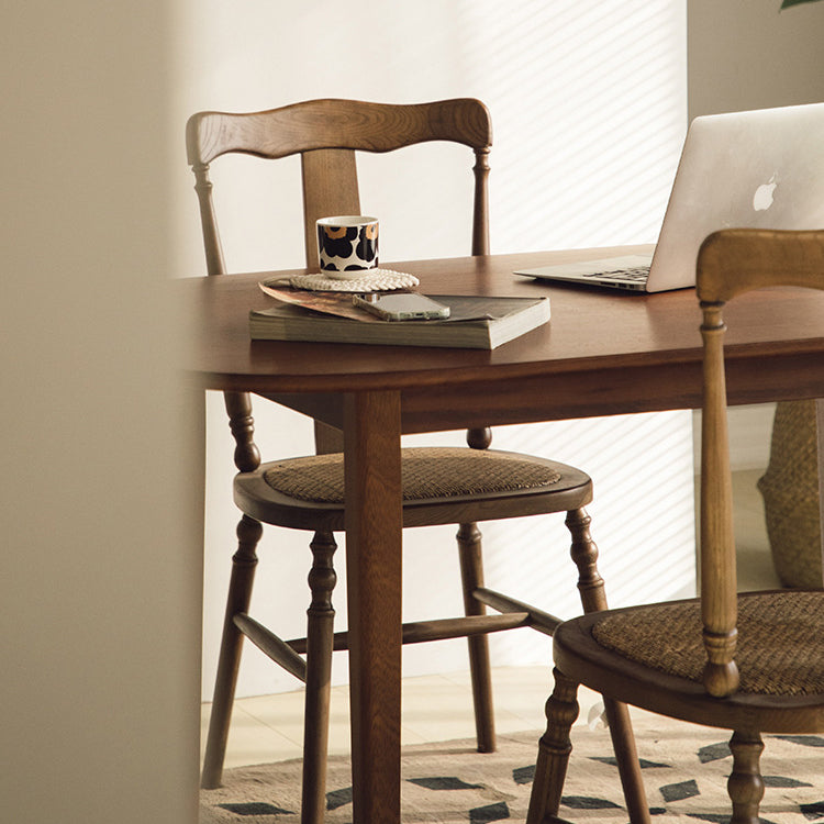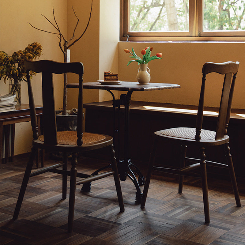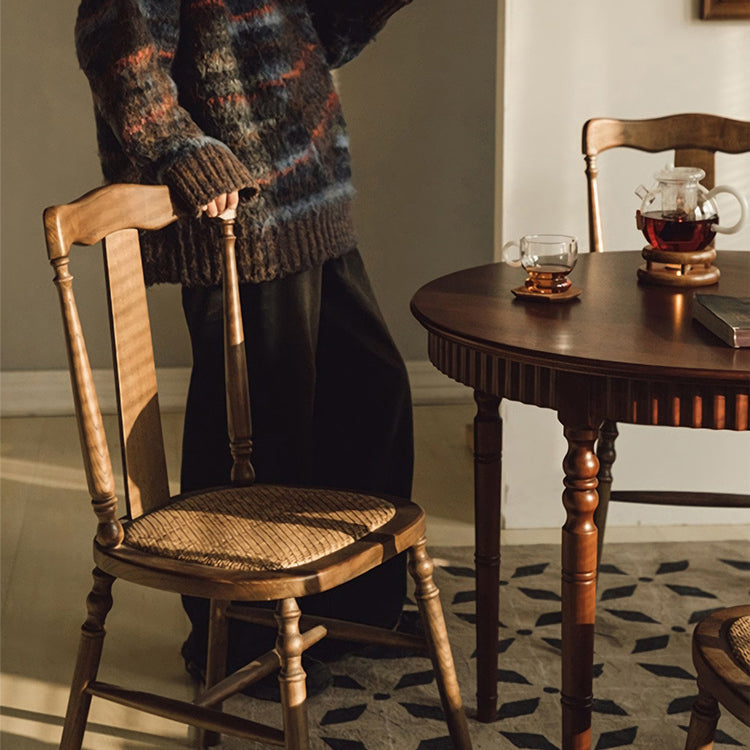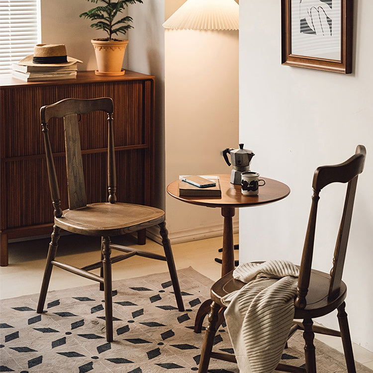 Traditional Vintage Scallop Shape Solid Wood Frame Dining Chair Slat Back Footrest For Dining Room