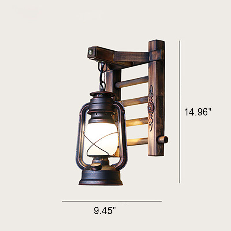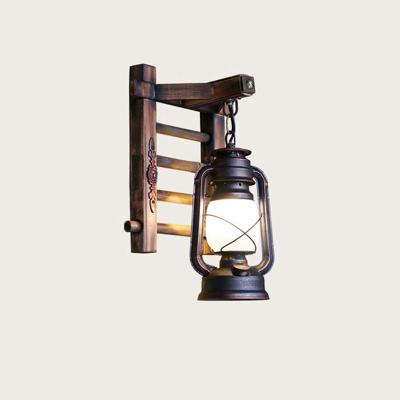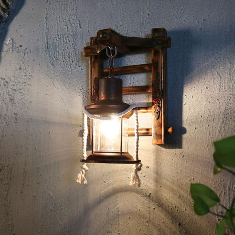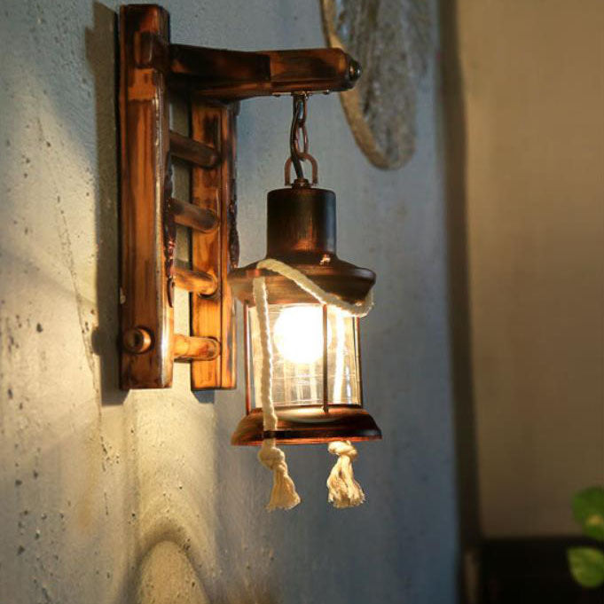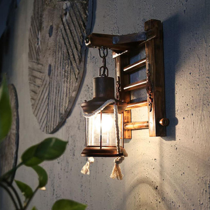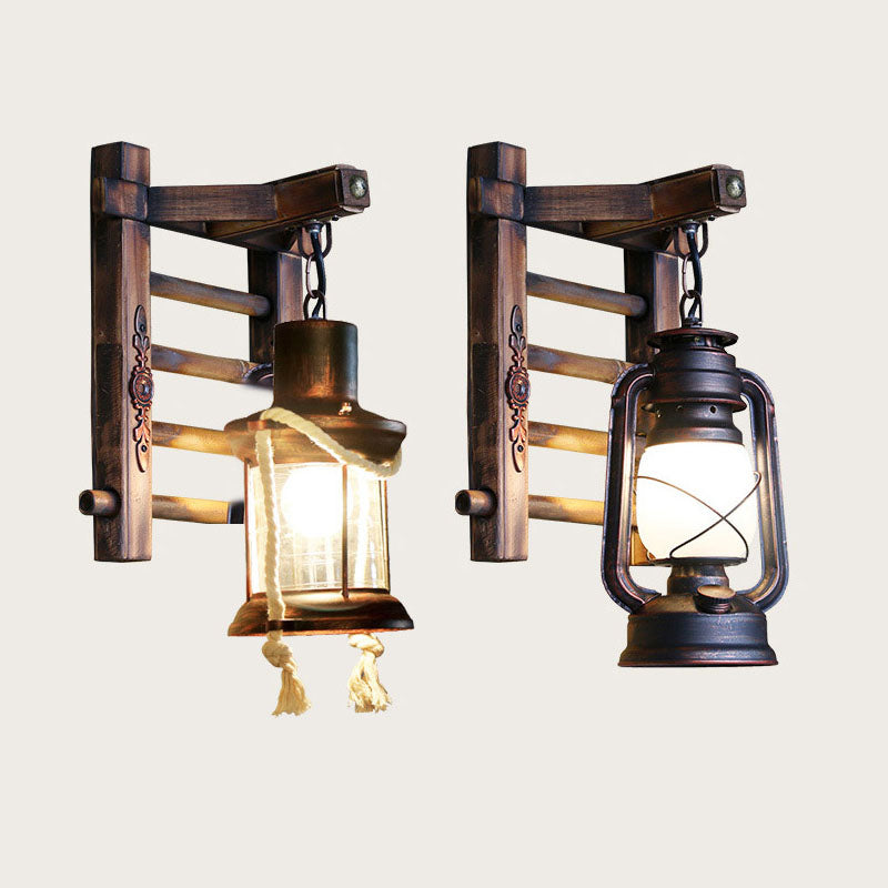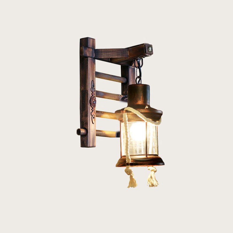 Vintage Chinese Kerosene Lamp Hemp Rope Bamboo Base 1-Light Wall Sconce Lamp