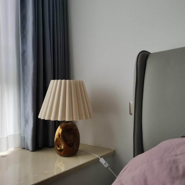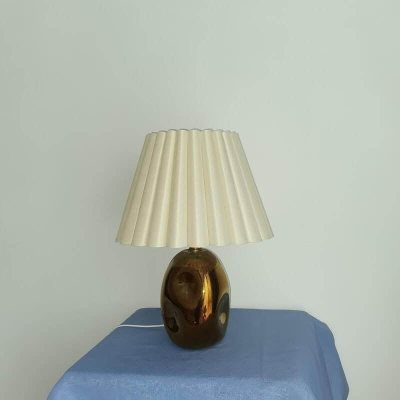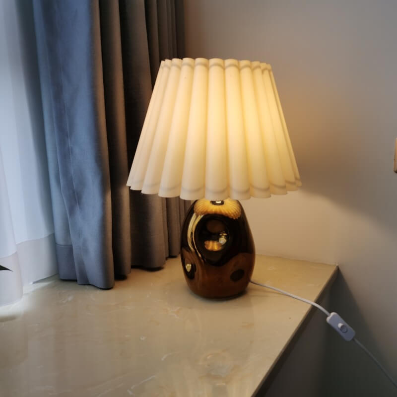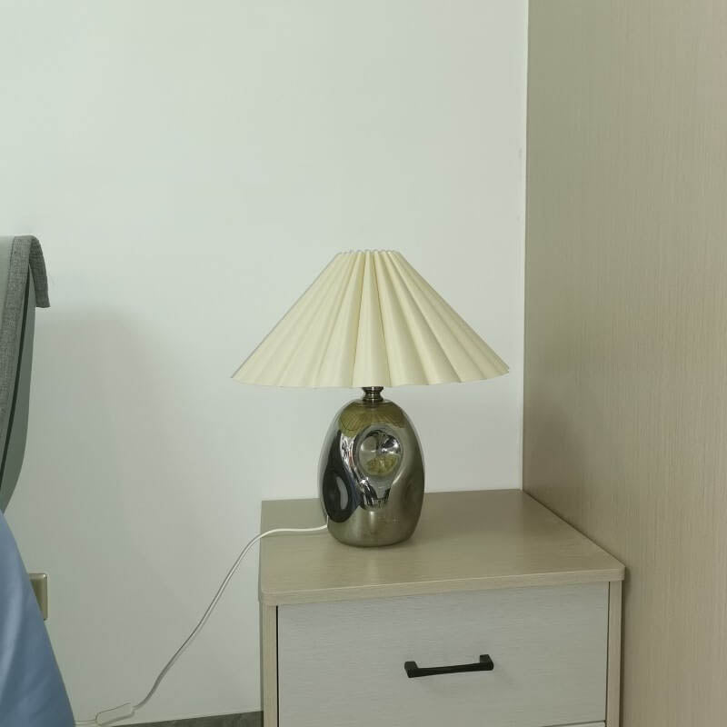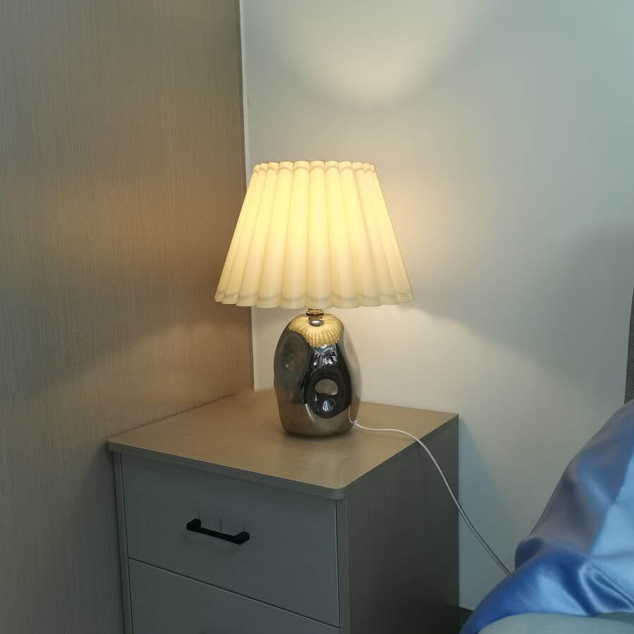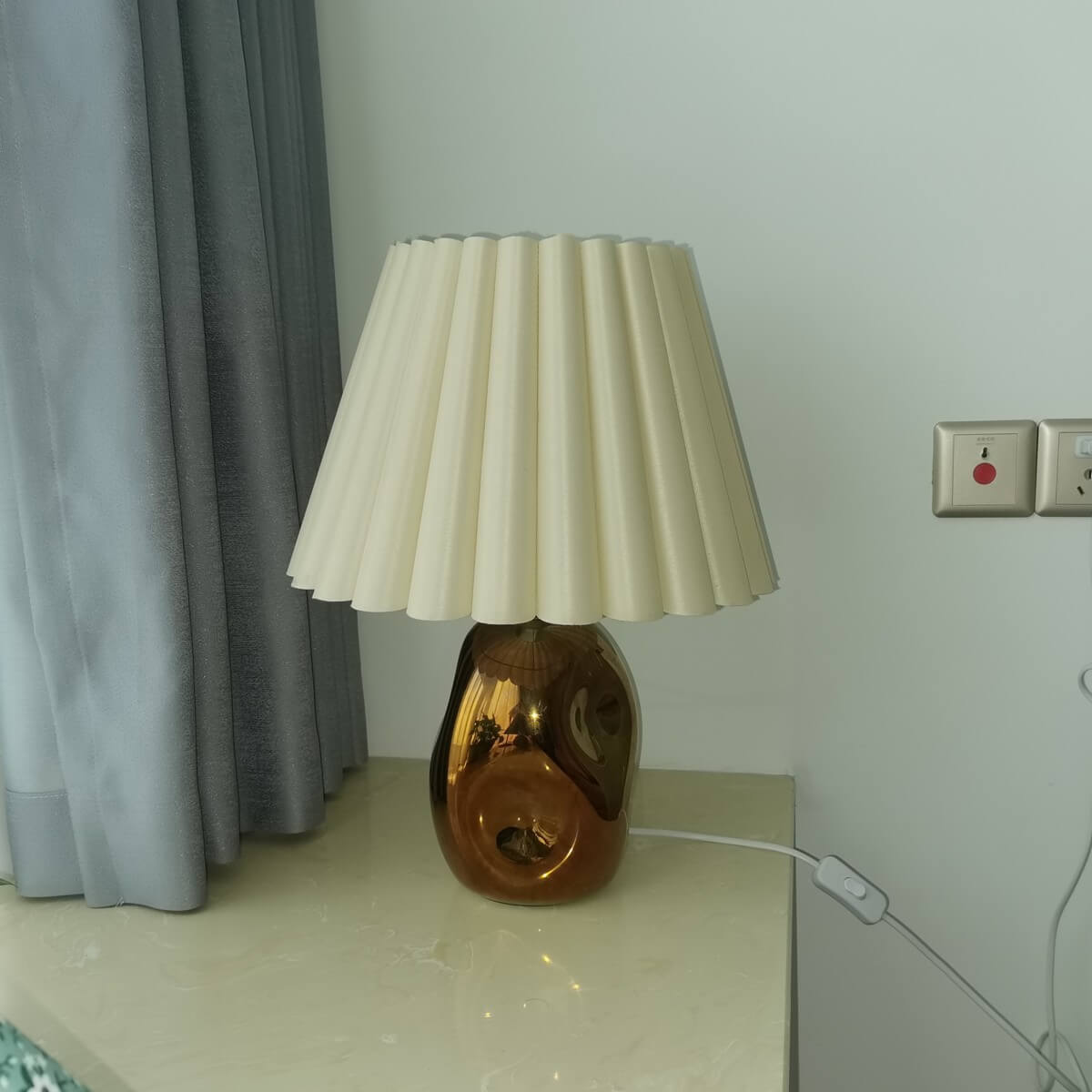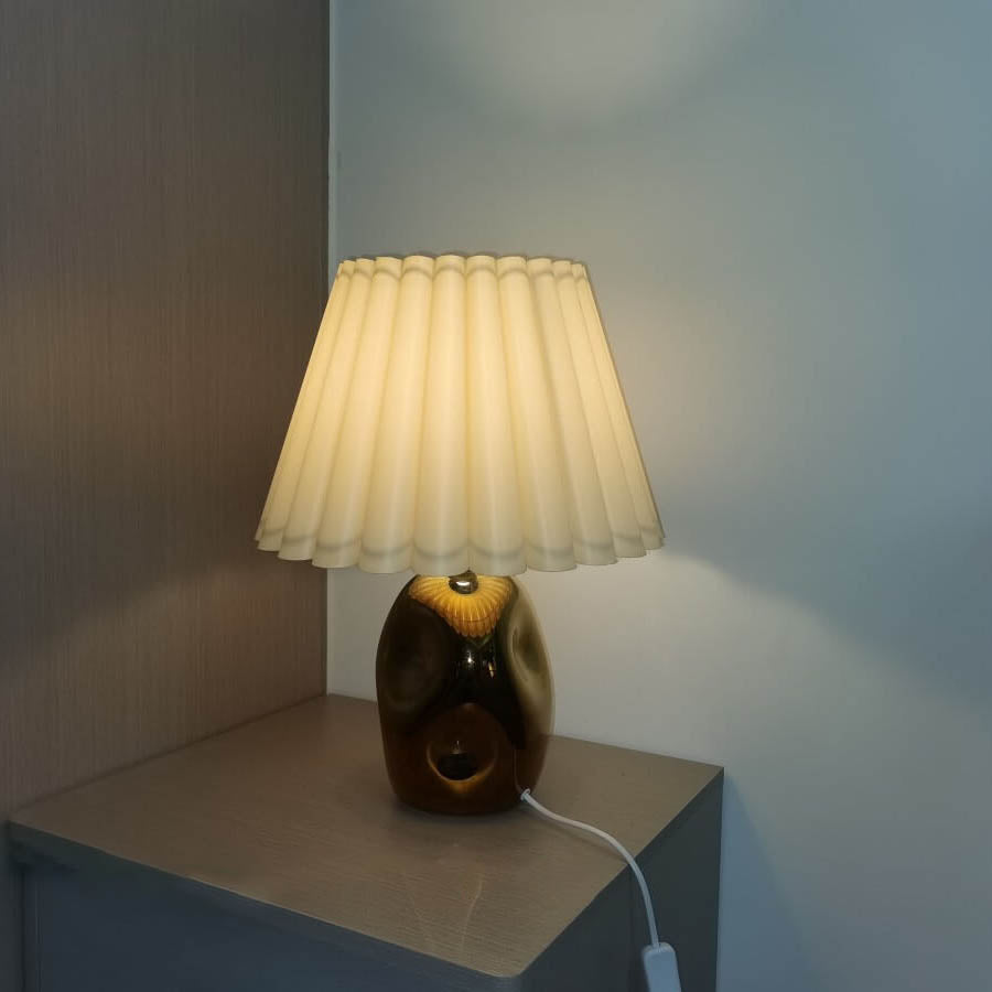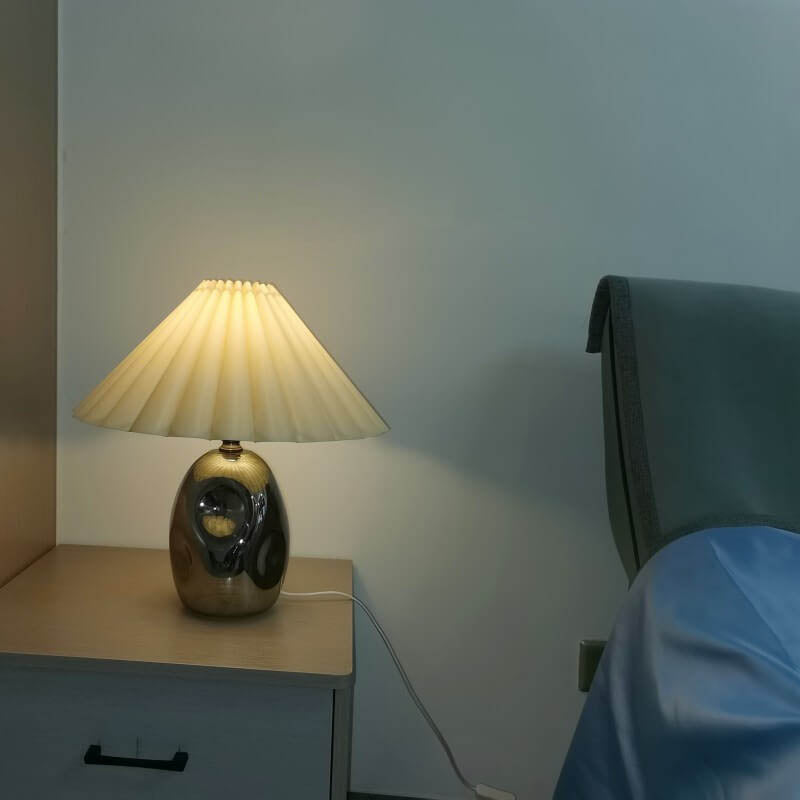 Chinese Modern Pleated Umbrella Wave Glazed Fabric PVC 1-Light Table Lamp
