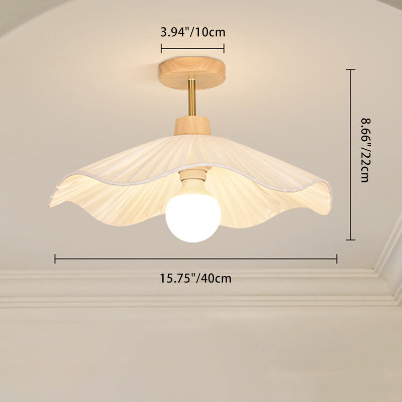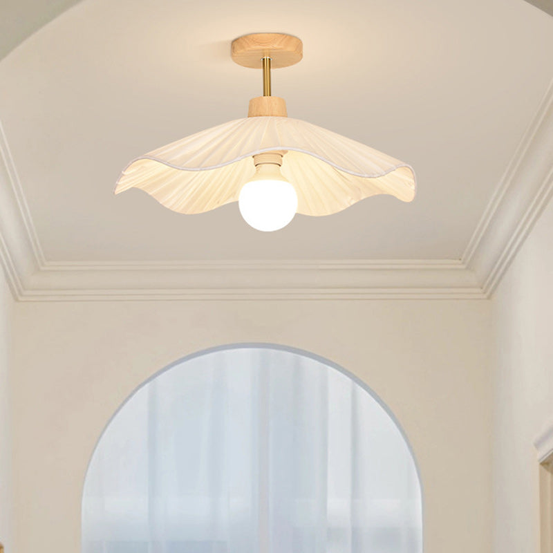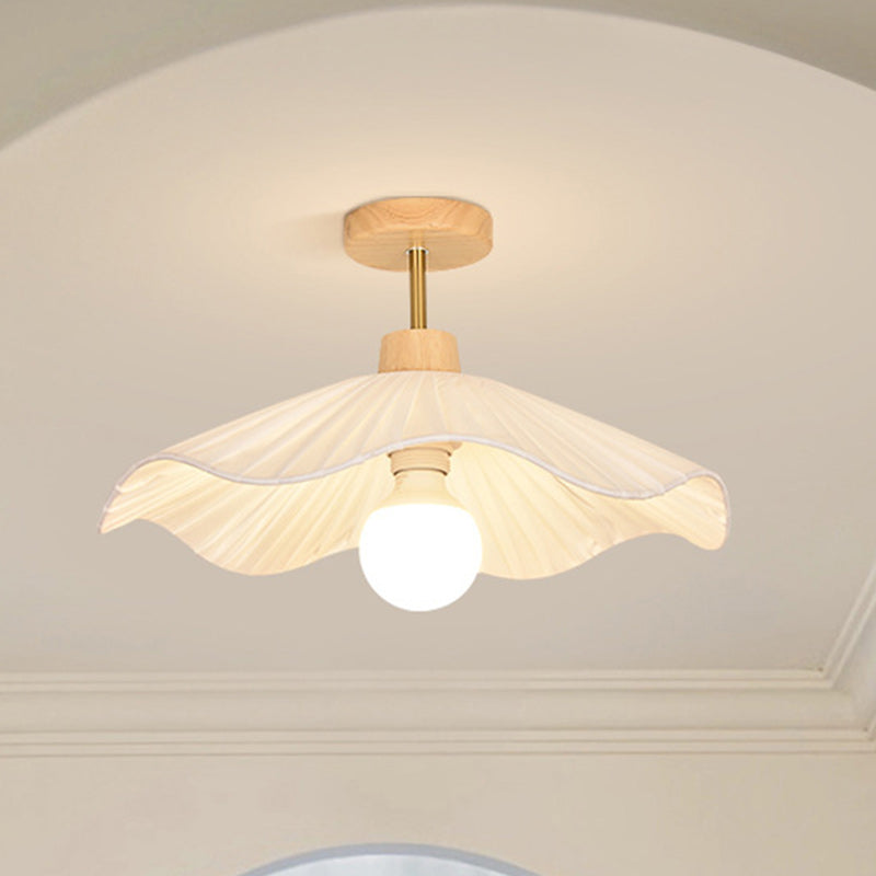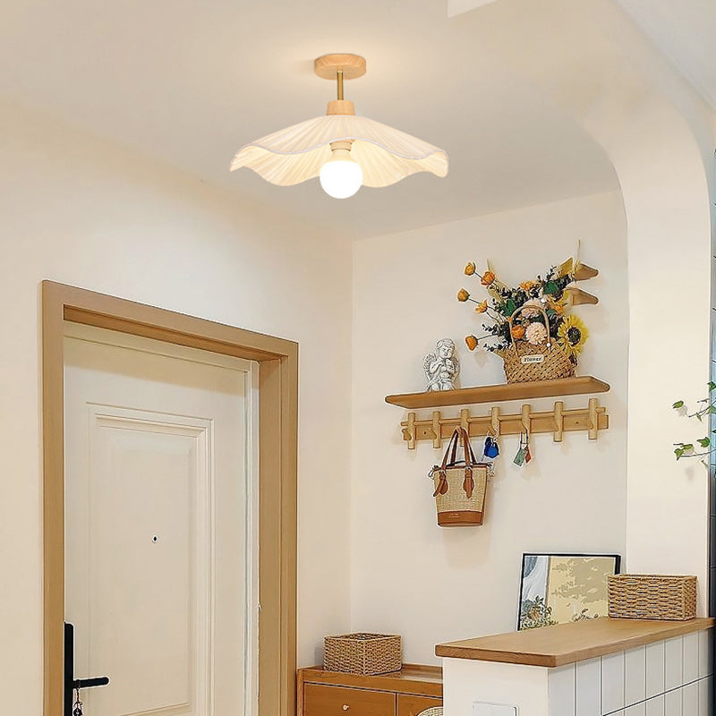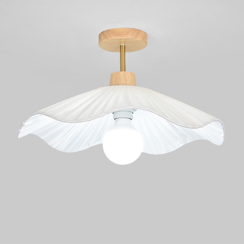 Contemporary Coastal Wave Wood Fabric 1-Light Semi-Flush Mount Ceiling Light For Living Room