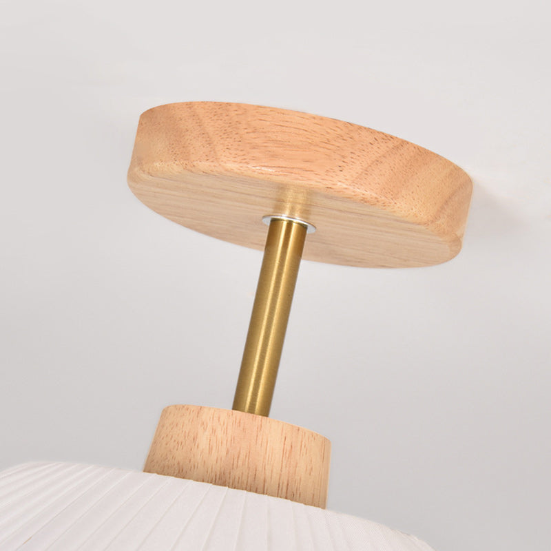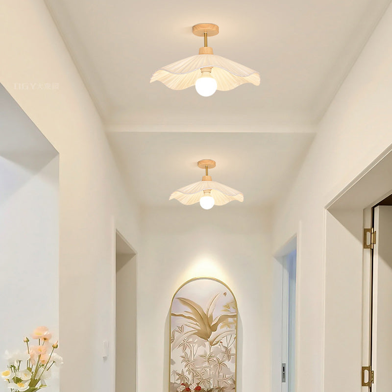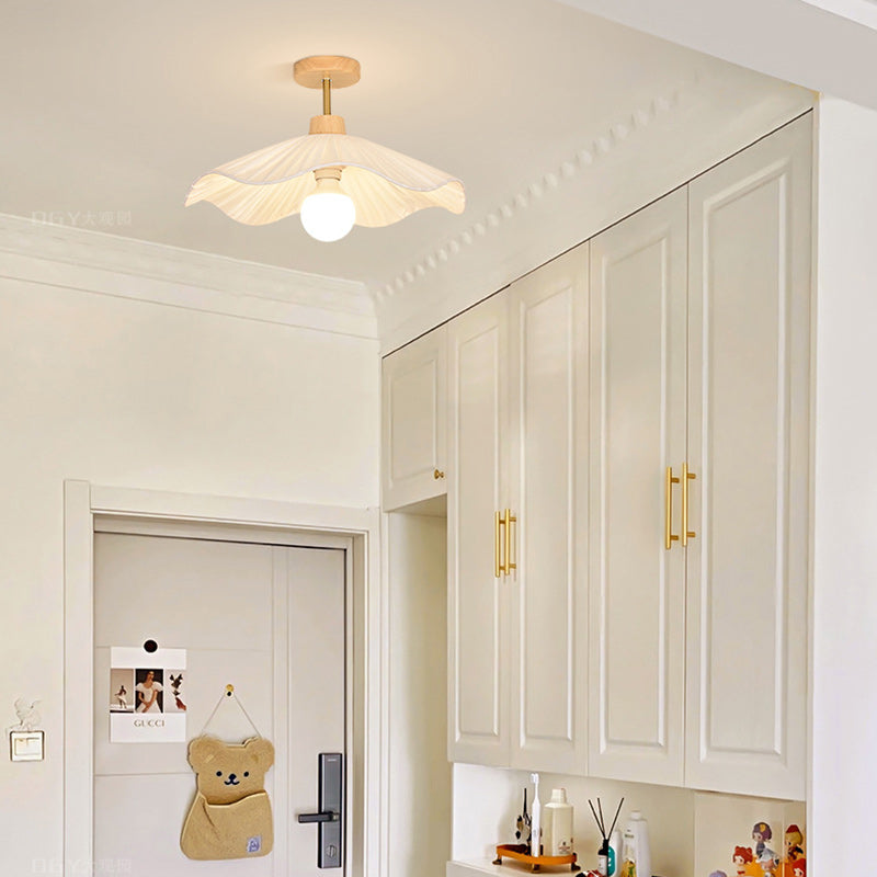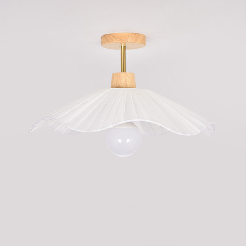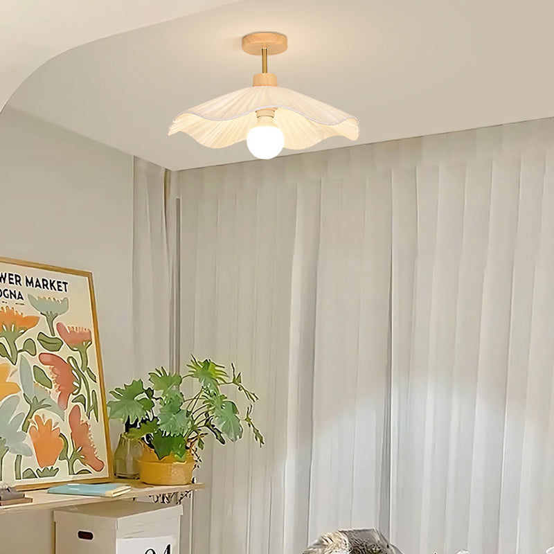Contemporary Coastal Wave Wood Fabric 1-Light Semi-Flush Mount Ceiling Light For Living Room