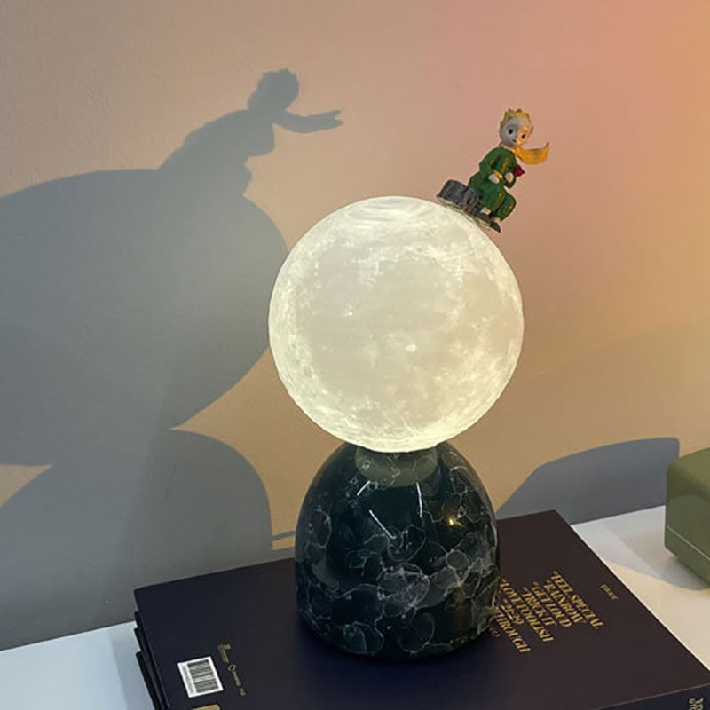 Contemporary Creative 3D Printed Moon Ceramic Base USB Table Lamp For Bedroom