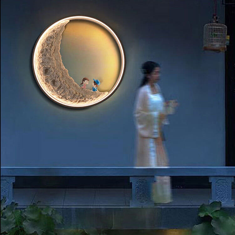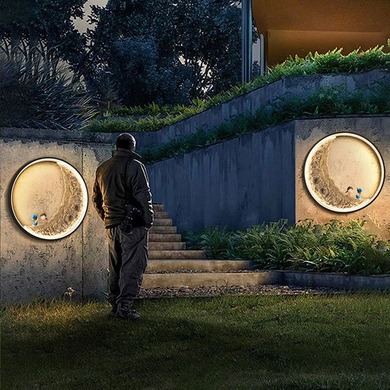 Contemporary Creative Aluminum Moon Solar LED Outdoor Wall Sconce Lamp For Outdoor Patio