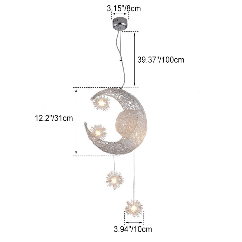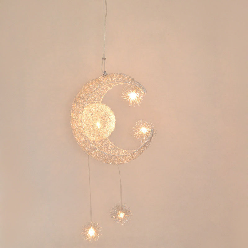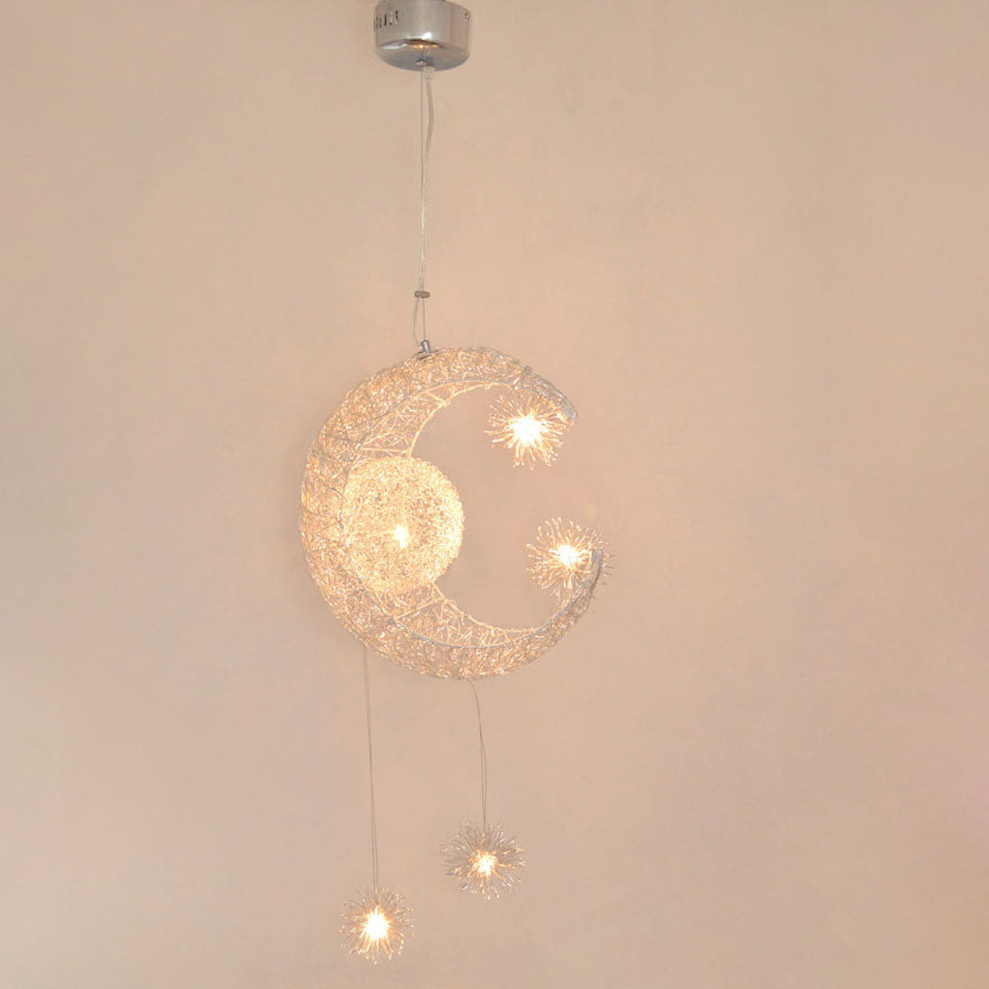 Contemporary Creative Aluminum Moon Stars Shade 5-Light Chandelier For Living Room