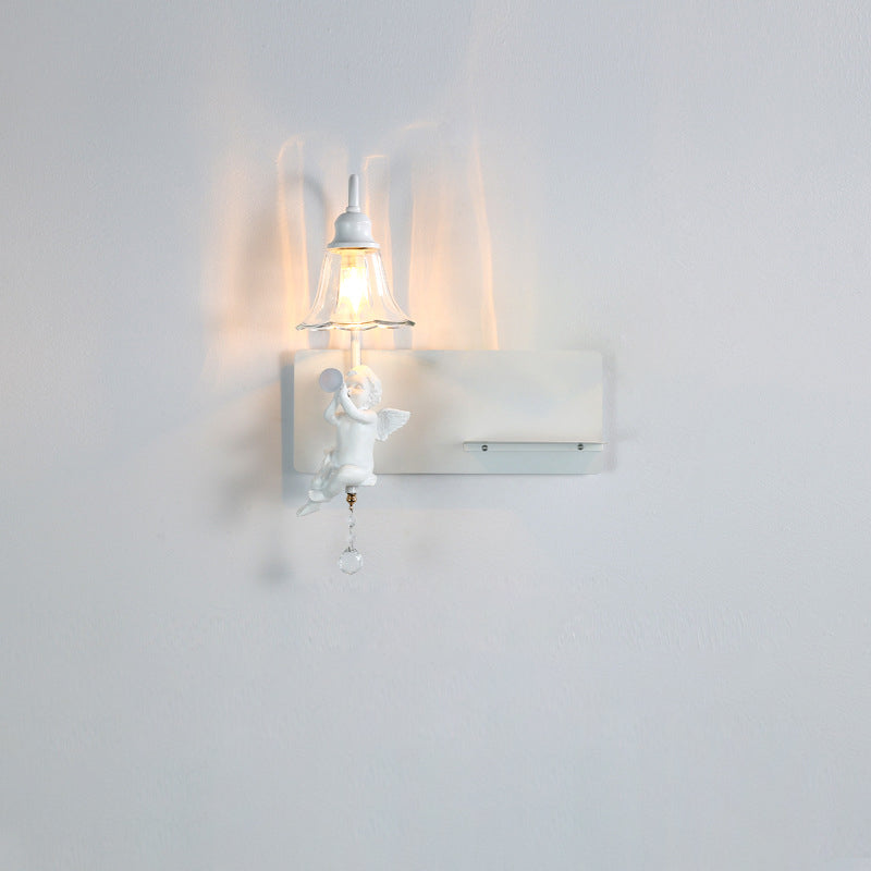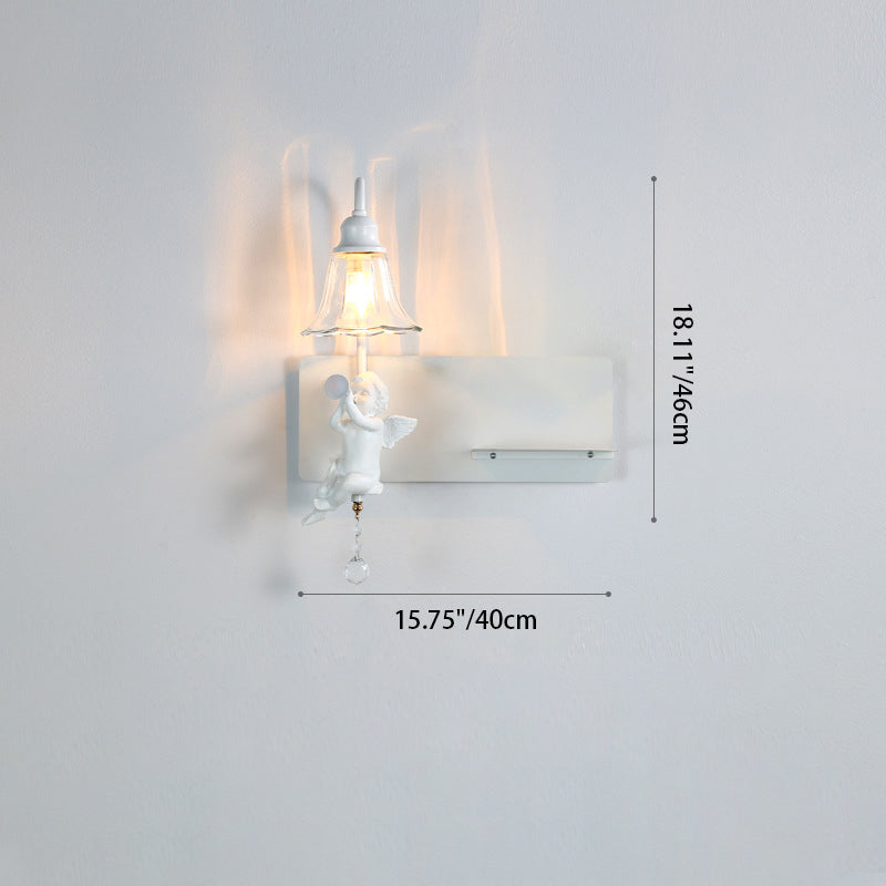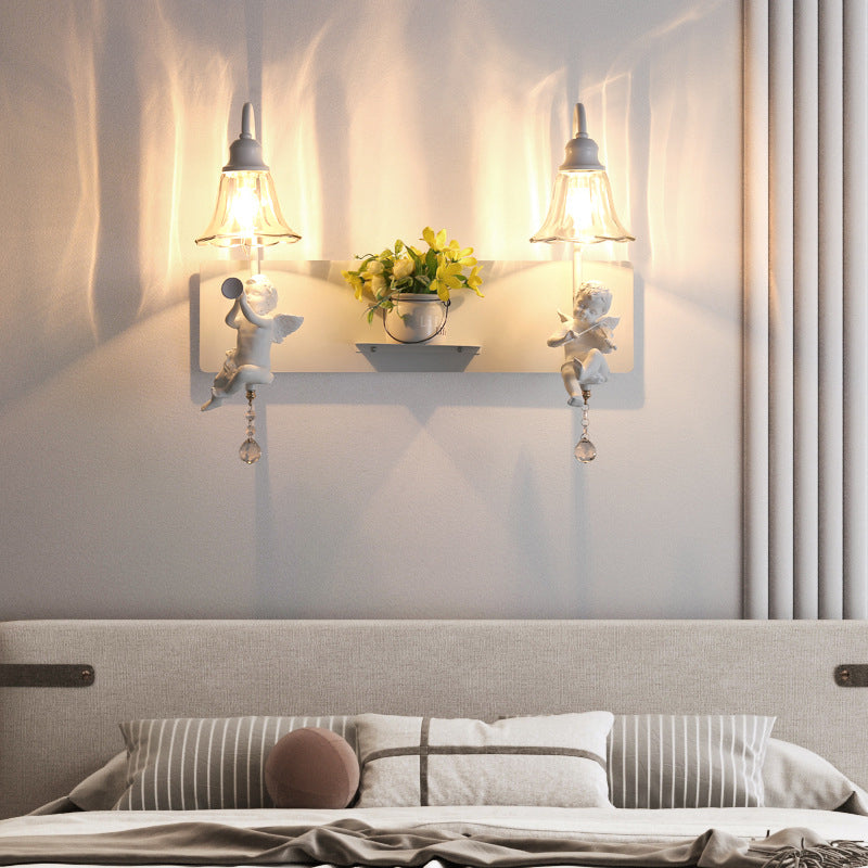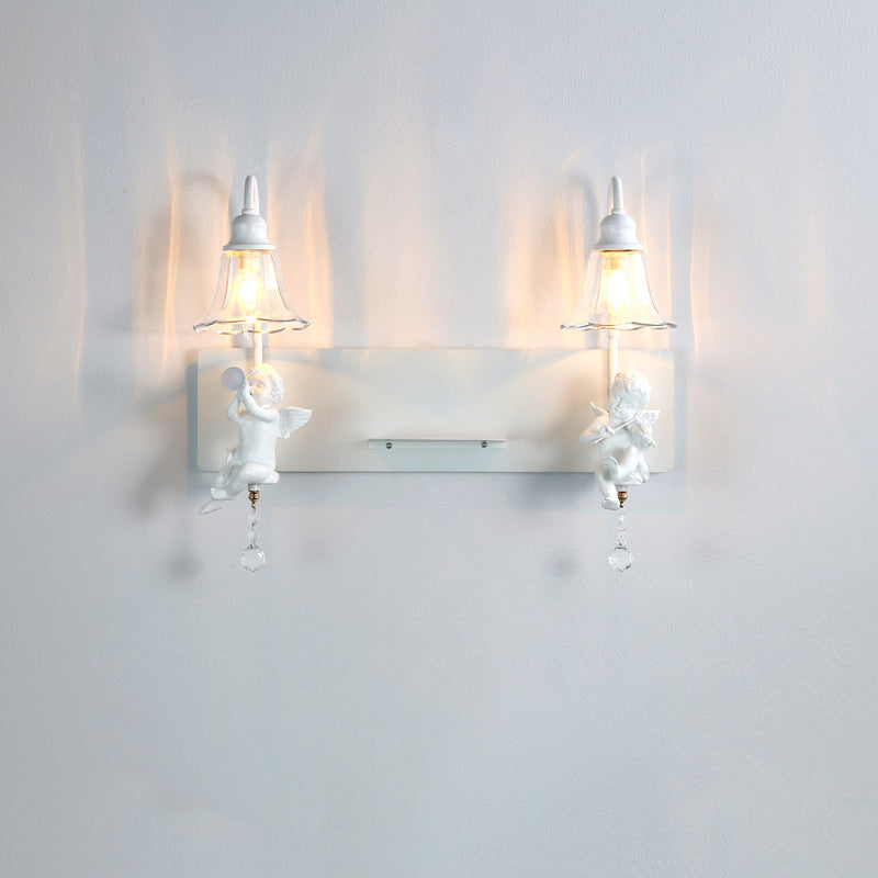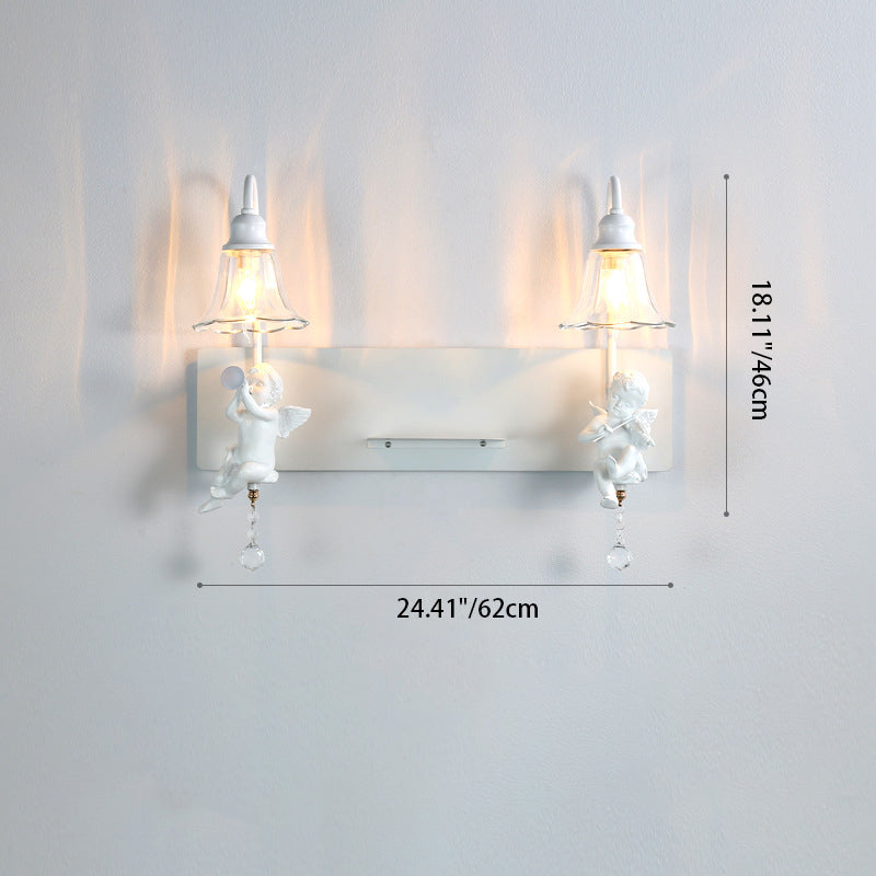 Contemporary Creative Angel Petal Resin Glass 1/2 Light Wall Sconce Lamp For Bedroom