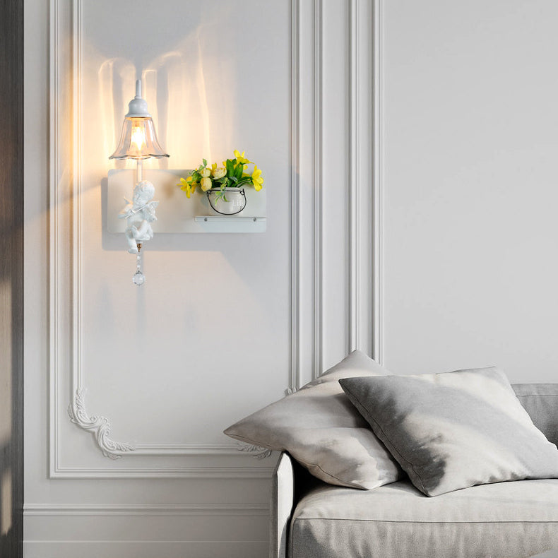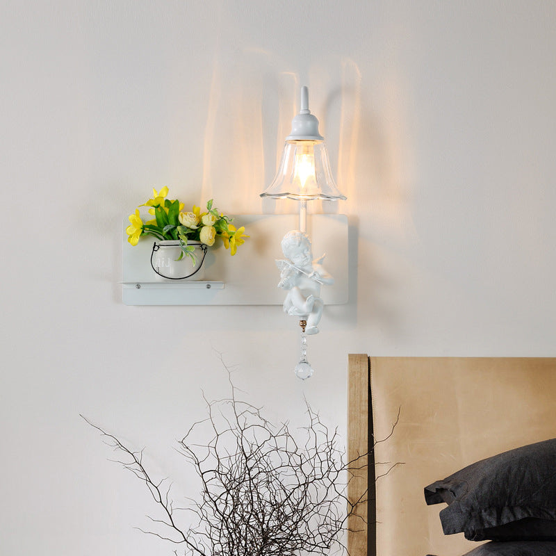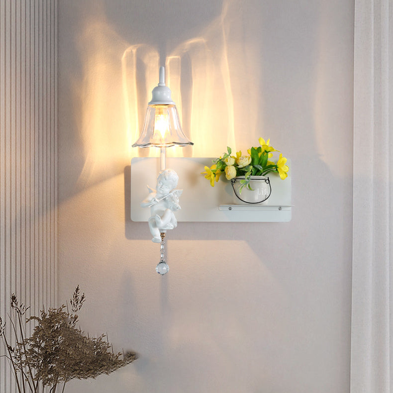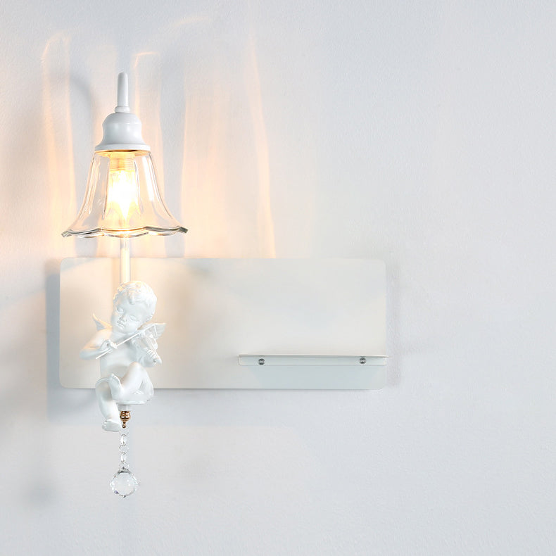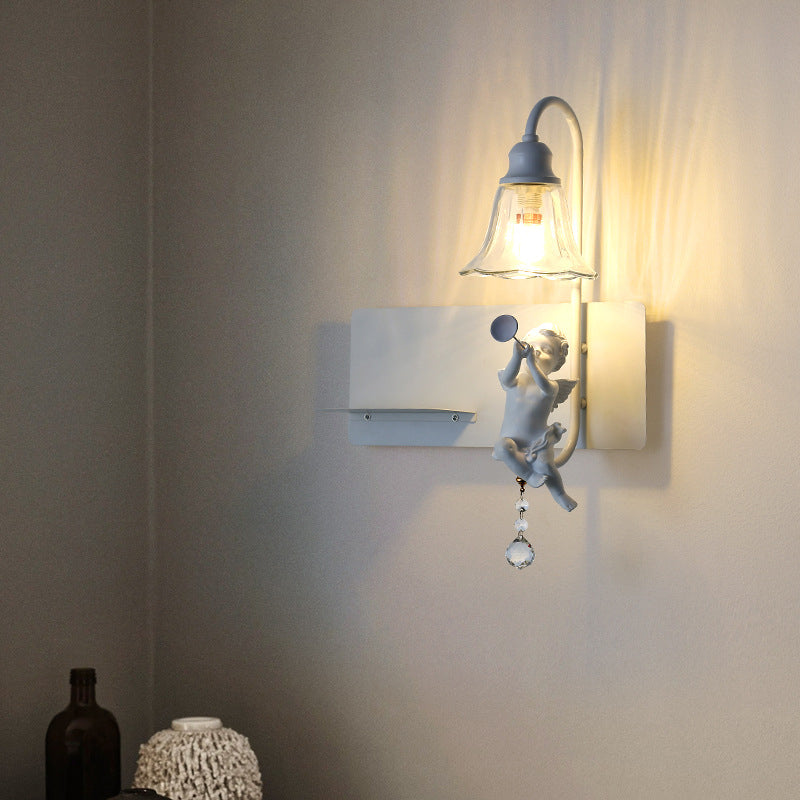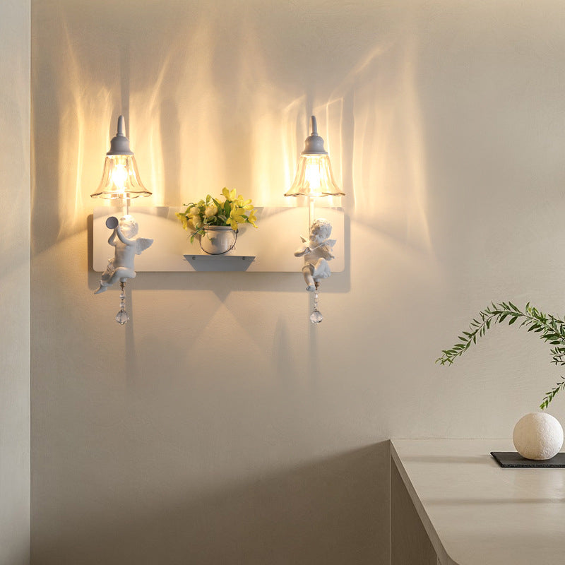 Contemporary Creative Angel Petal Resin Glass 1/2 Light Wall Sconce Lamp For Bedroom