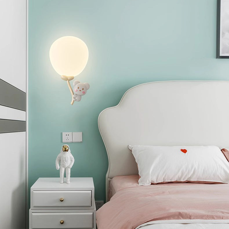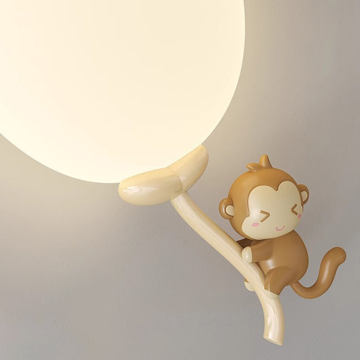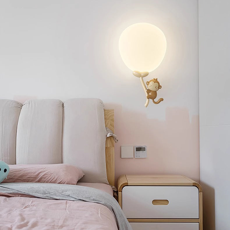 Contemporary Creative Animal Monkey Bear Iron PE Globe Shade LED Wall Sconce Lamp For Bedroom
