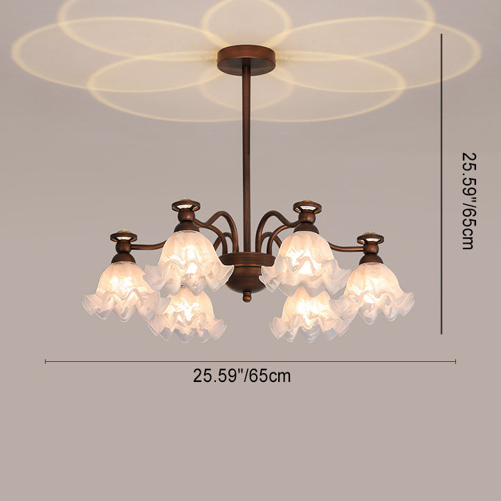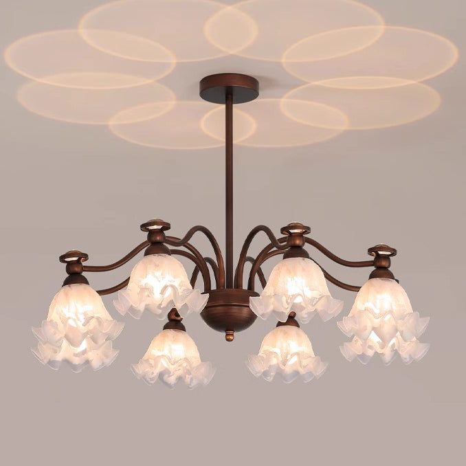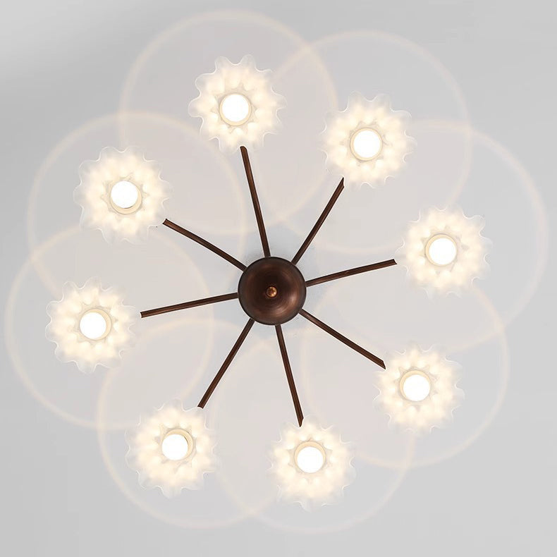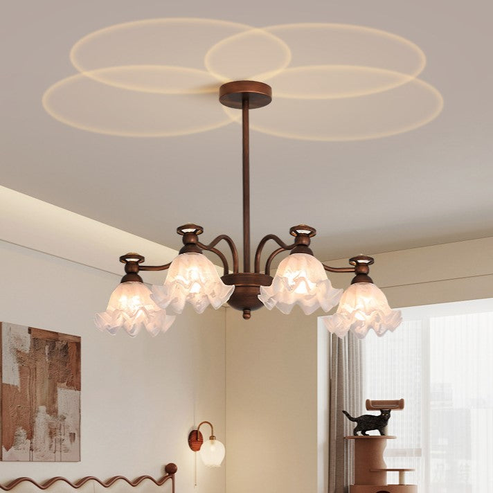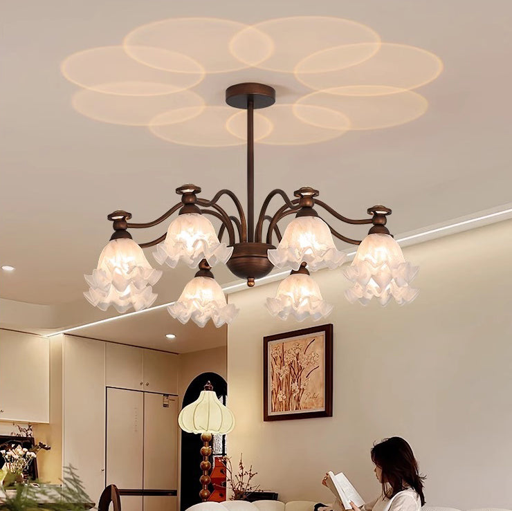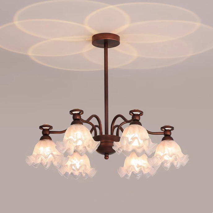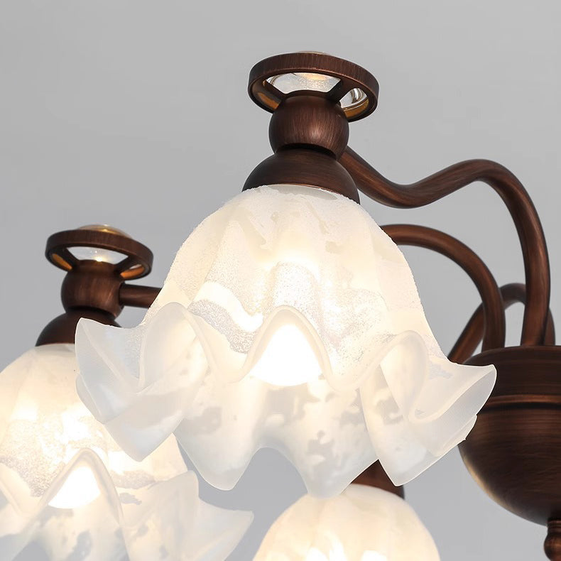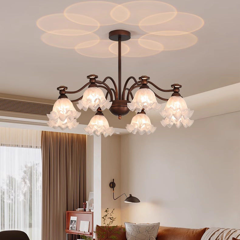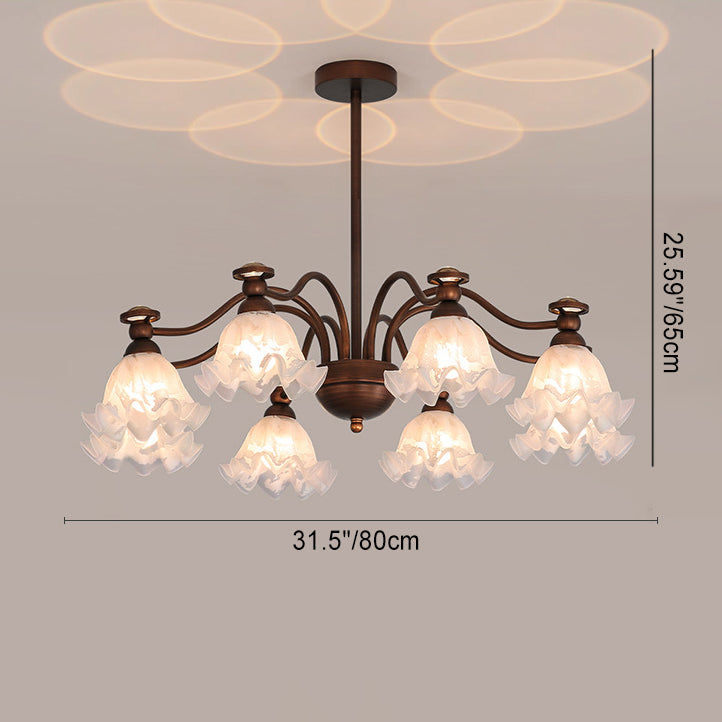 Contemporary Creative Branch Flower Glass Shade Hardware Frame 4/6/8 Chandelier For Living Room