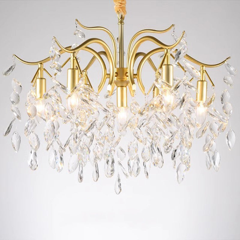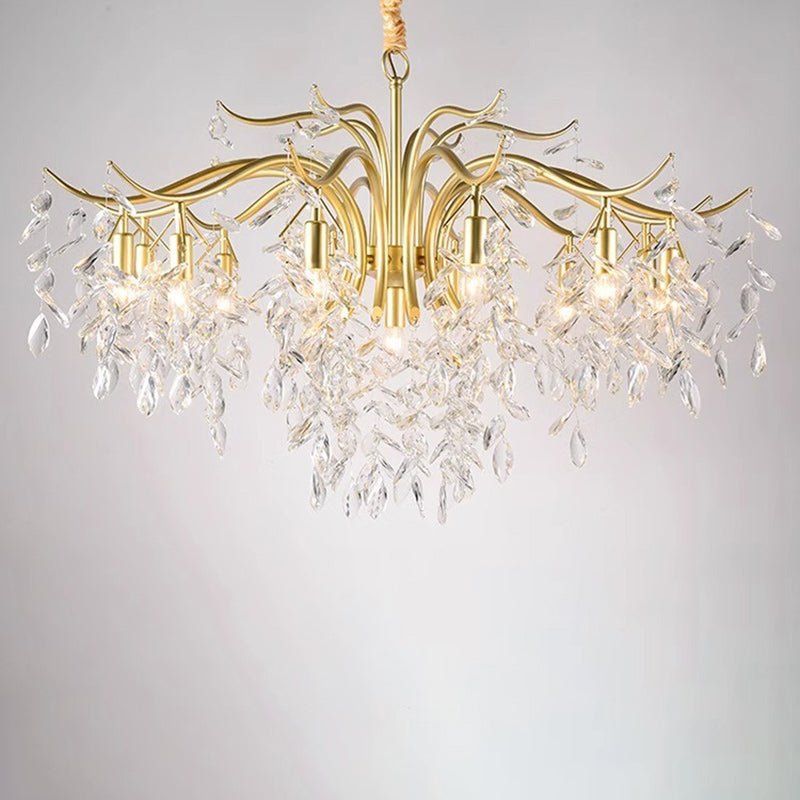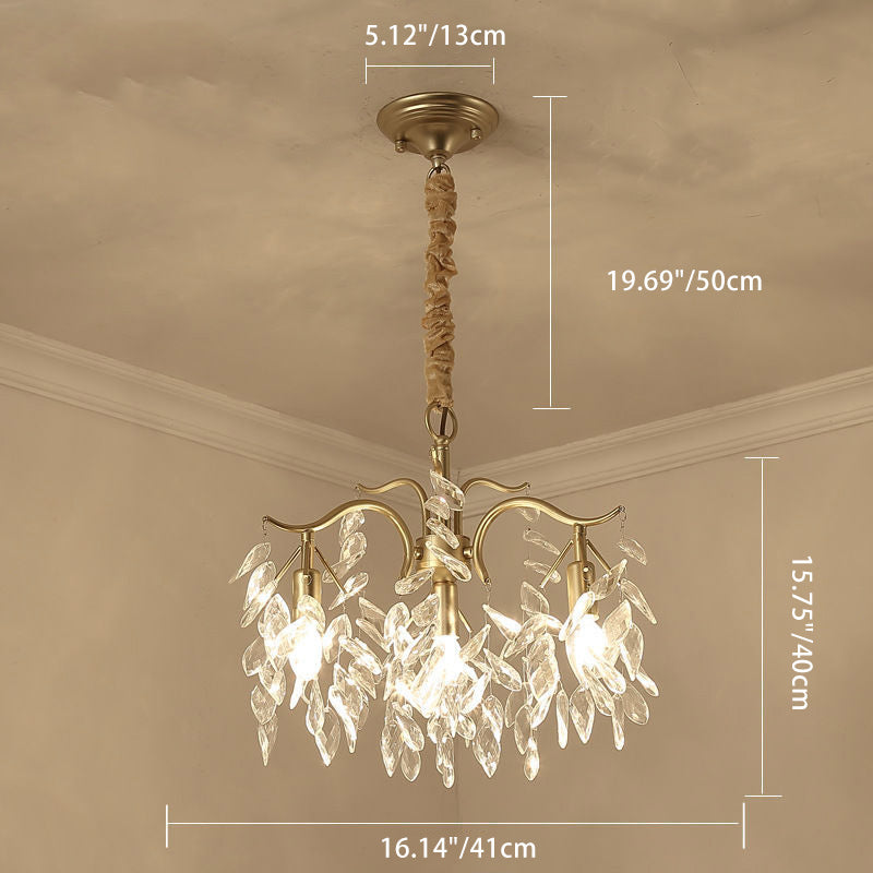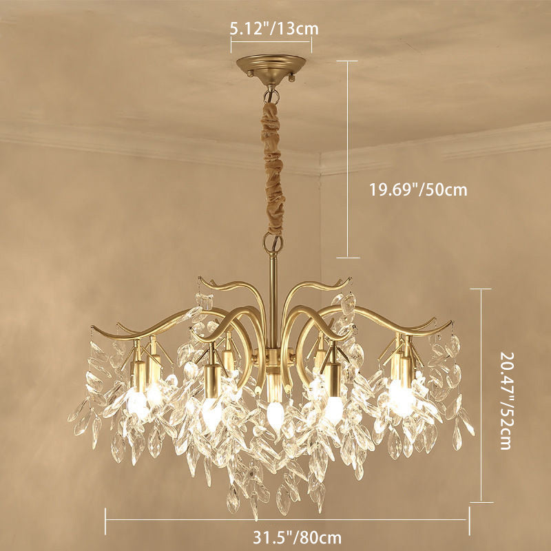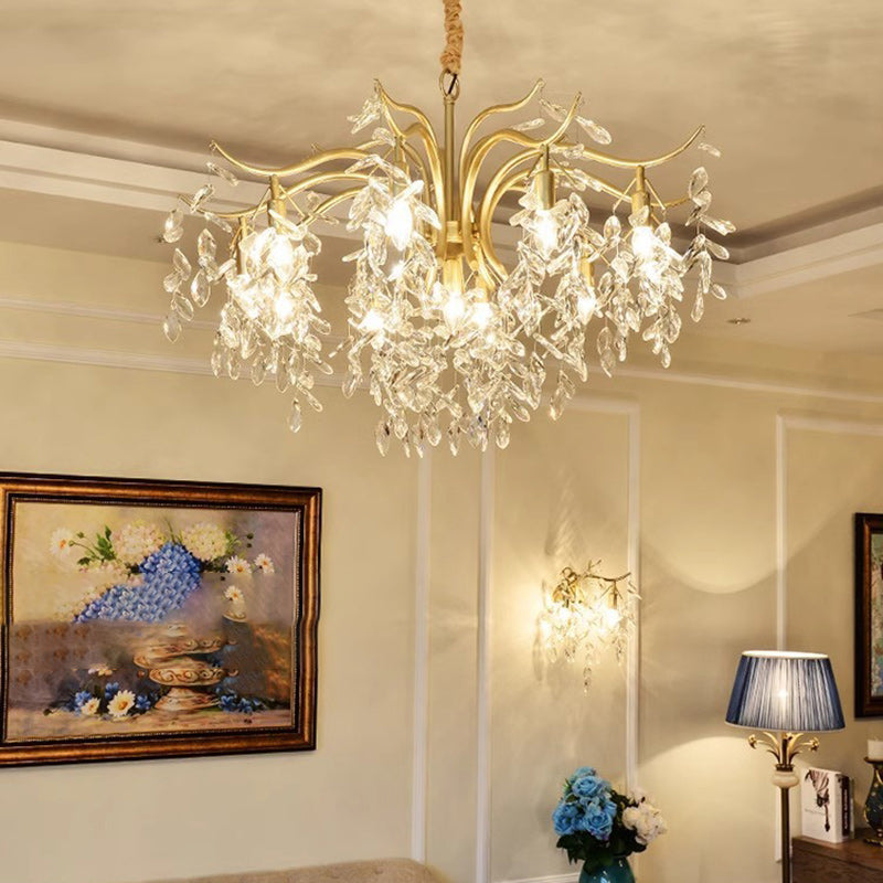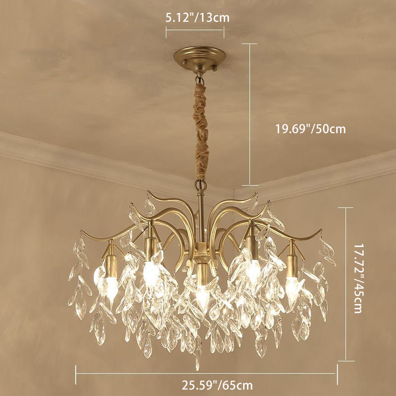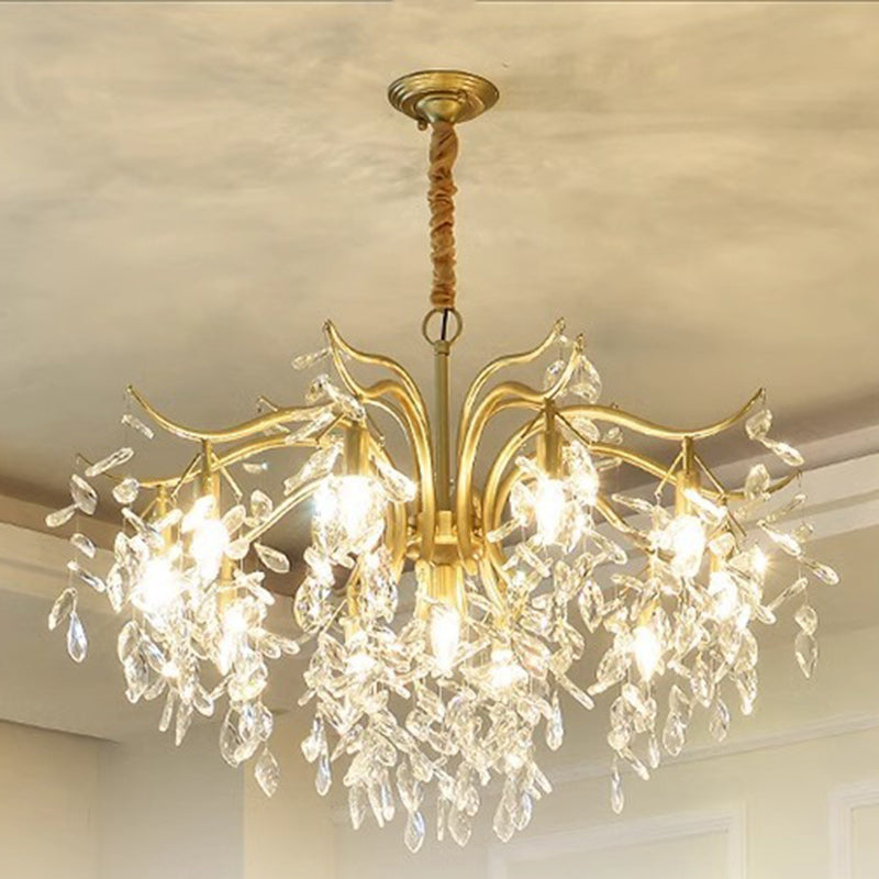 Contemporary Creative Branch Leaf Shape Cropper Crystal 4/7/9/11 Light Chandelier For Living Room